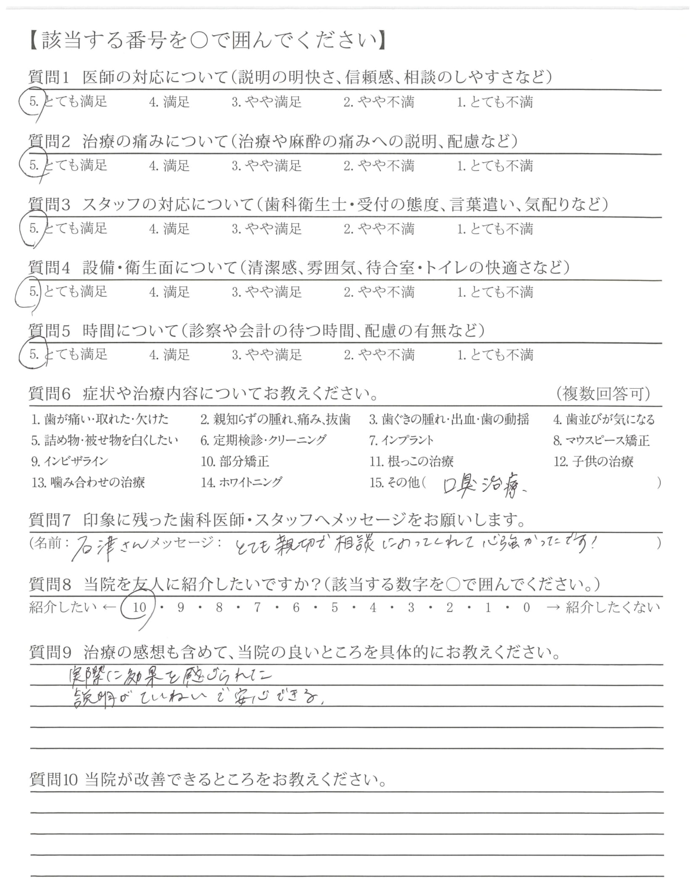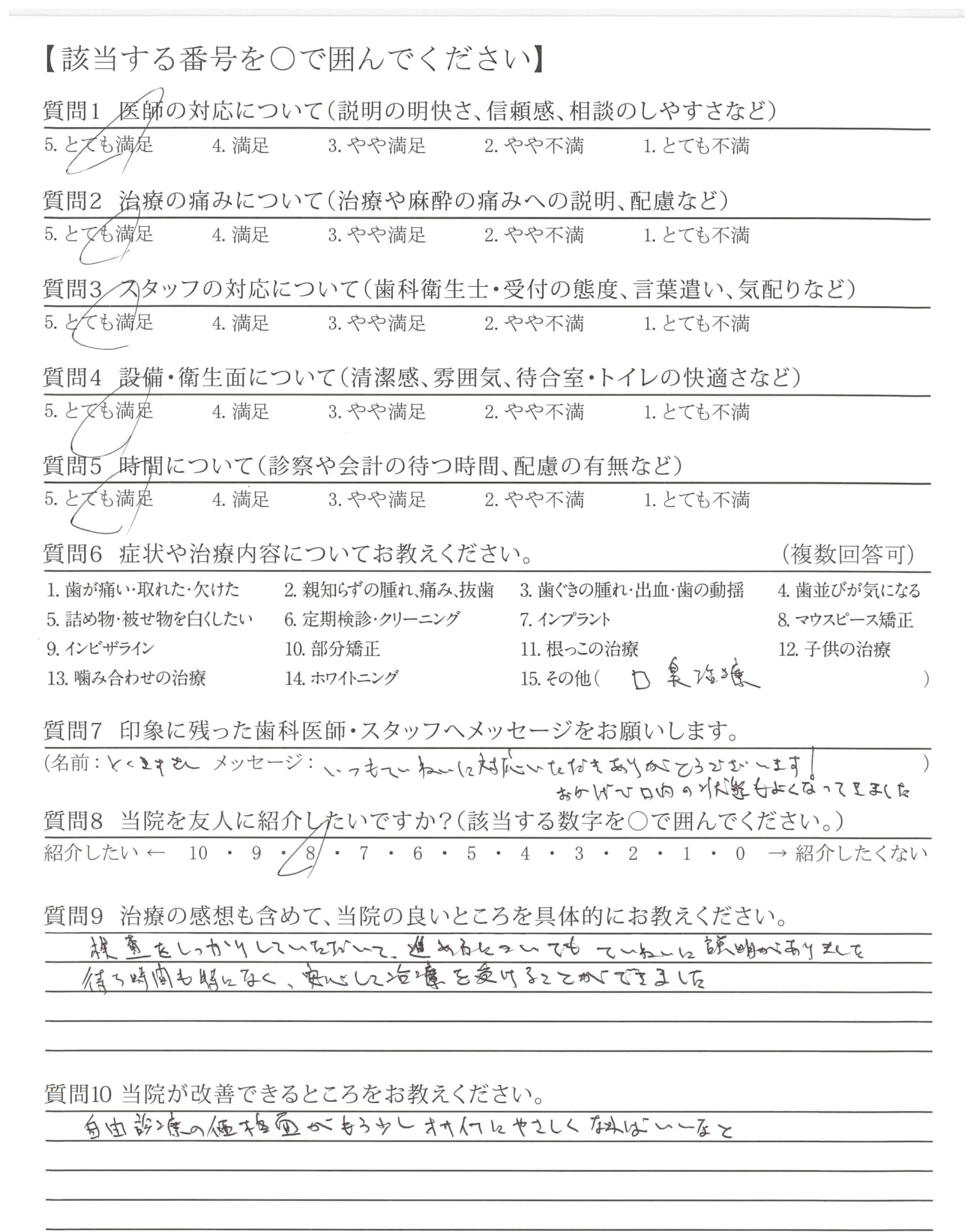 口臭外来治療時から一貫して各種治療で大変お世話になり、ありがとうございます。