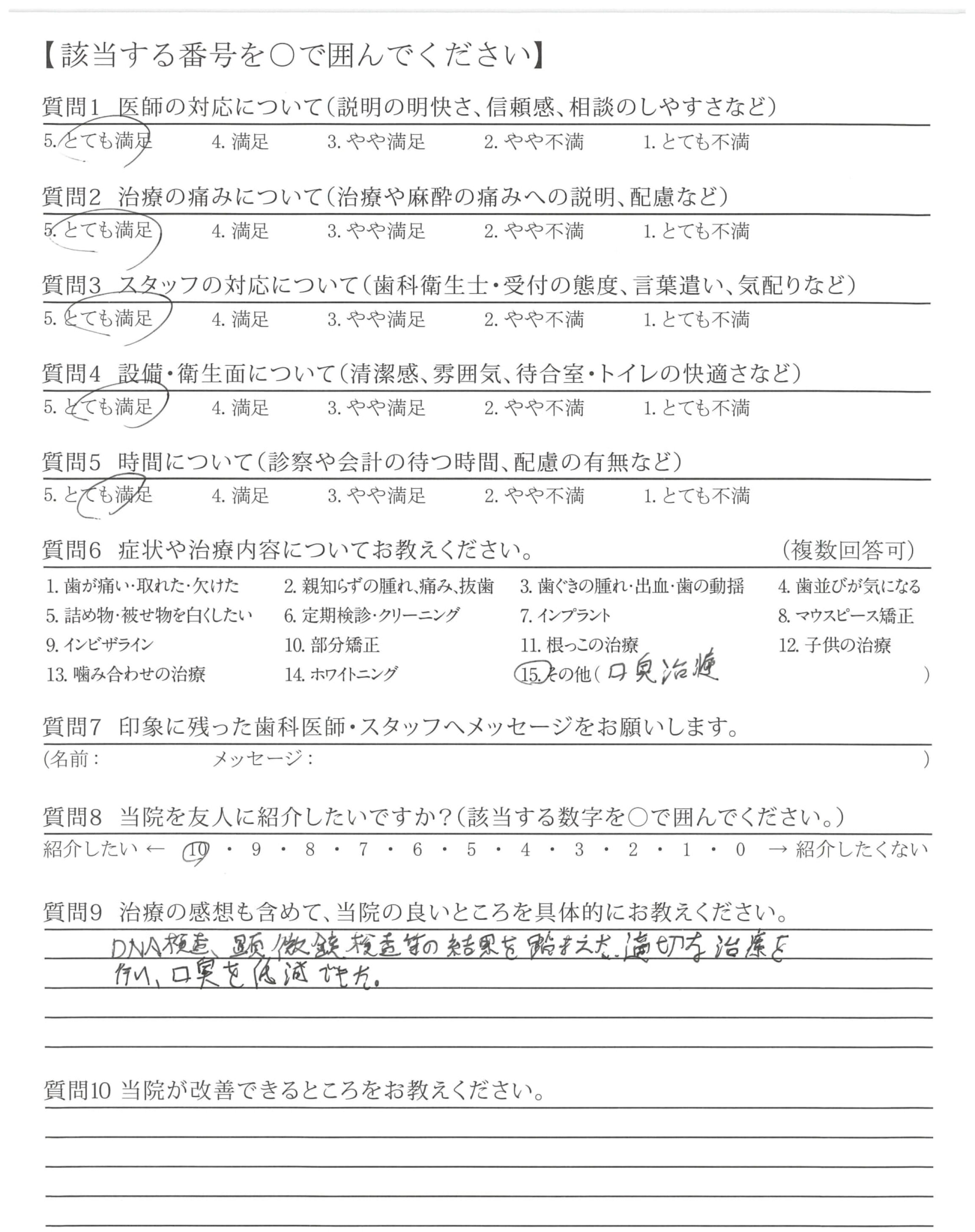 DNA検査、顕微鏡検査等の結果を踏まえた適切な治療を行い、口臭を低減できた。