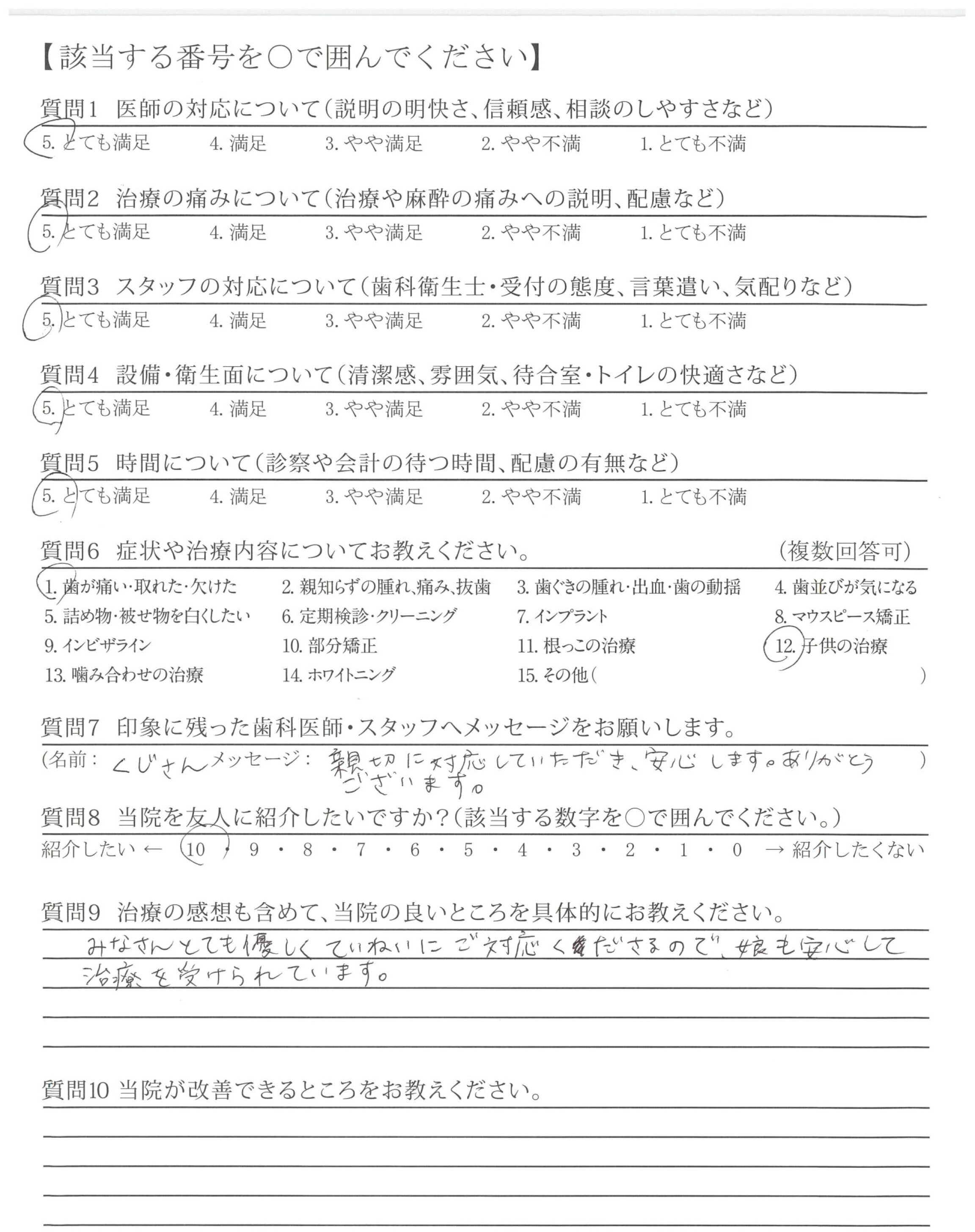 みなさんとても優しくていねいにご対応くださるので、娘も安心して治療を受けられています。