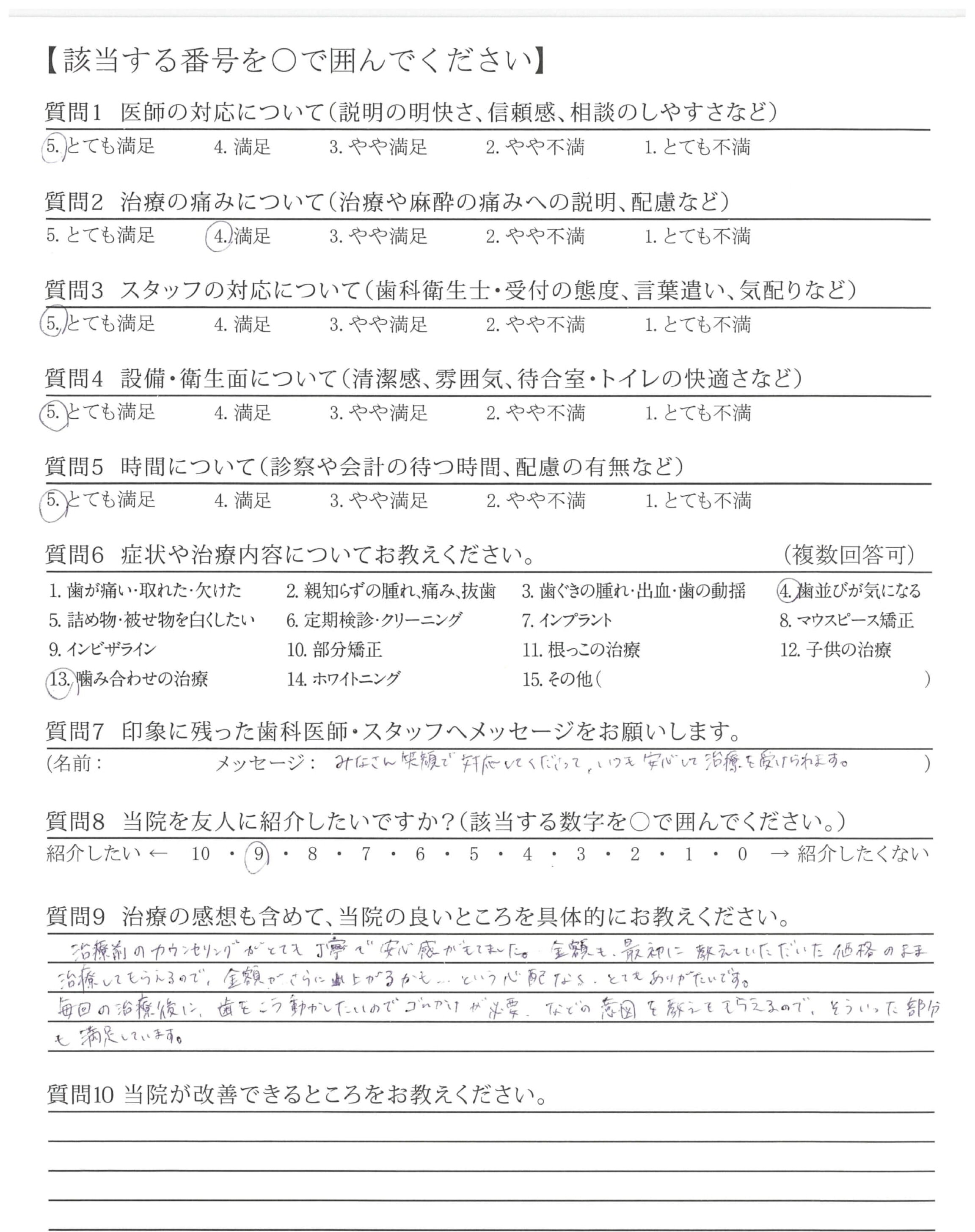 金額も、最初に教えていただいた価格のまま治療してもらえるので、金額がさらに上がるかも...という心配なく、とてもありがたいです。