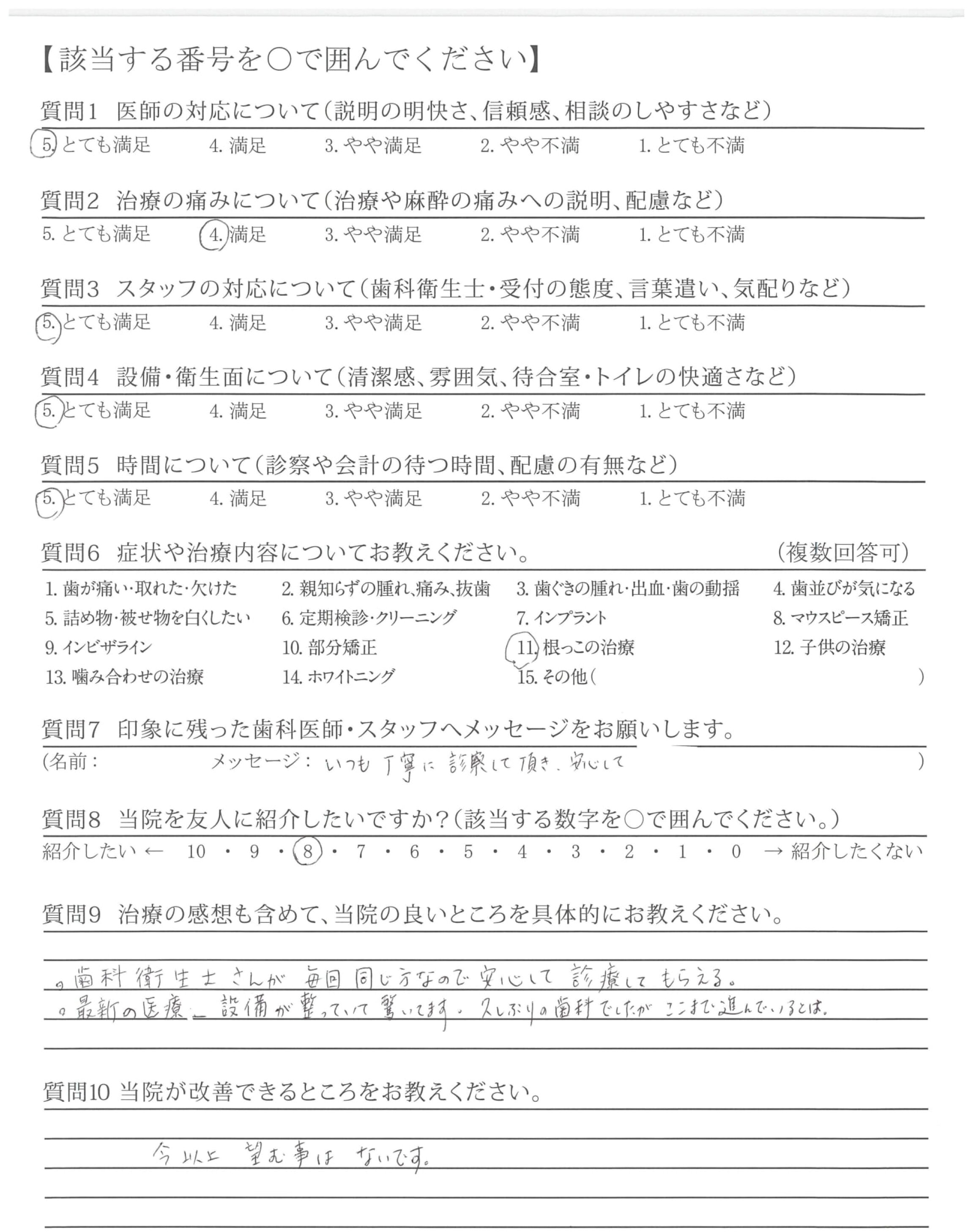 私の都合にあわせて長い時間をかけて治療してくださって感謝しています。