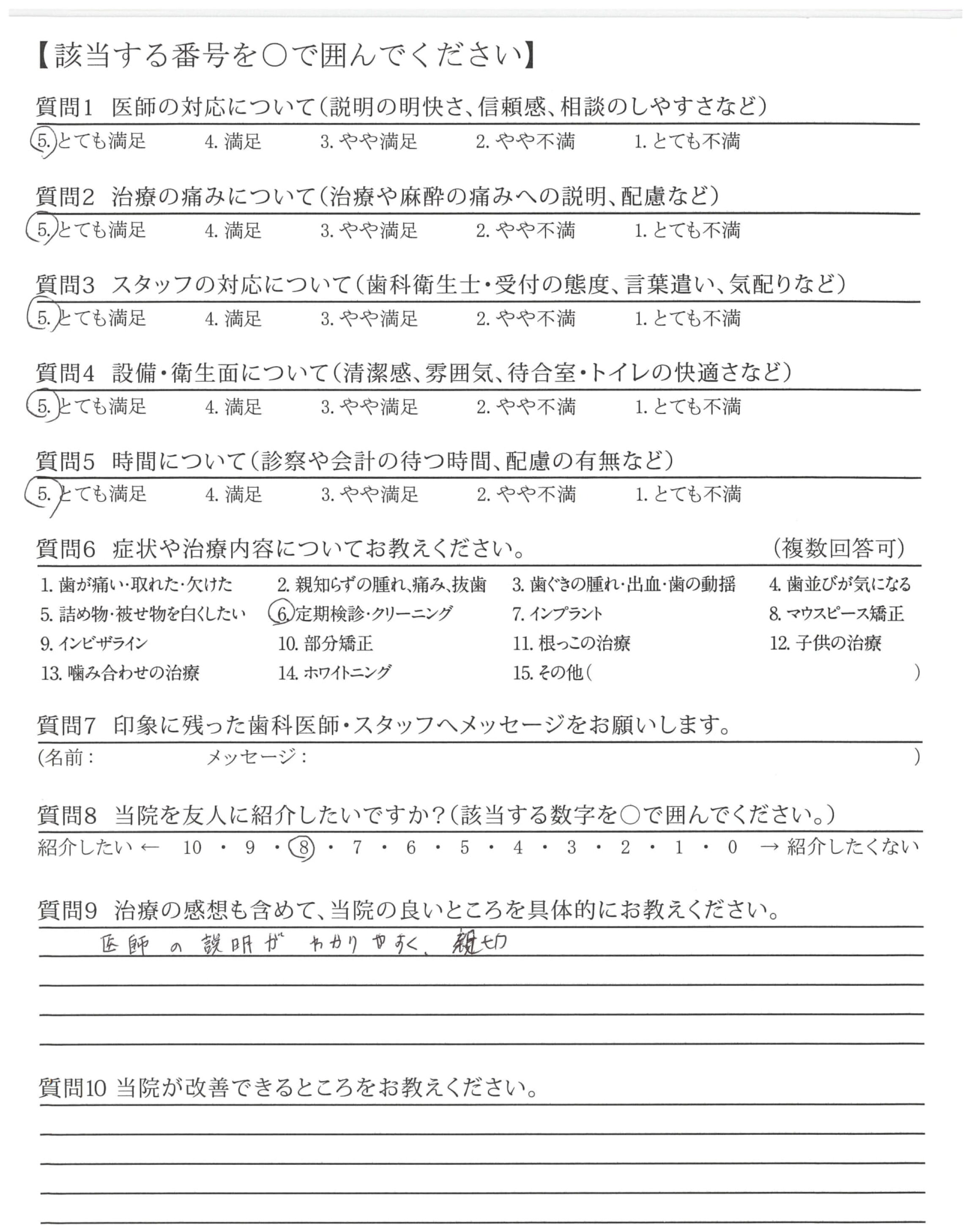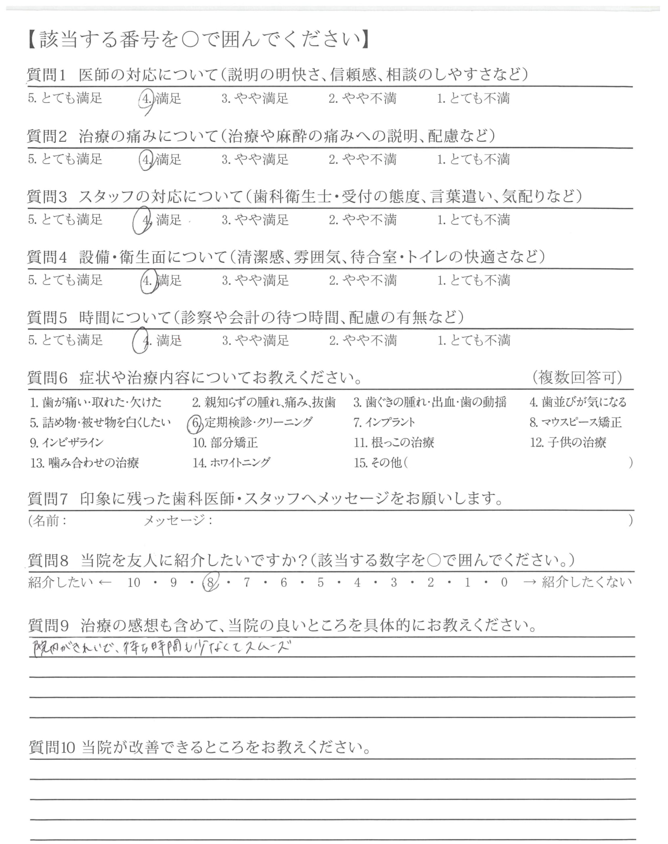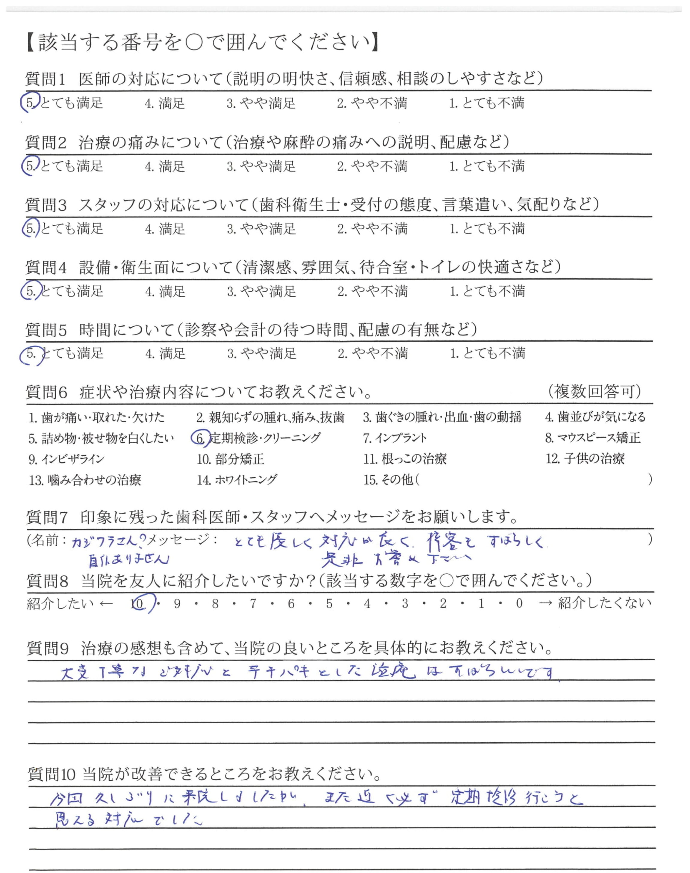 ※今回久しぶりに来院しましたが、また近く必ず定期検診行こうと思える対応でした