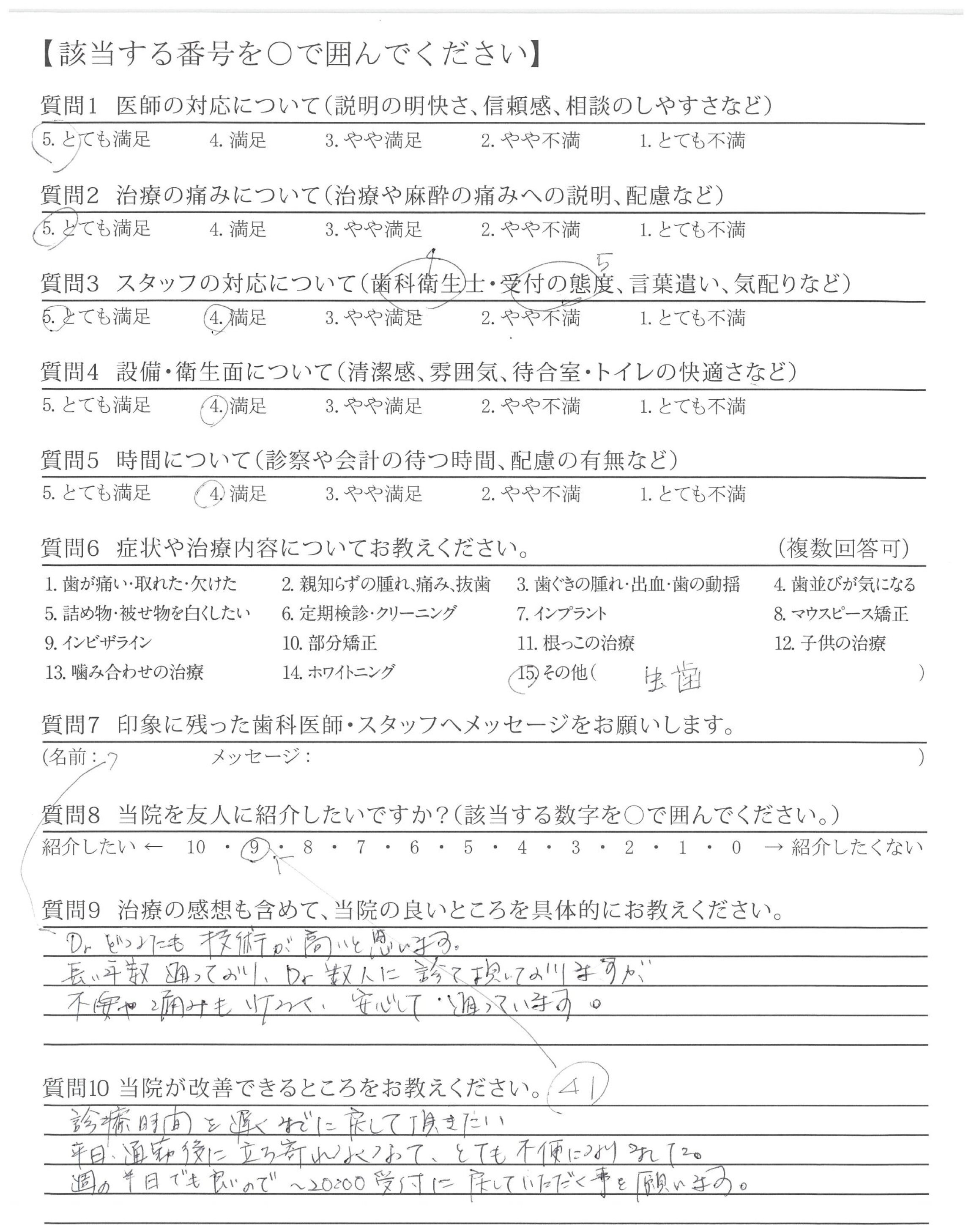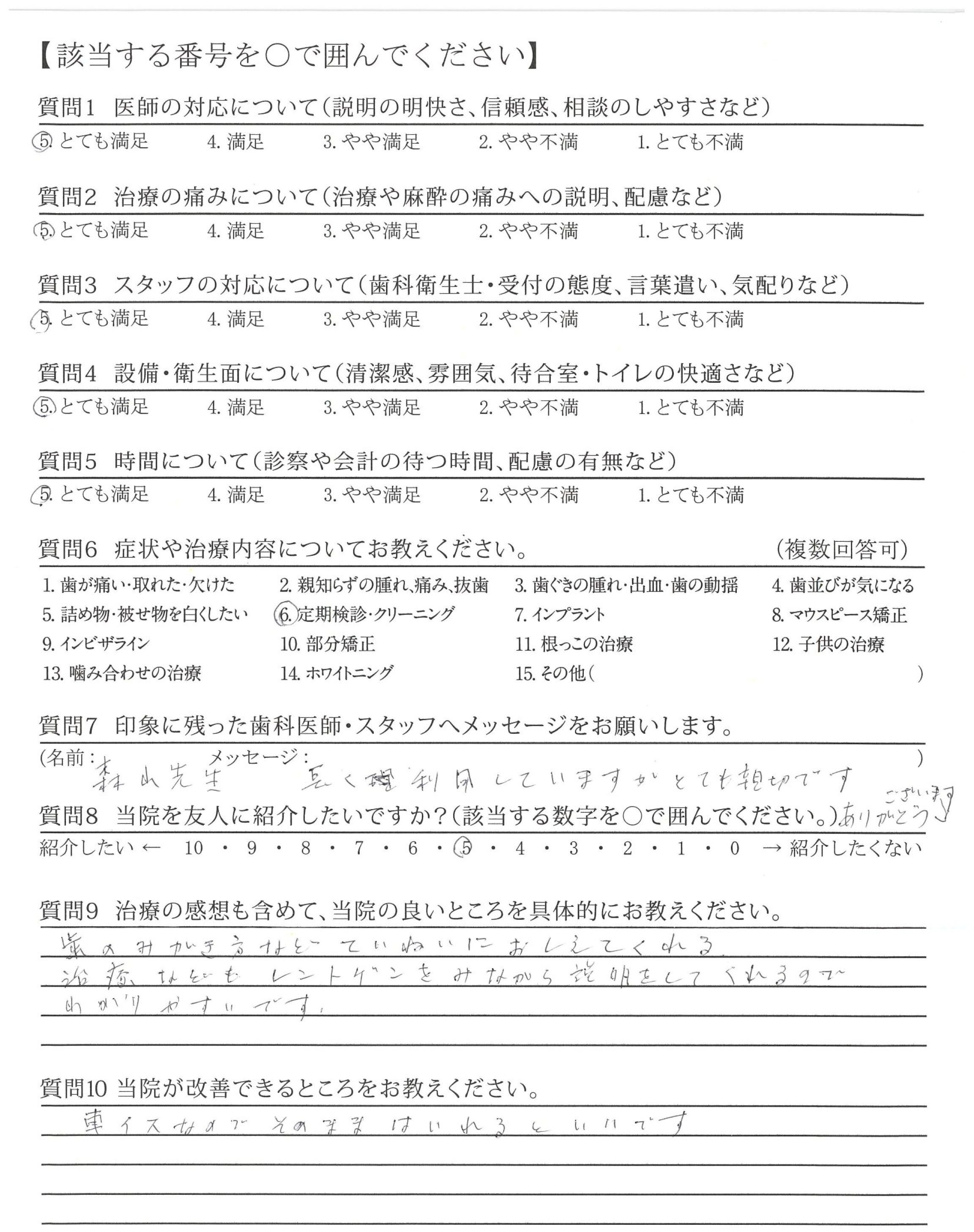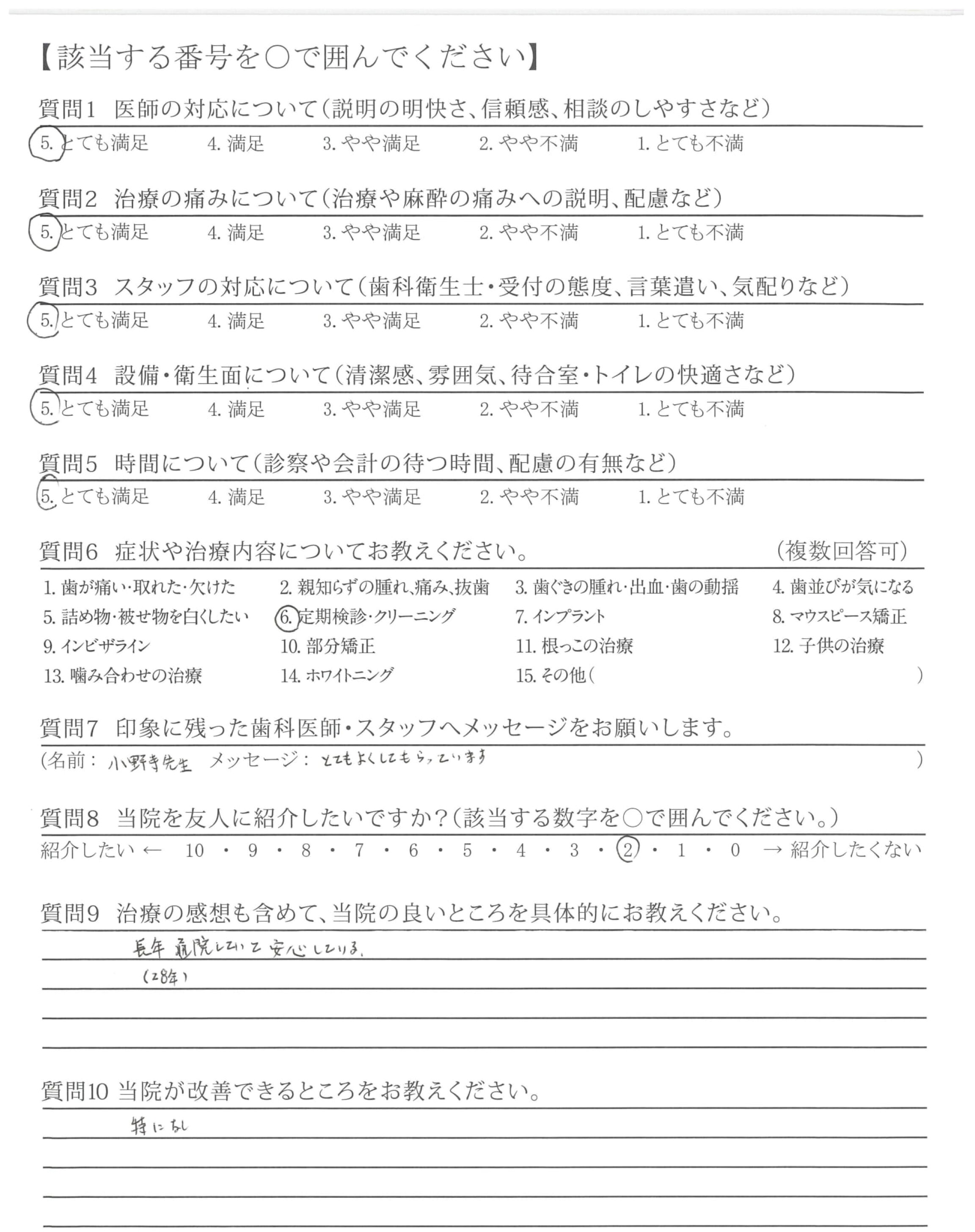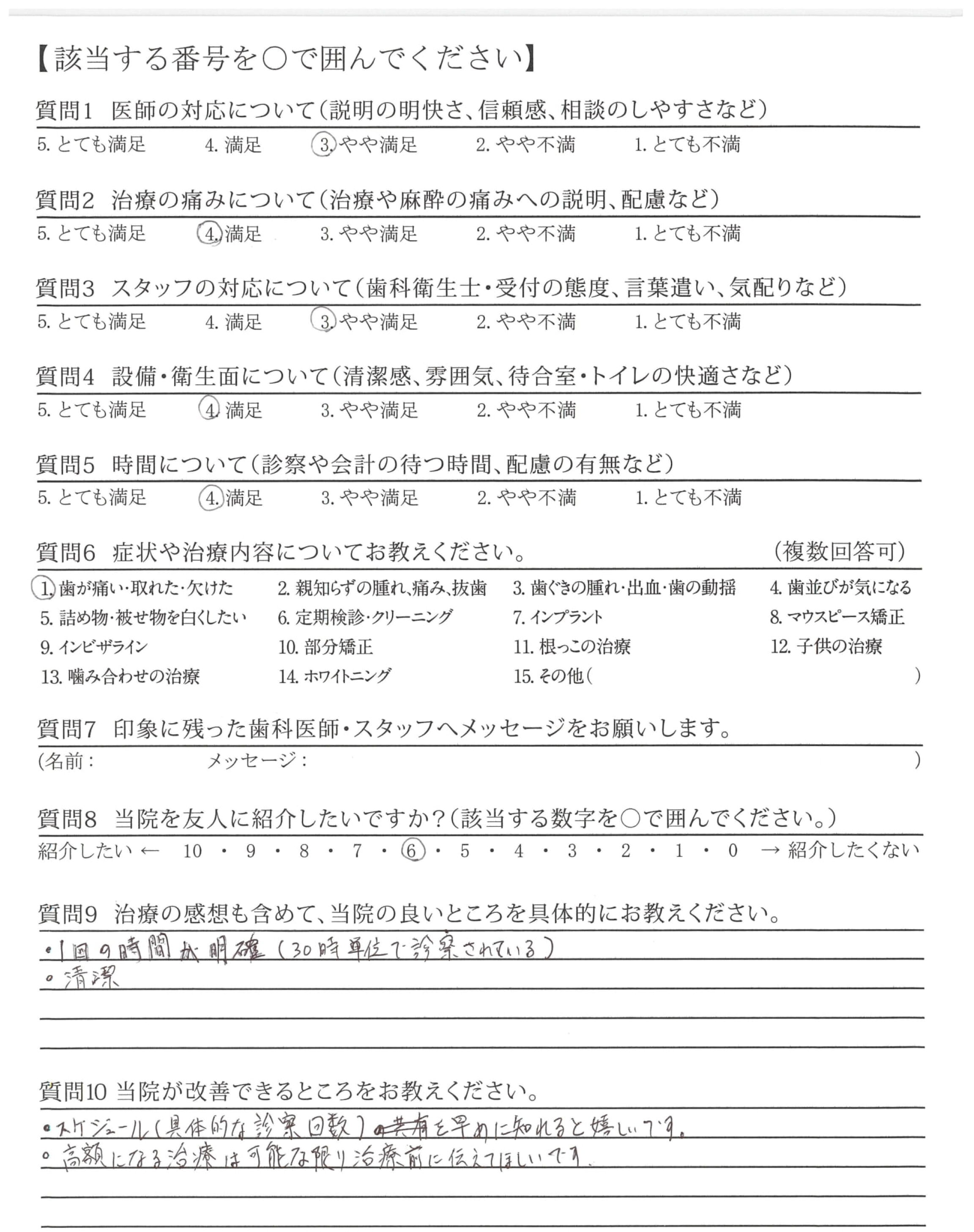 ※今回久しぶりに来院しましたが、また近く必ず定期検診行こうと思える対応でした