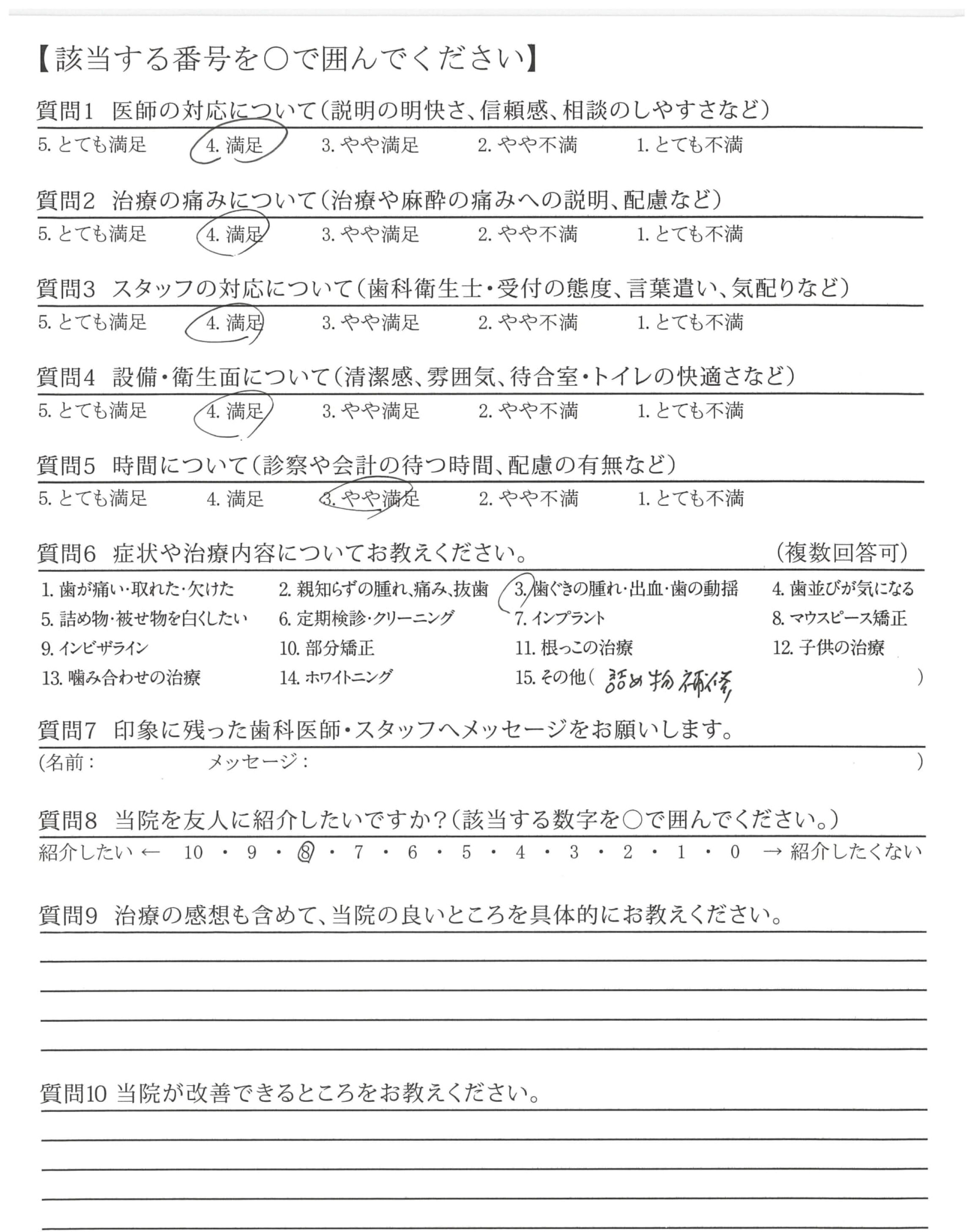 | 歯科医師の対応 | ![]() ![]() ![]() ![]() 4.45 |