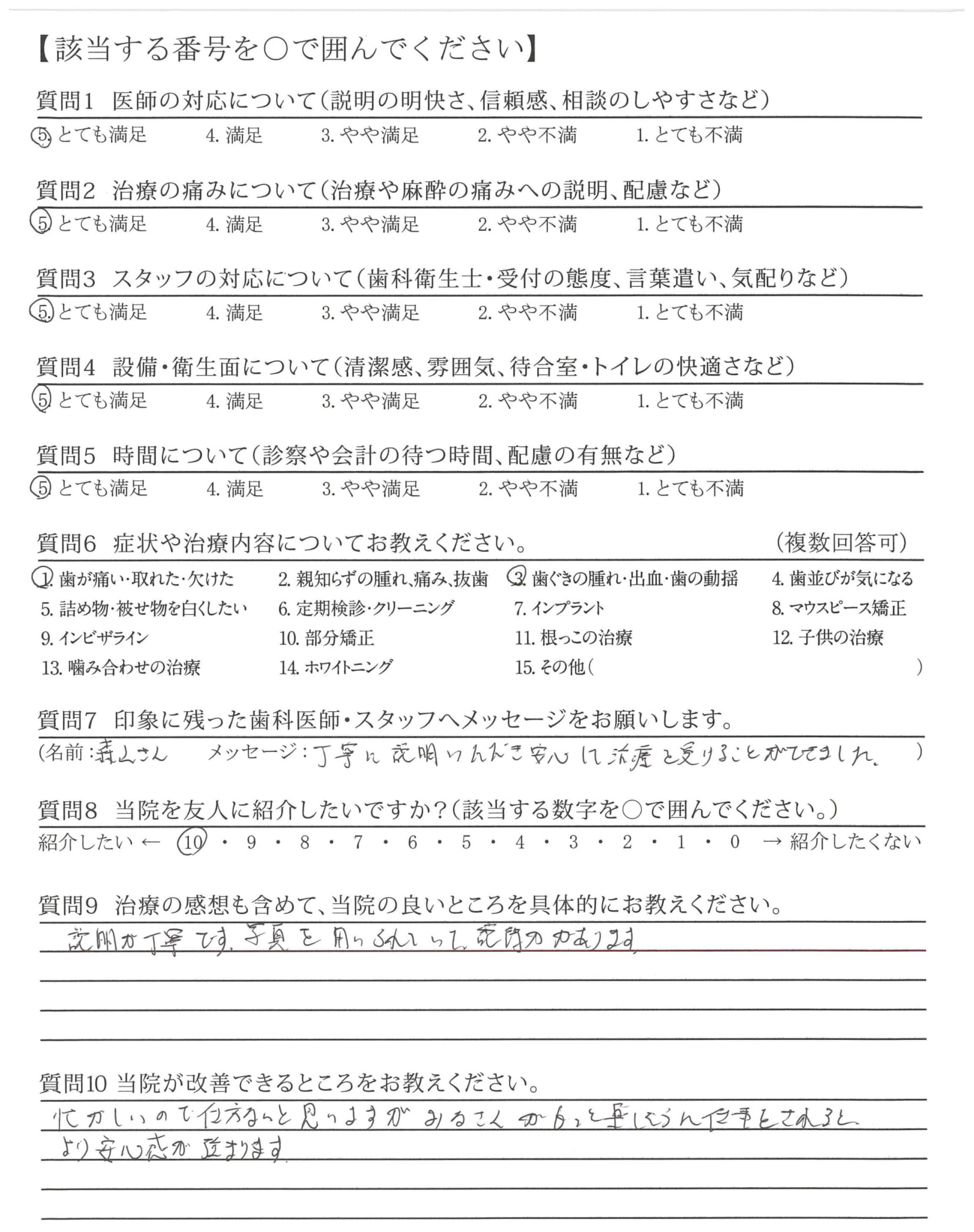 治療の説明、処置が的確で、とても満足です。