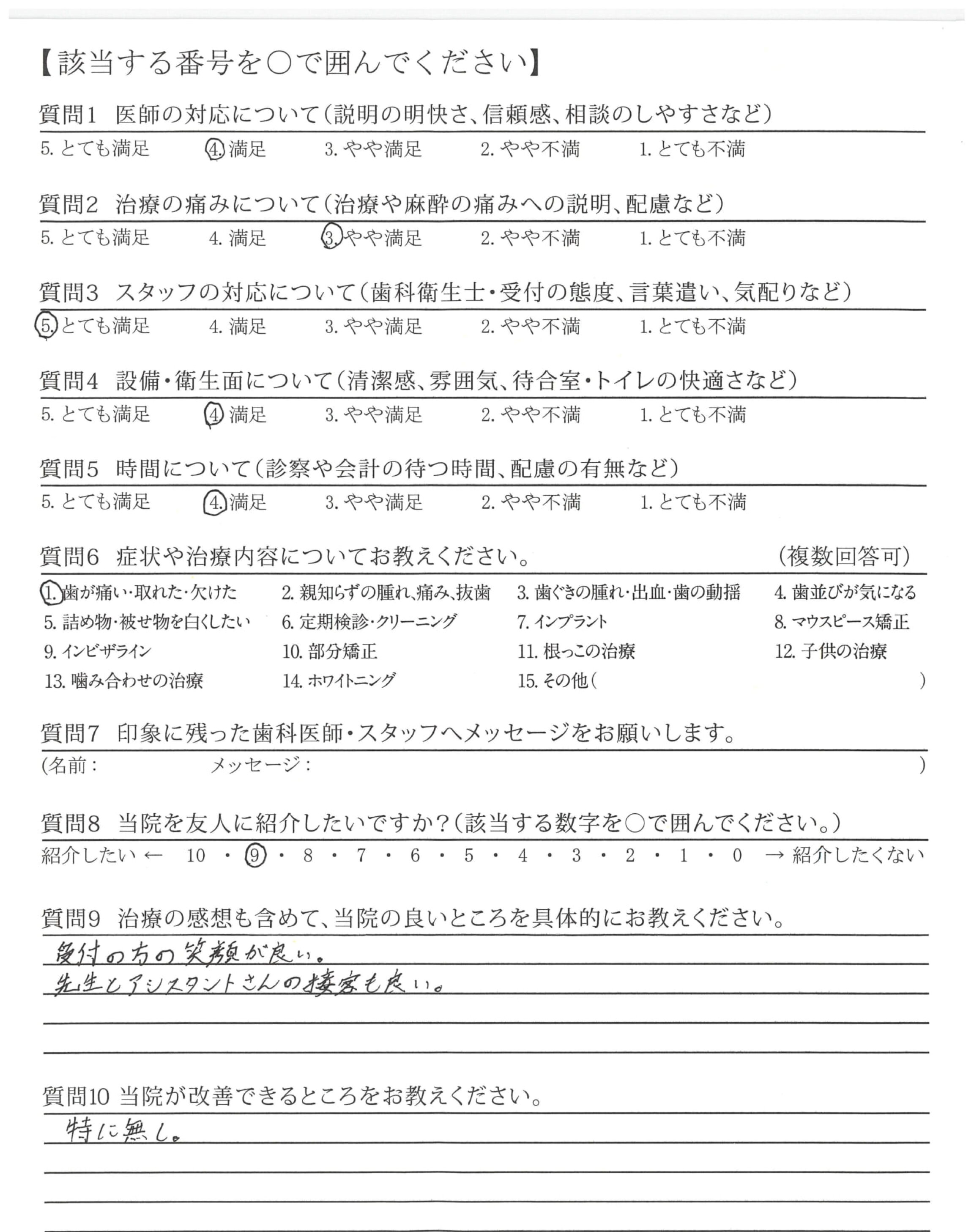 初診時に最初に話を聞いてくれた助手の方の対応に感謝します。温かい親切な対応でした。
