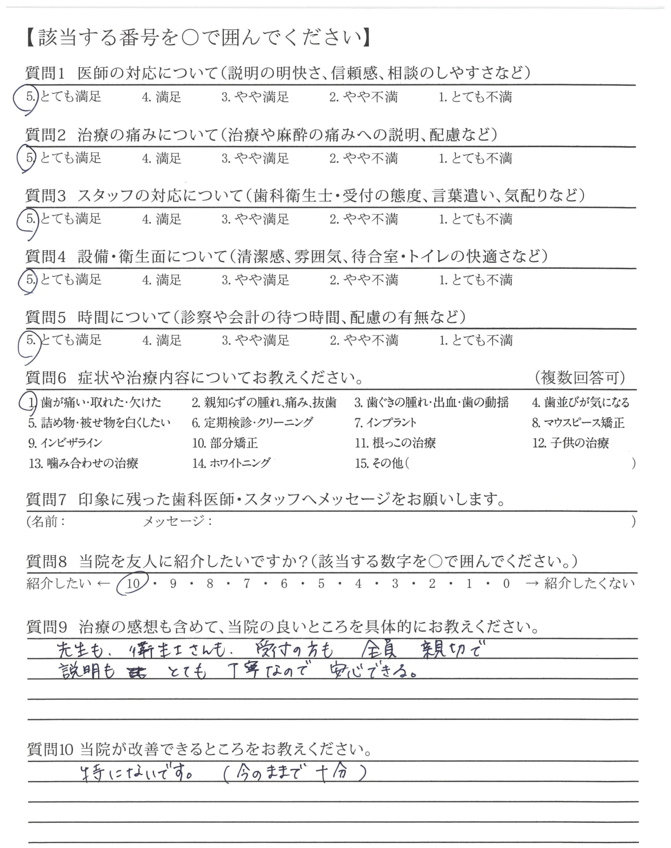 通常より時間をかけて根気よくして下さり、ありがとうございました。