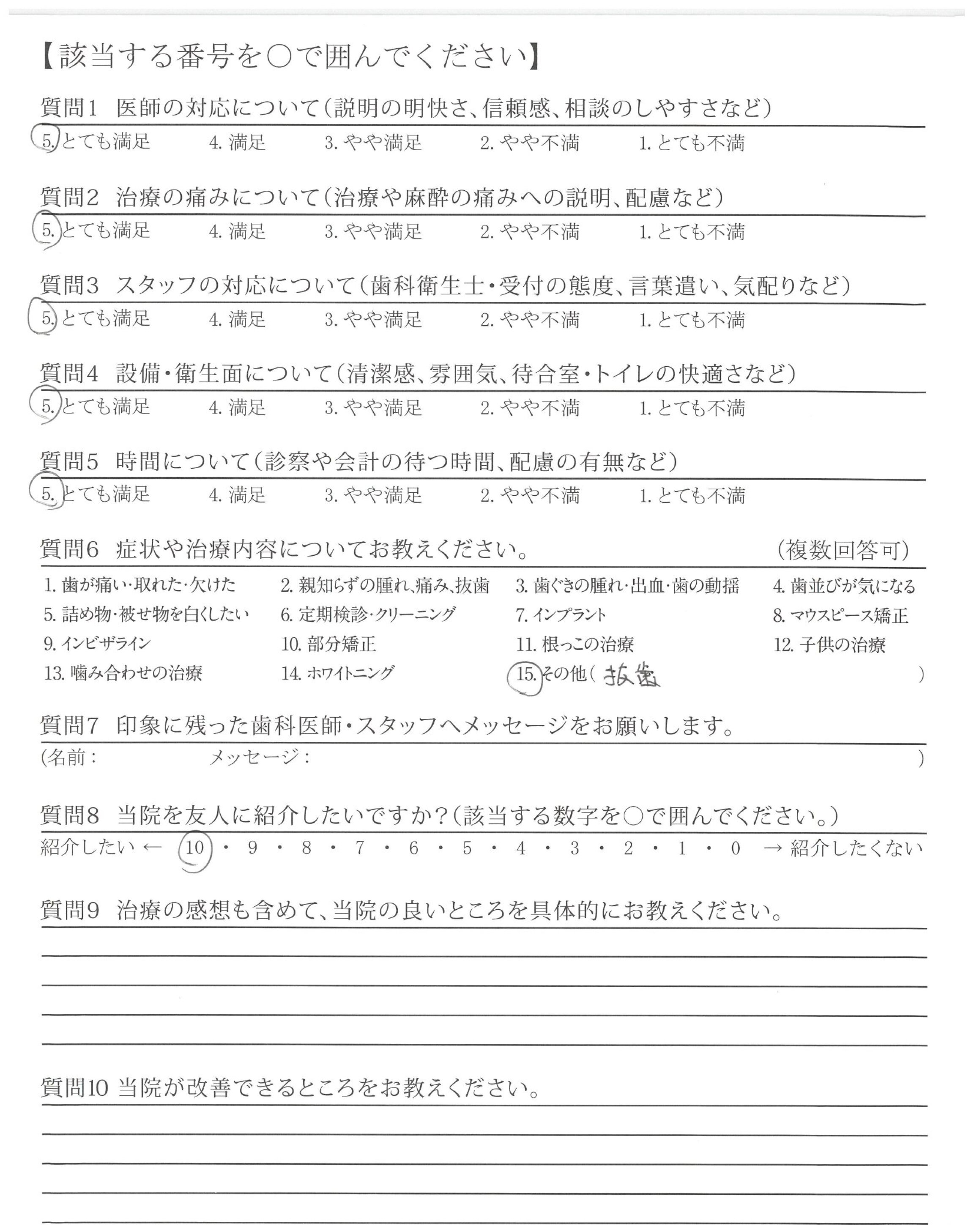 横浜に引っ越してから、とても素晴らしい歯科医の先生に出会い、抜歯する決心が出来、本当に感謝しております。