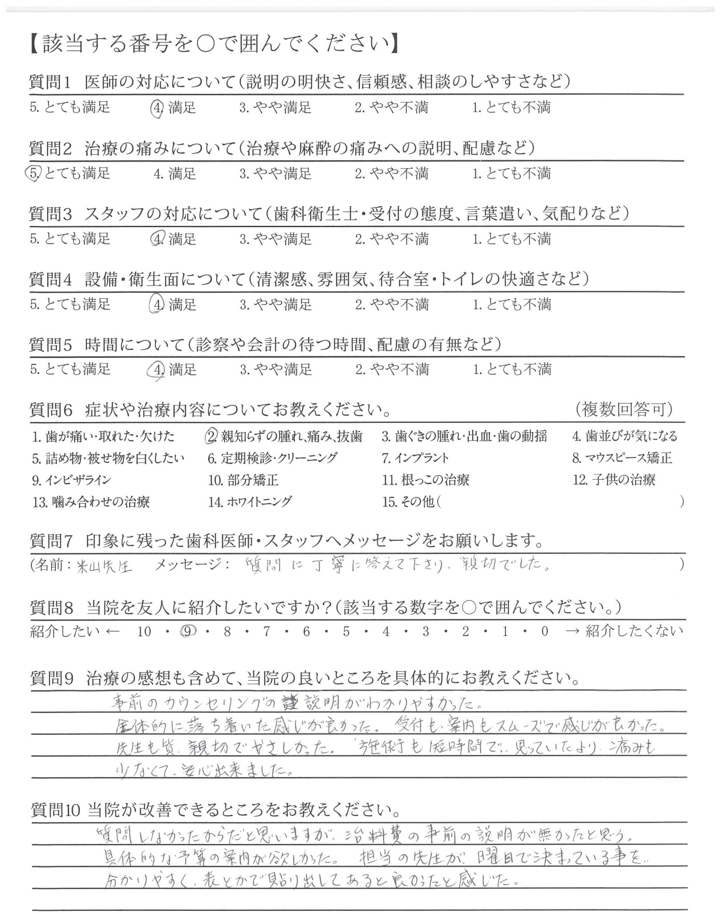 米山先生に親知らずを抜歯して頂き本当に良かったです。ありがとうございます。