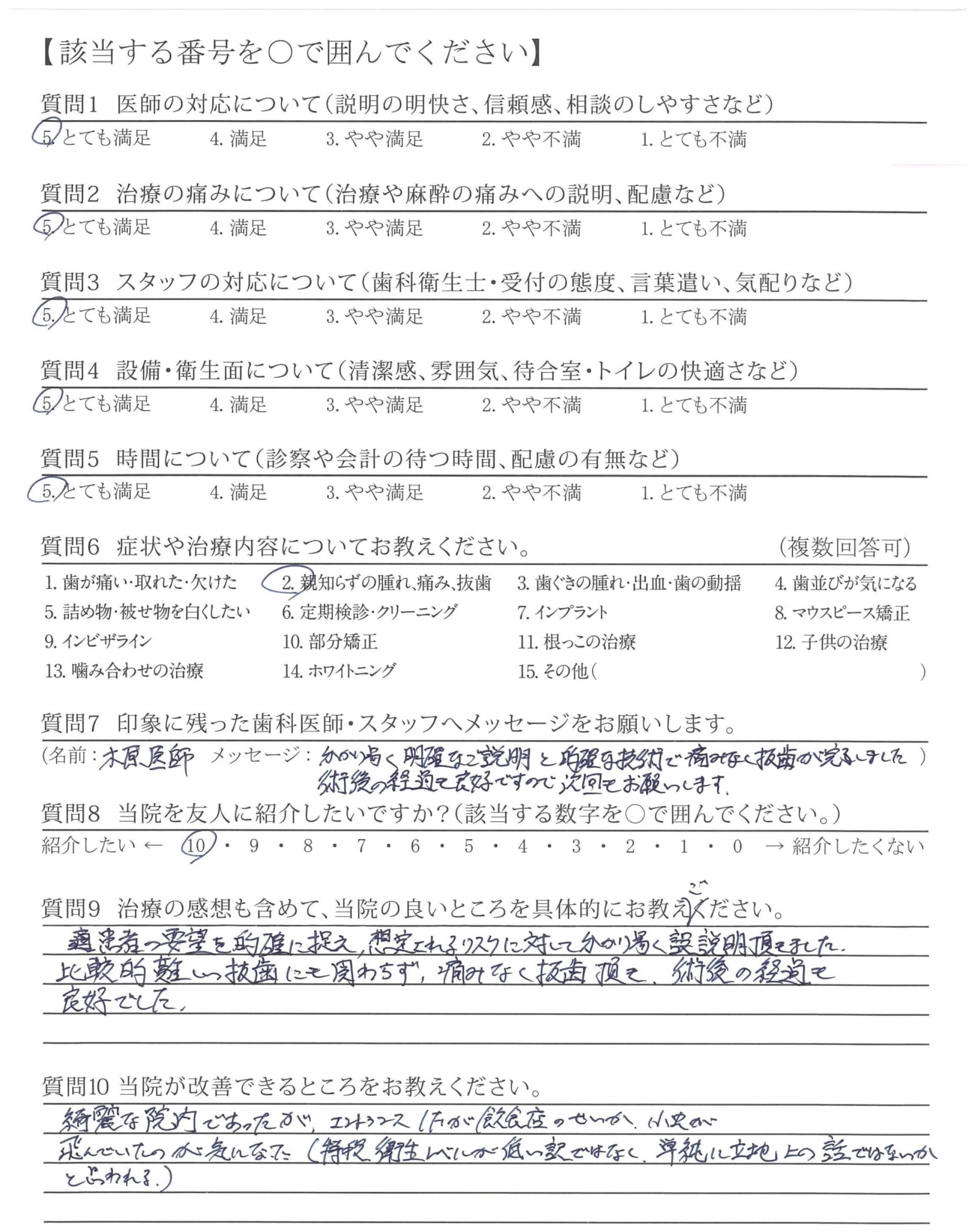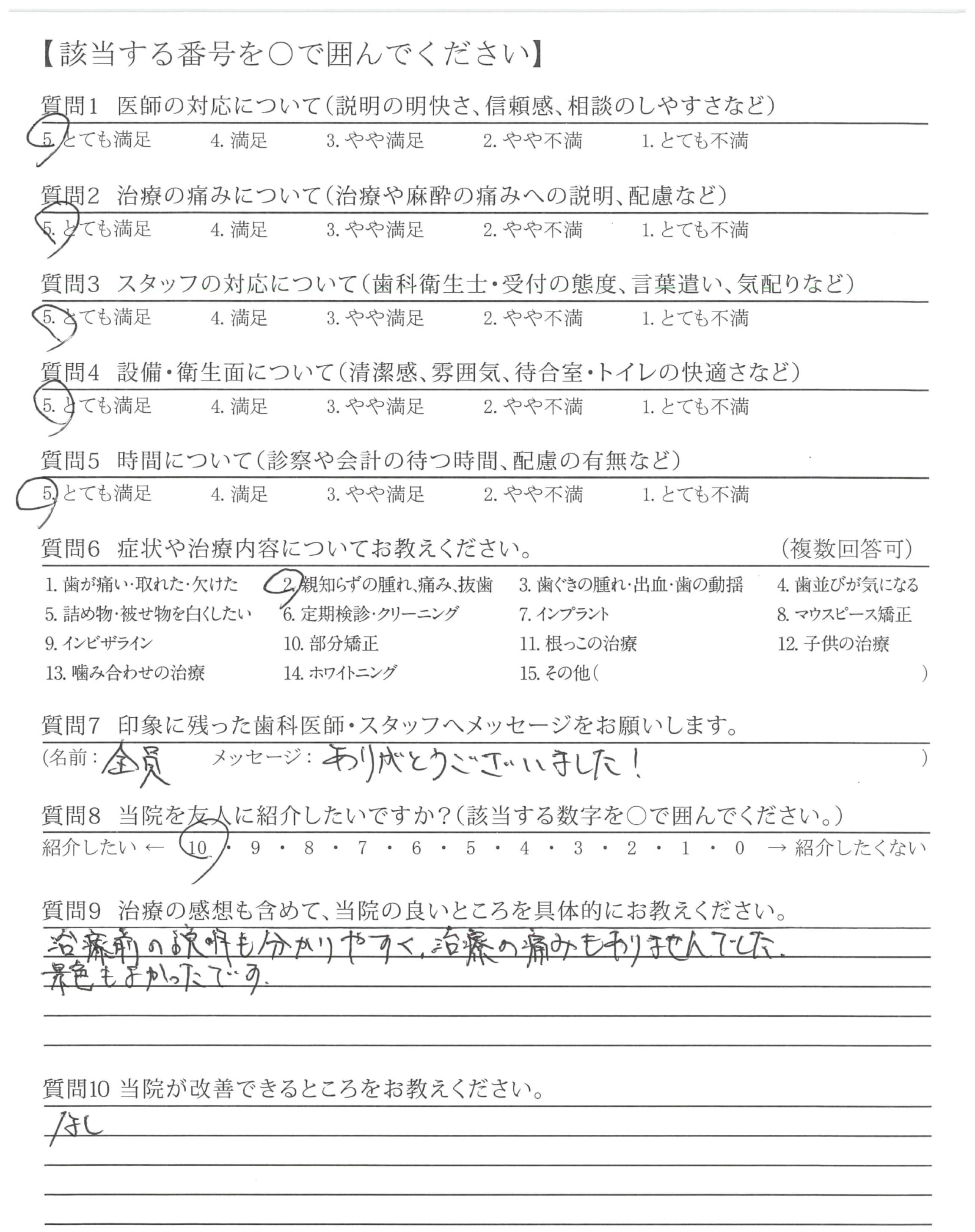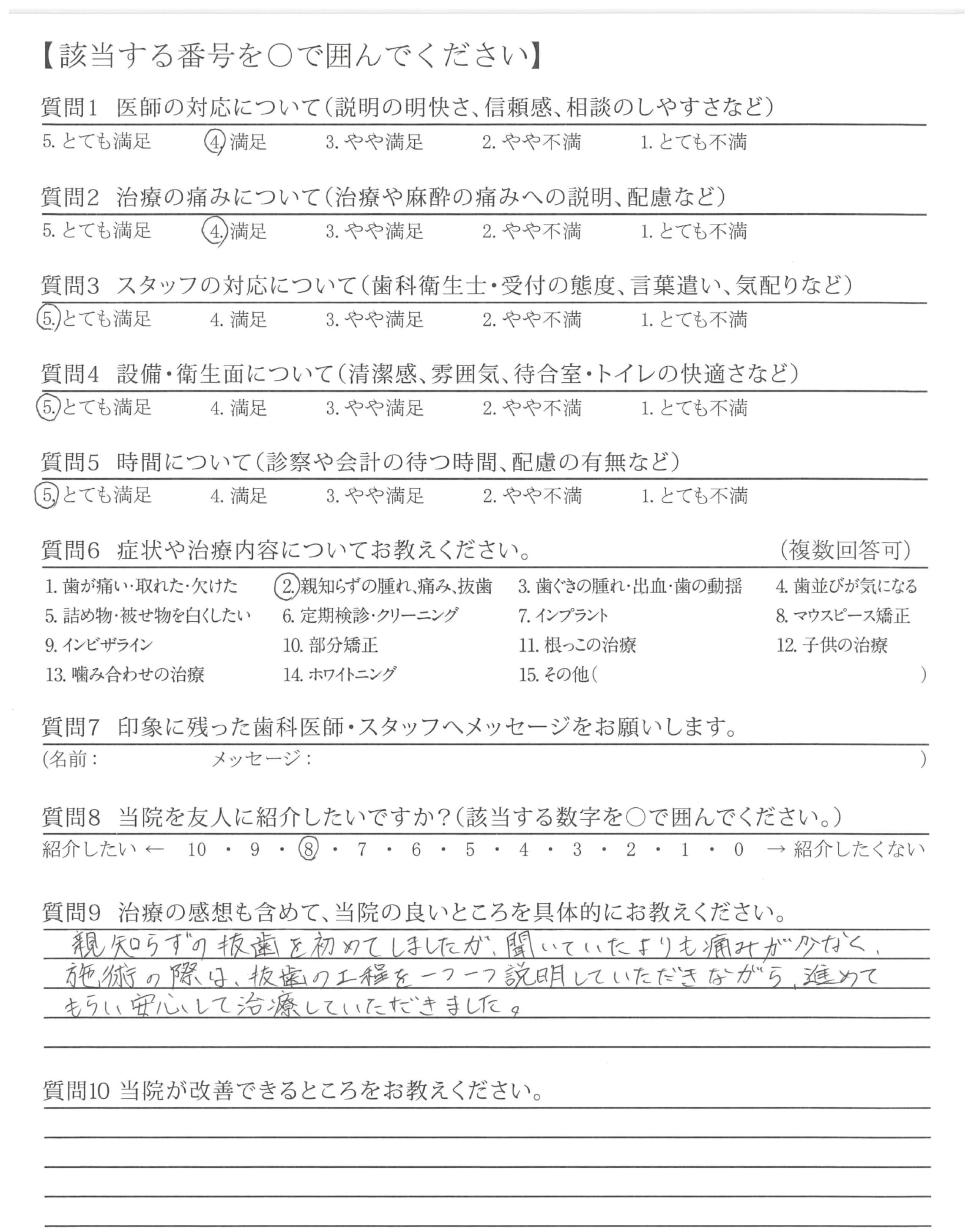比較的難しい抜歯にも関わらず、痛みなく抜歯頂き、術後の経過も良好でした。