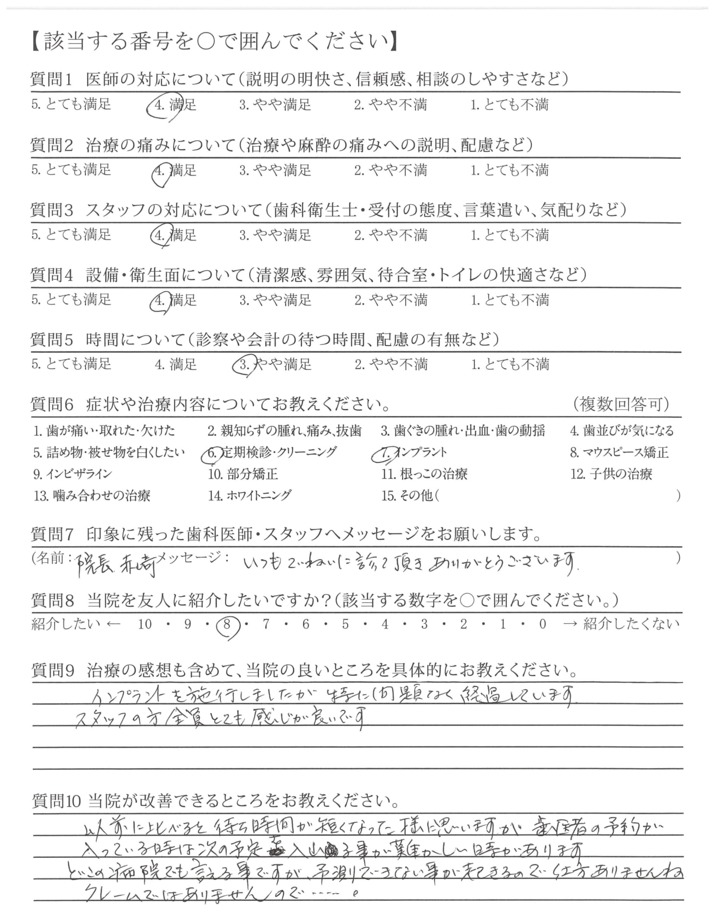 質問に対しわかりやすく説明してくださり安心して治療を受けることができた。