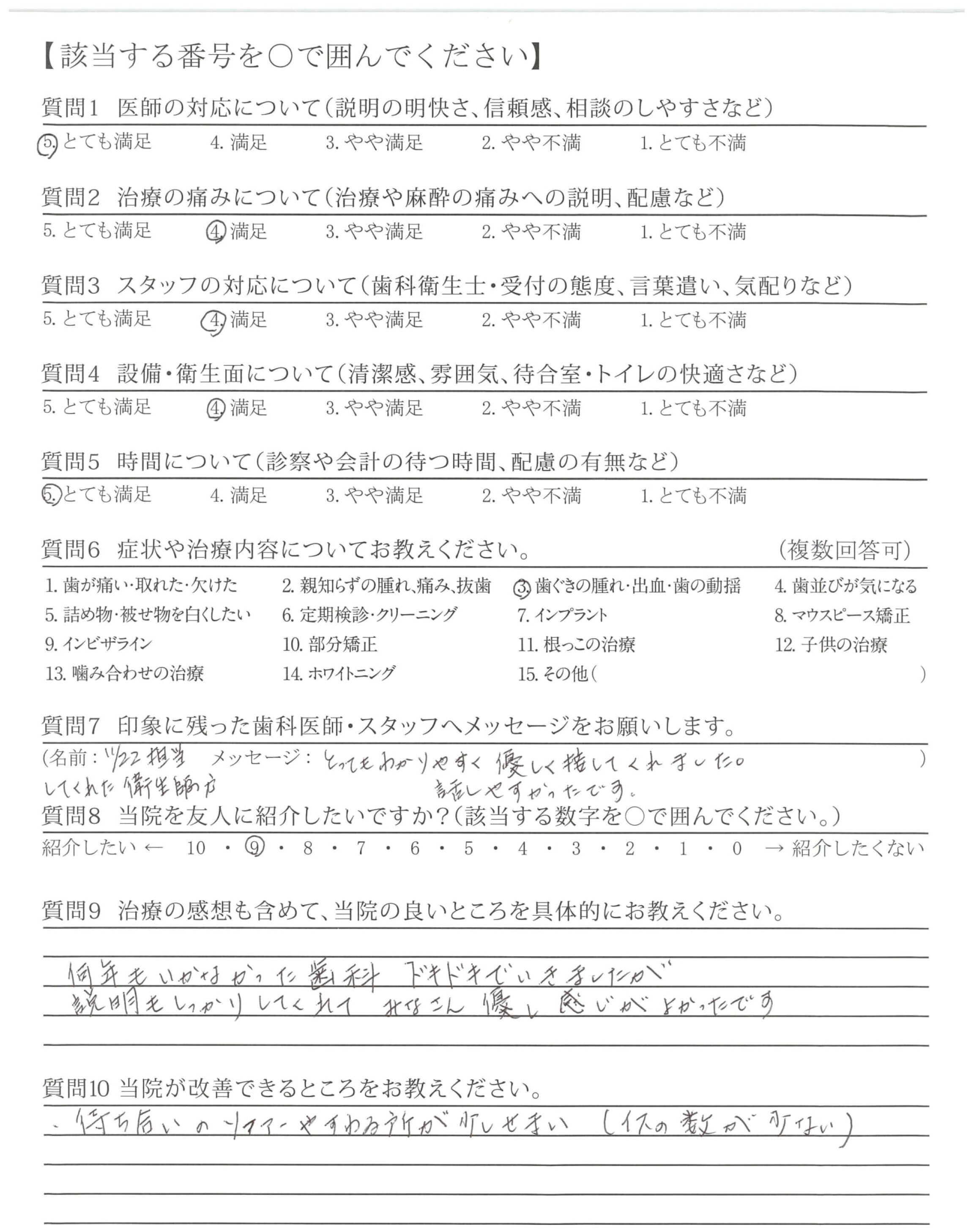 今までどの歯医者さんでも言われたことなかったので、とてもうれしかったです。