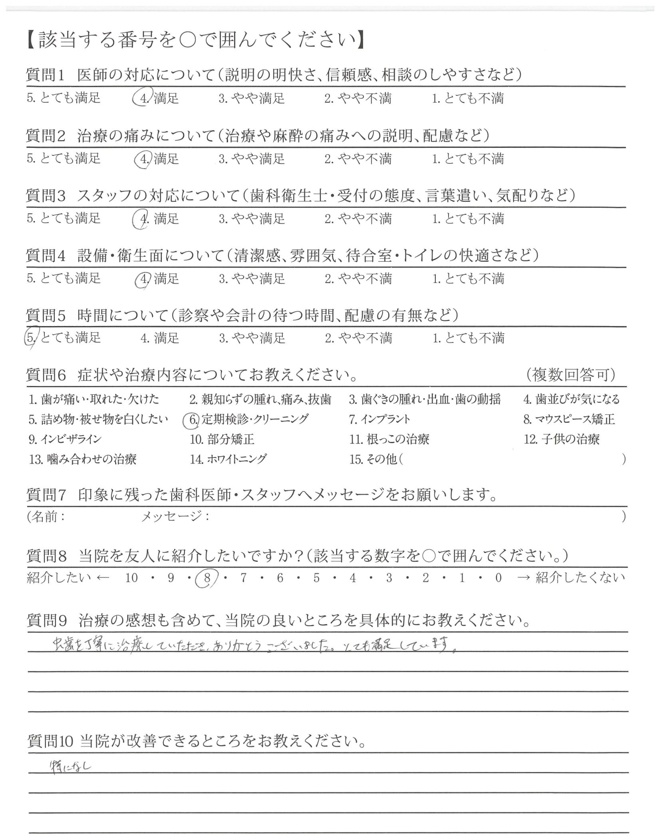 いつも穏やかに説明して下さってありがとうございます。安心して治療を受けられました。