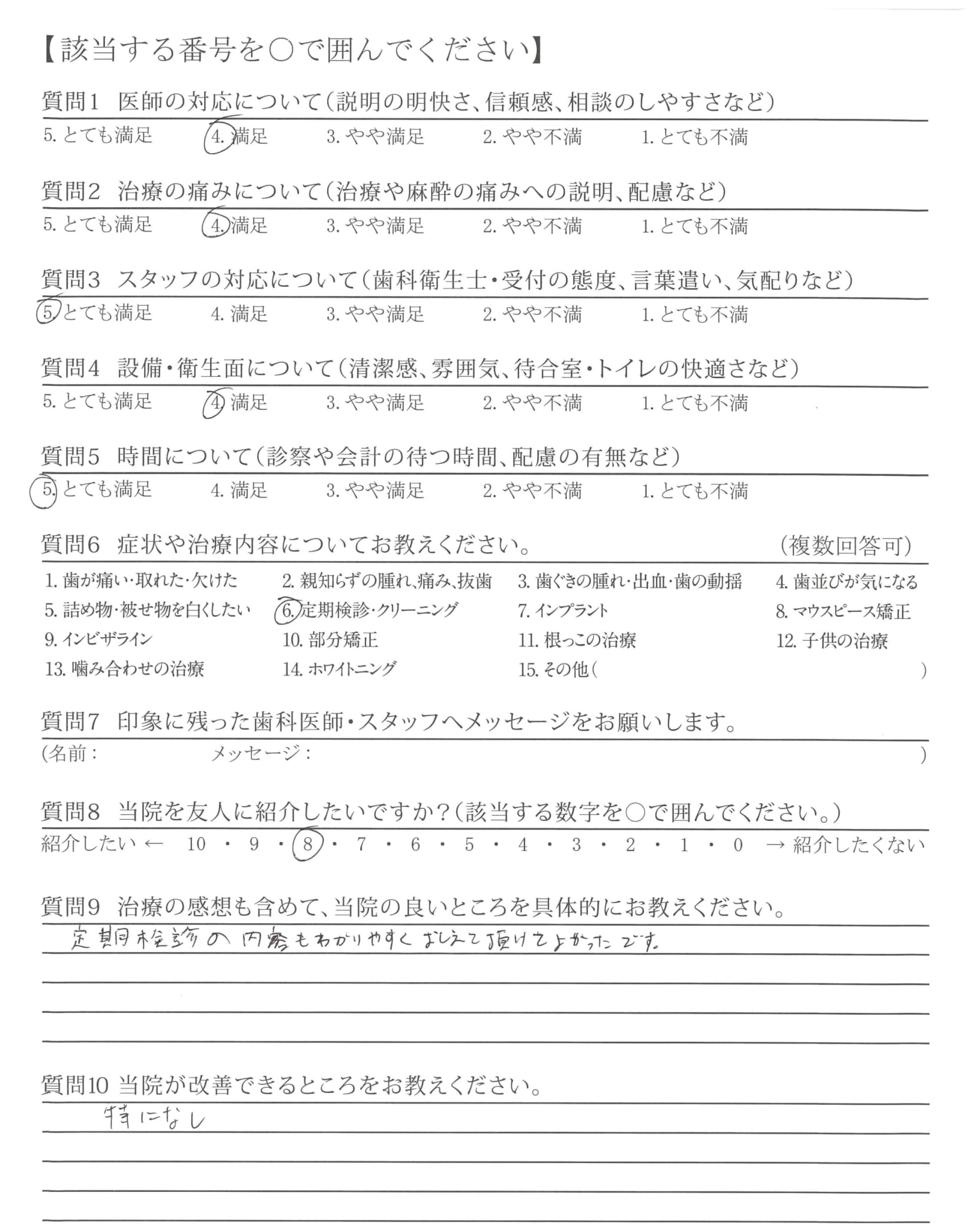 定期検診の内容もわかりやすくおしえて頂けてよかったです。