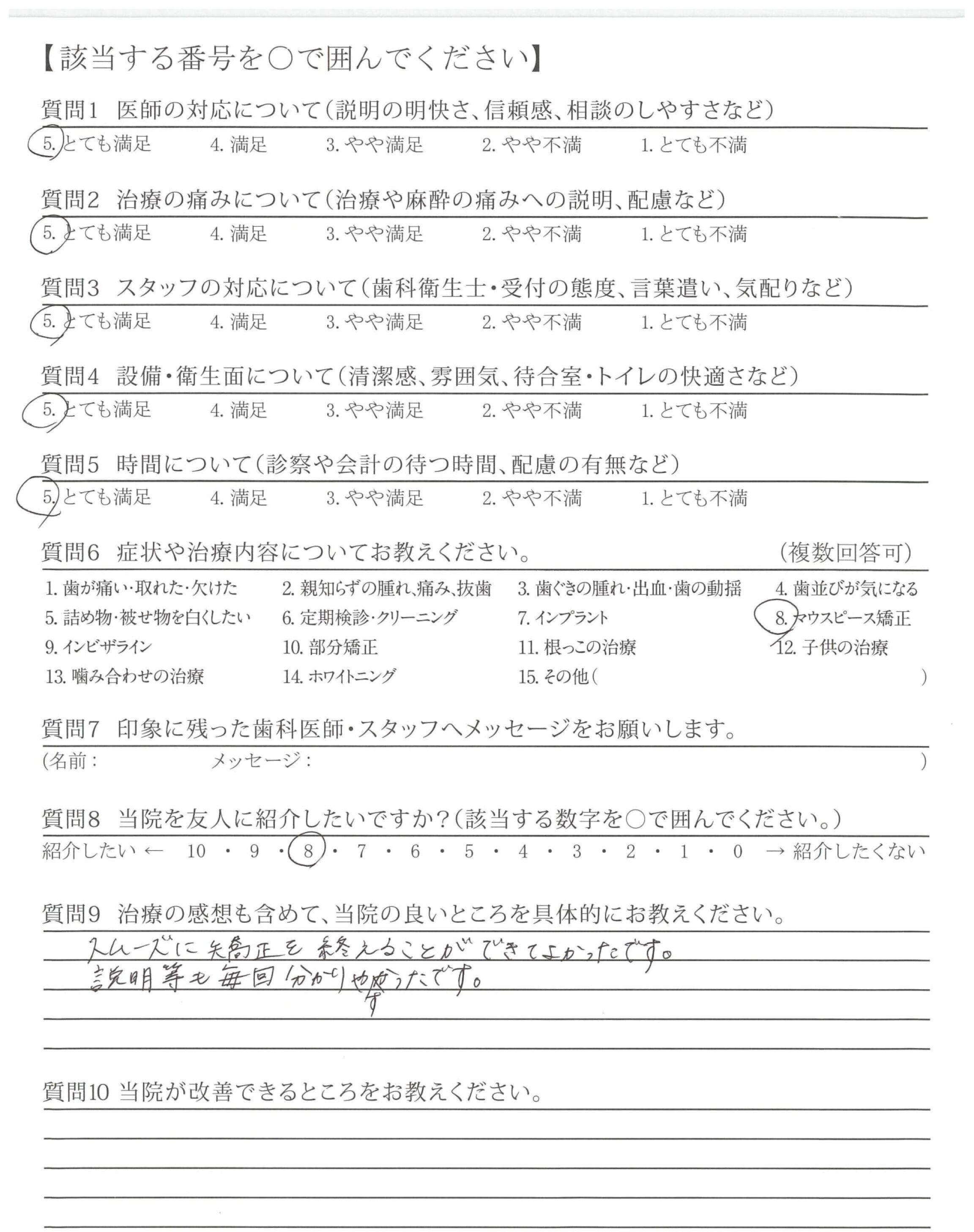 マウスピース矯正の治療中ですが、自分の歯がきれいになっていくのを先生が心の底から喜んでくれるのが嬉しいです。患者さん想いのとても良い先生です。