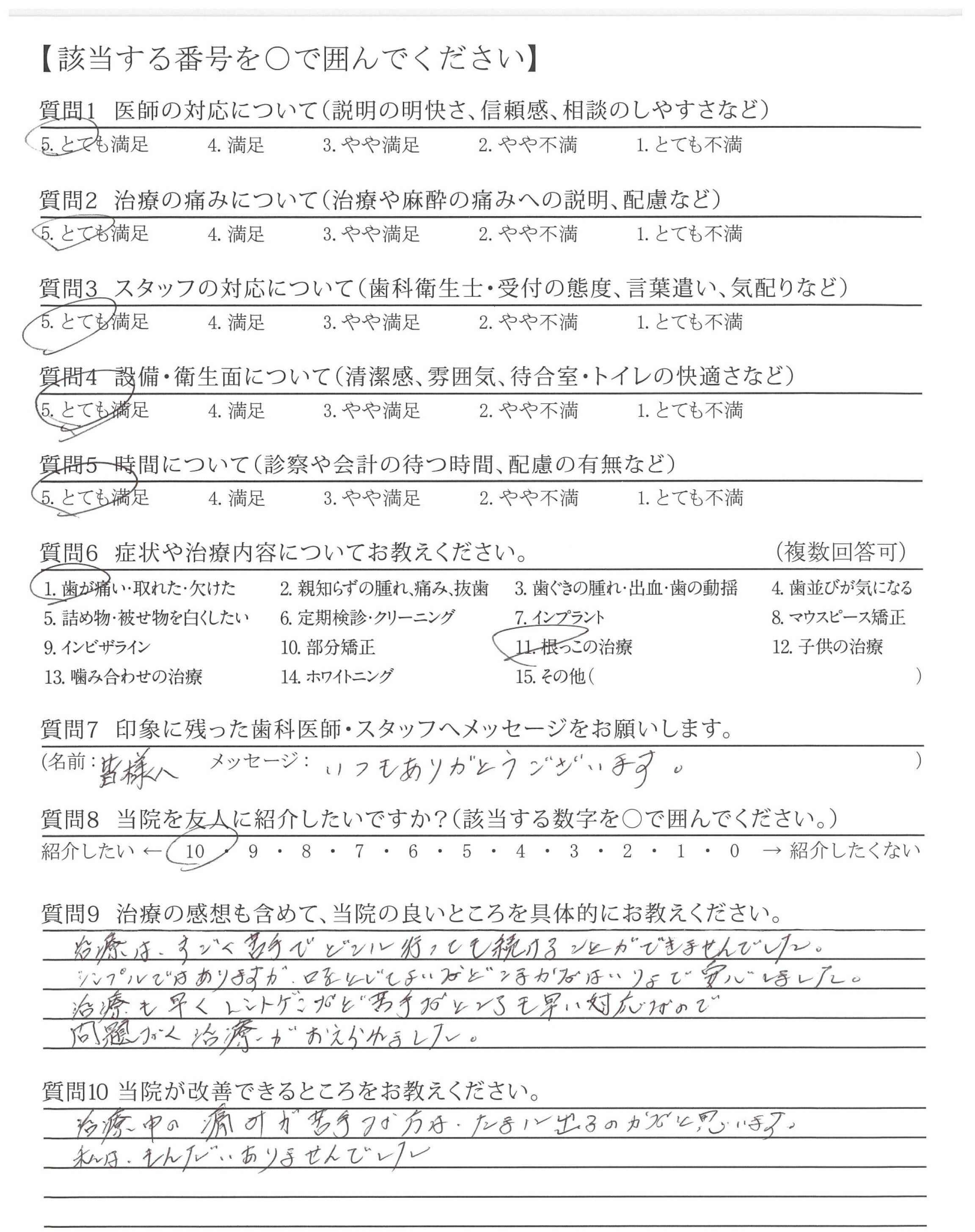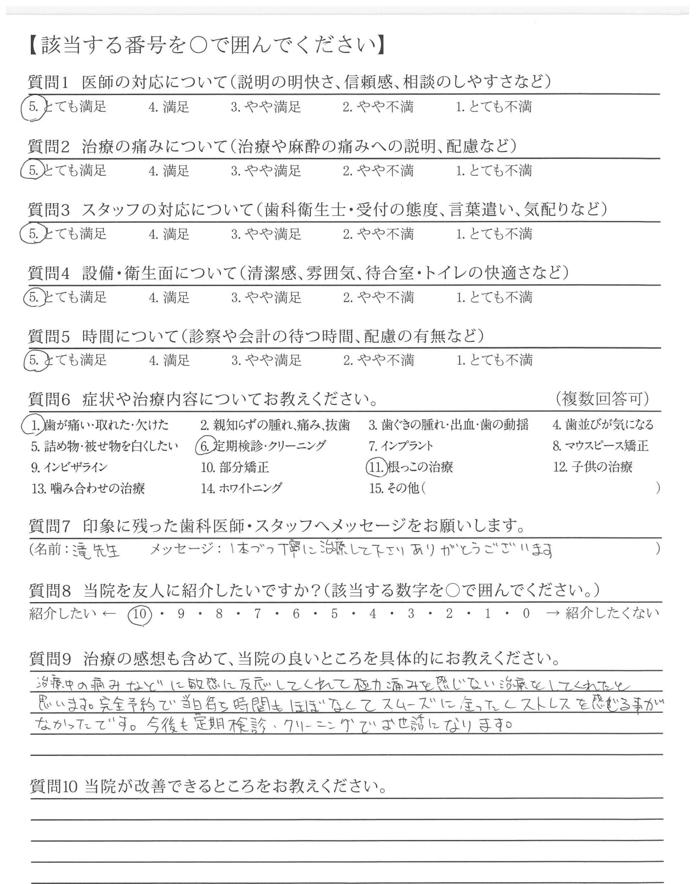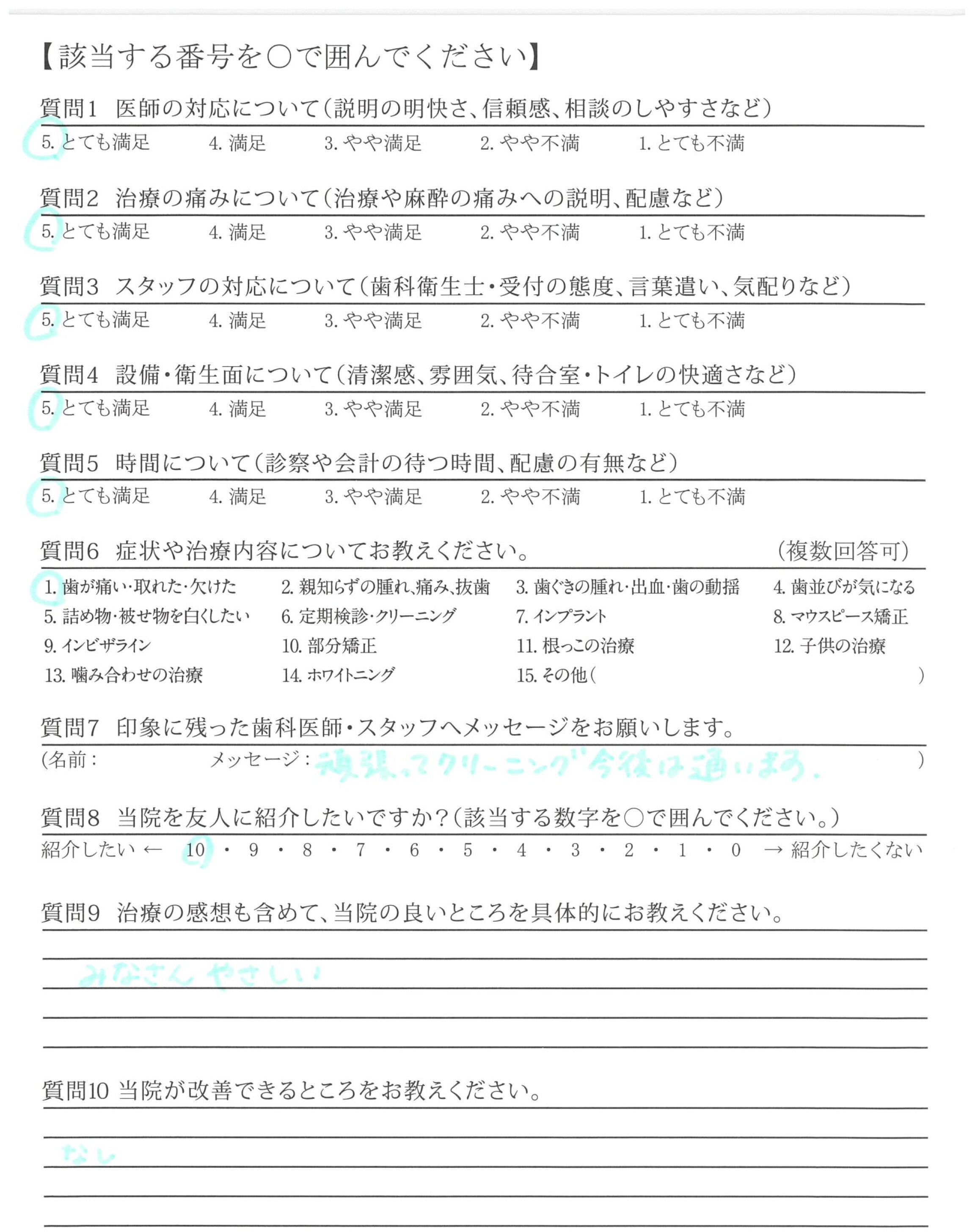 治療中の痛みなどに敏感に反応してくれて極力痛みを感じない治療をしてくれたと思います。