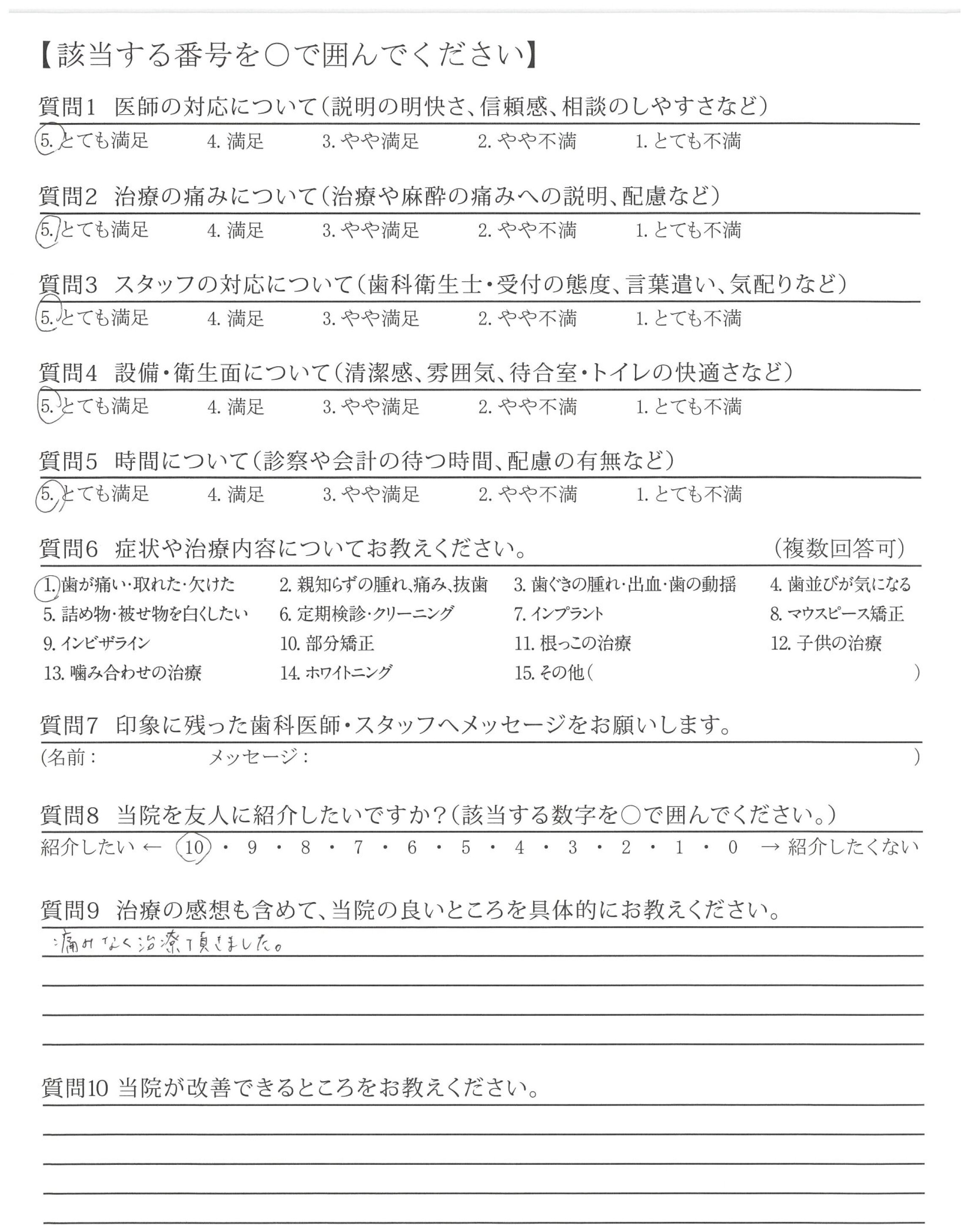 痛みなく治療頂きました。