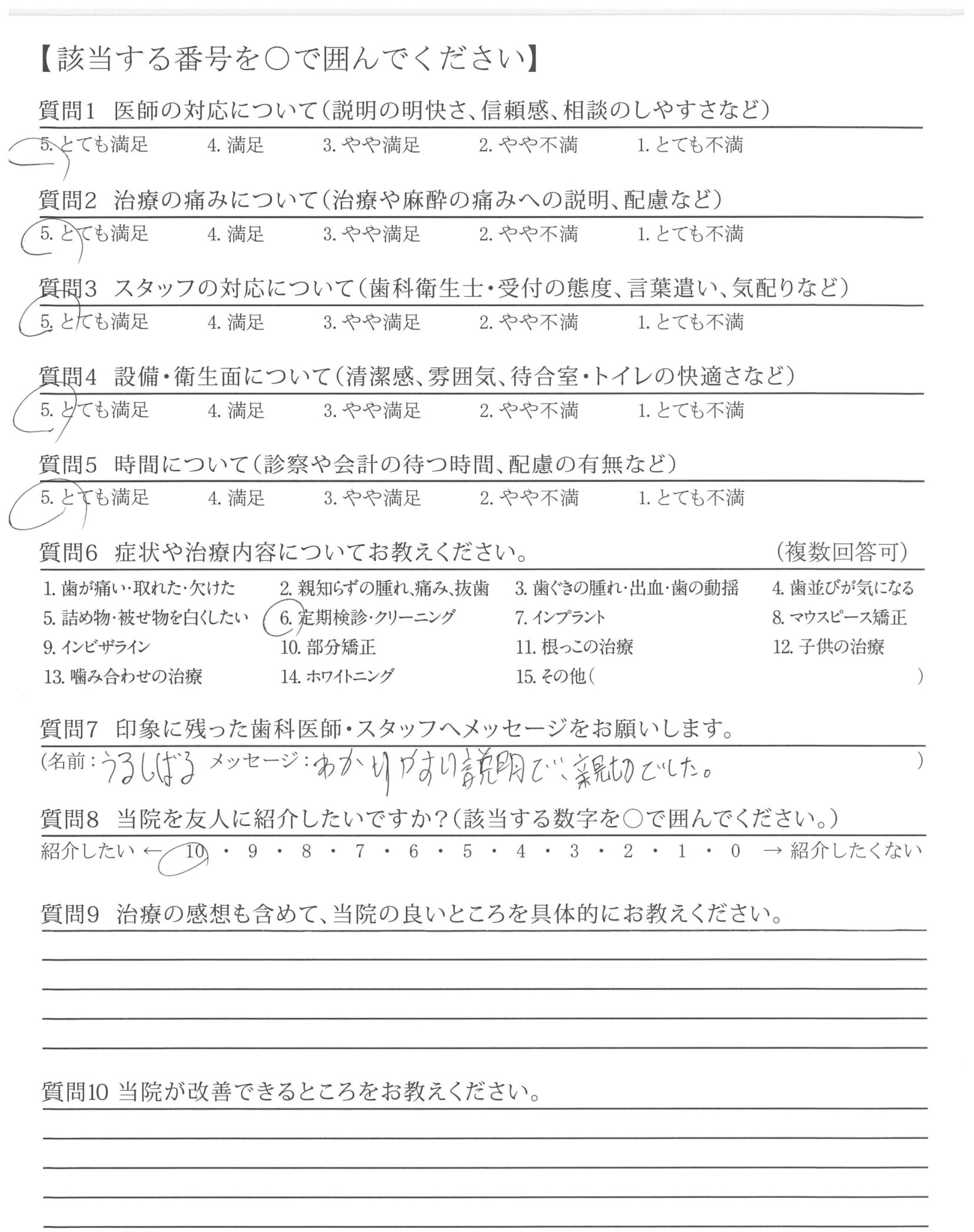 施術がとても丁ねいで、歯みがきのアドバイスなどしてくださりありがとうございました!