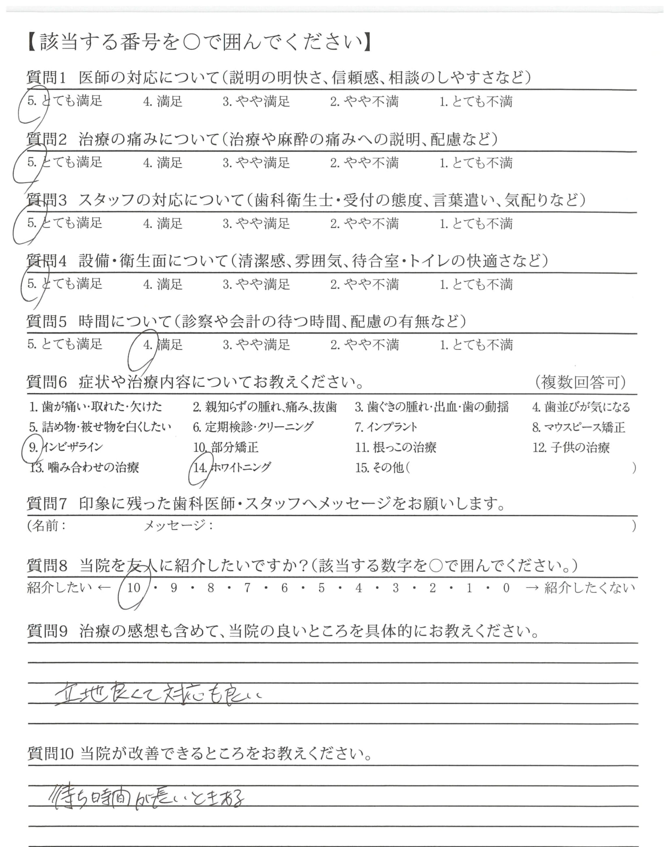 | 歯科医師の対応 | ![]() ![]() ![]() ![]() 4.69 |