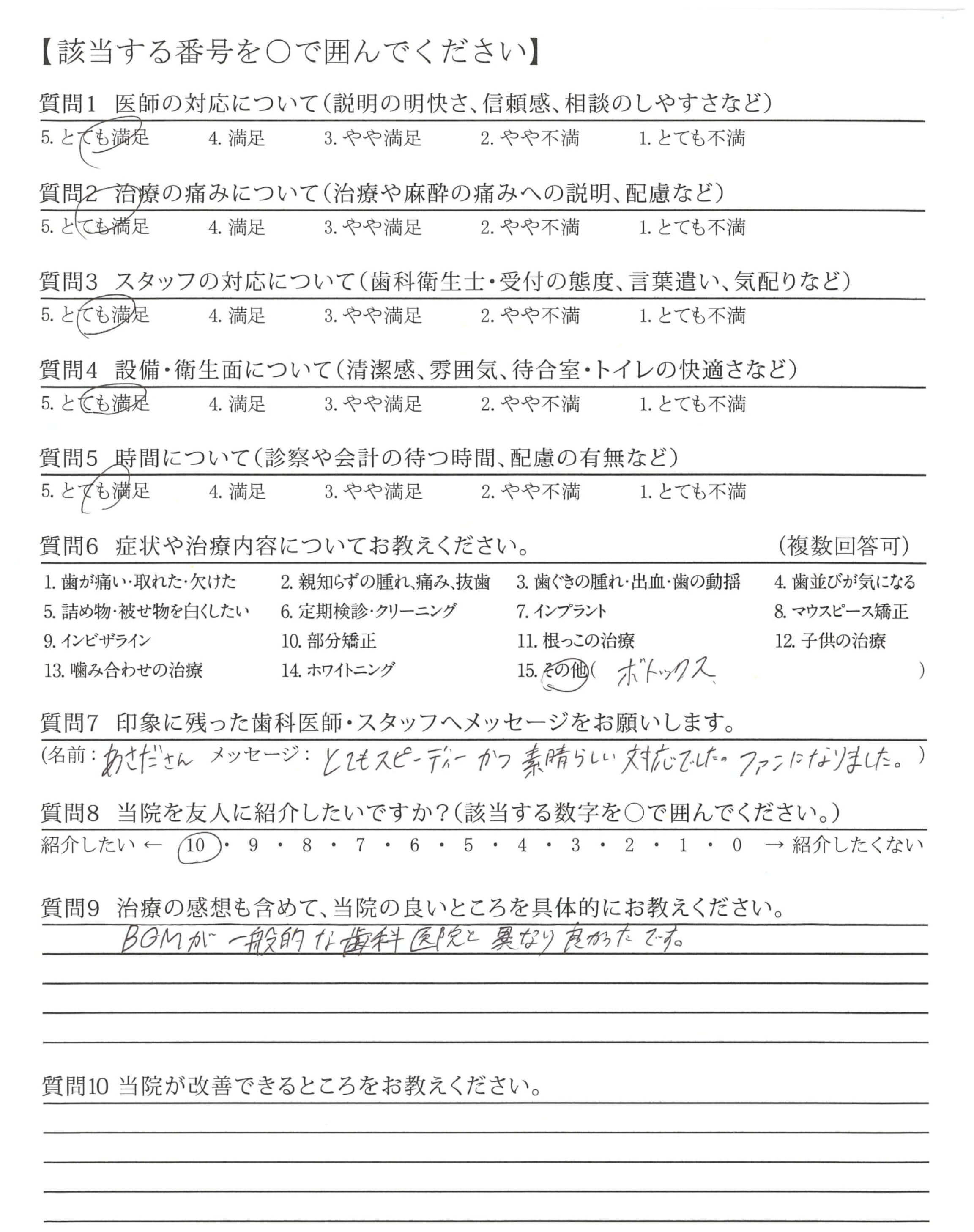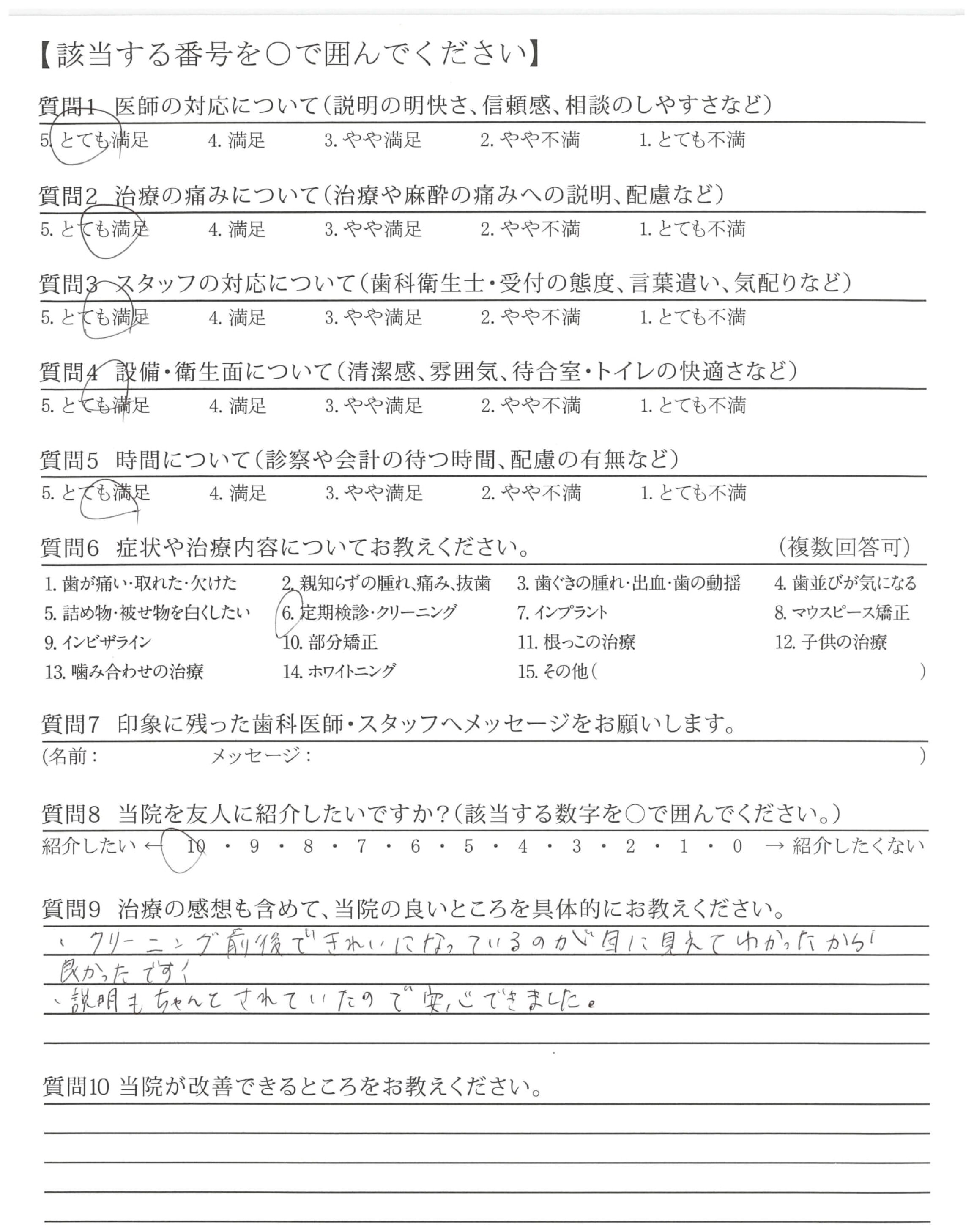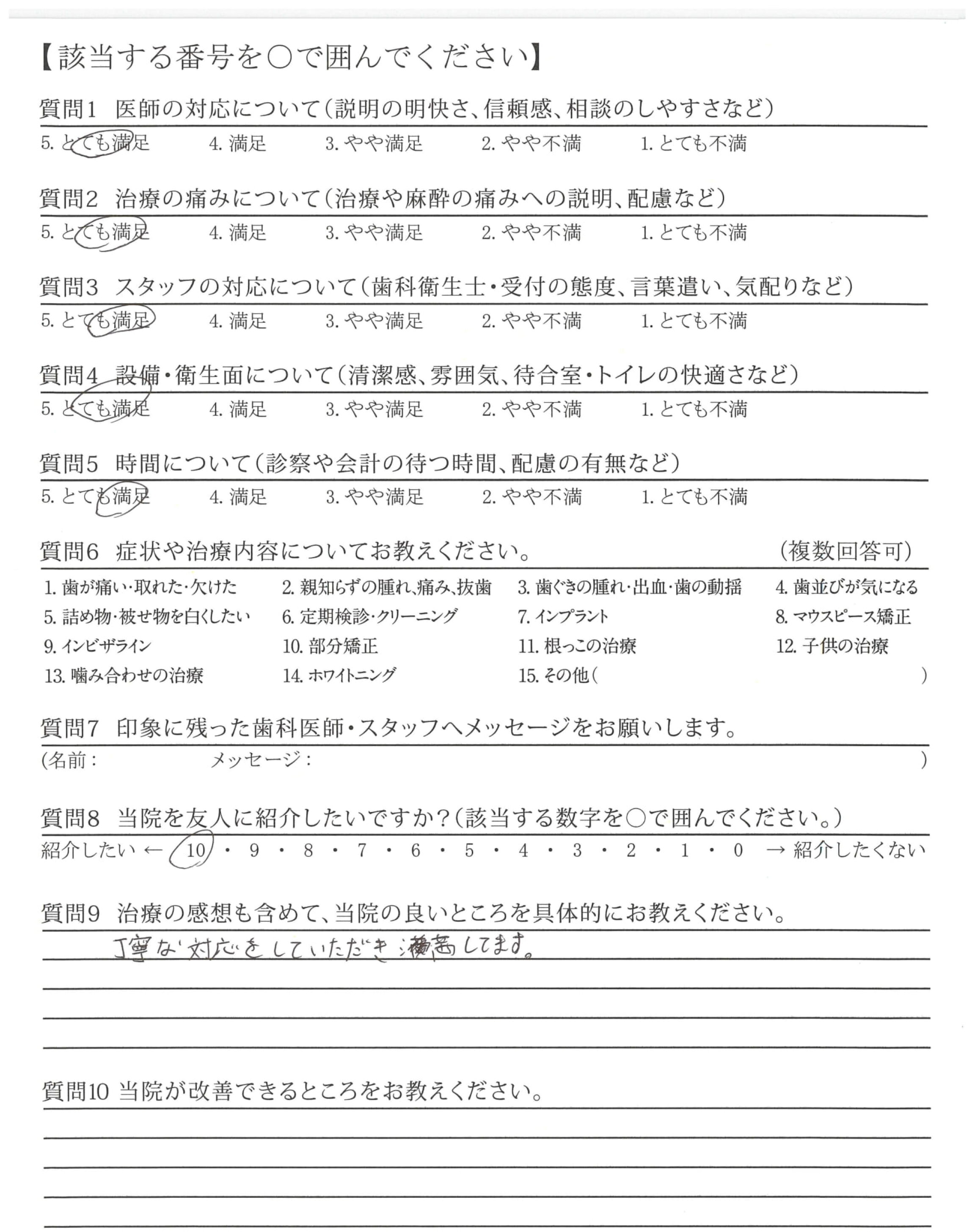 治療も、丁寧で痛みもさほどなく、不安等はありませんでした。