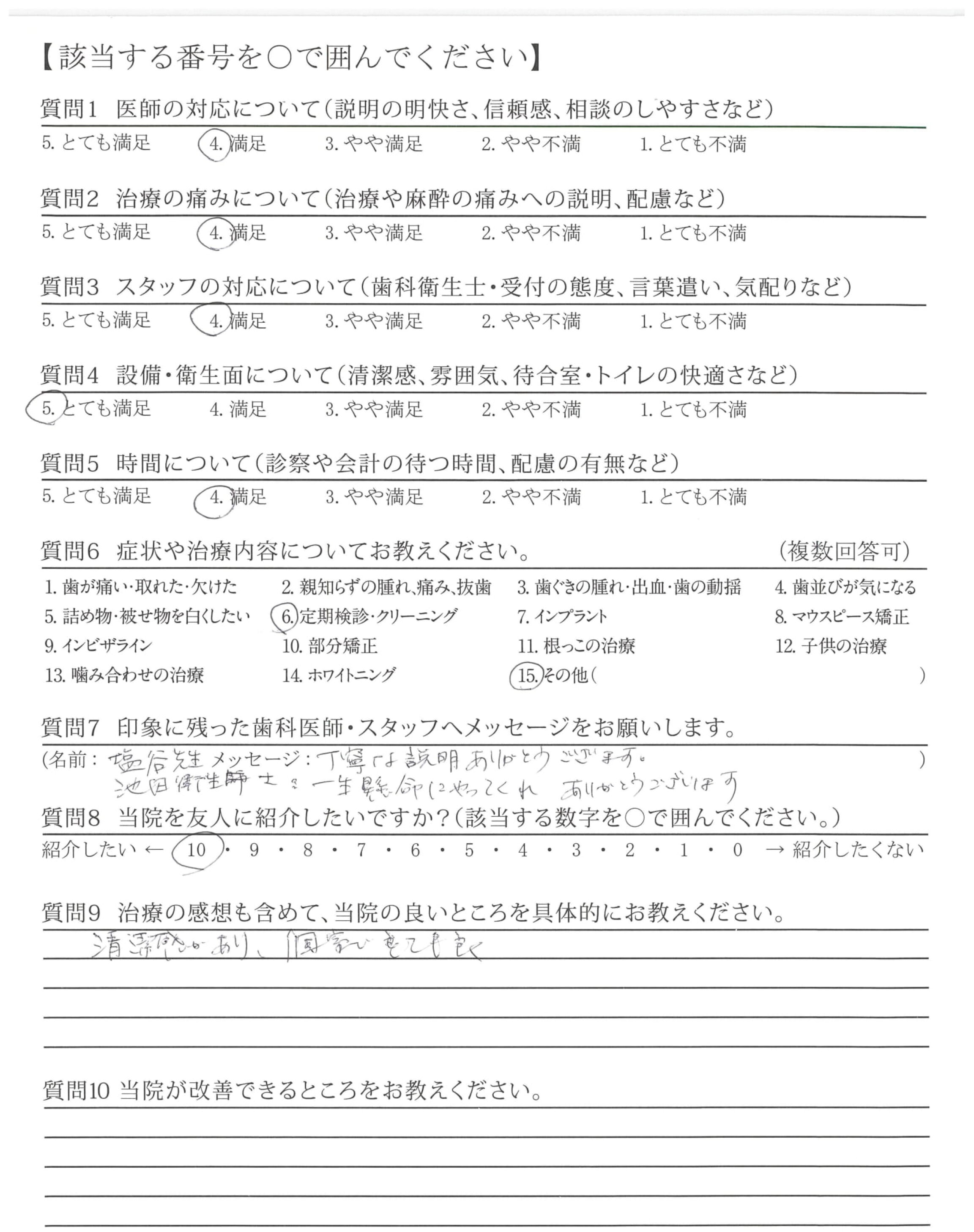 | 歯科医師の対応 | ![]() ![]() ![]() ![]() 4.69 |