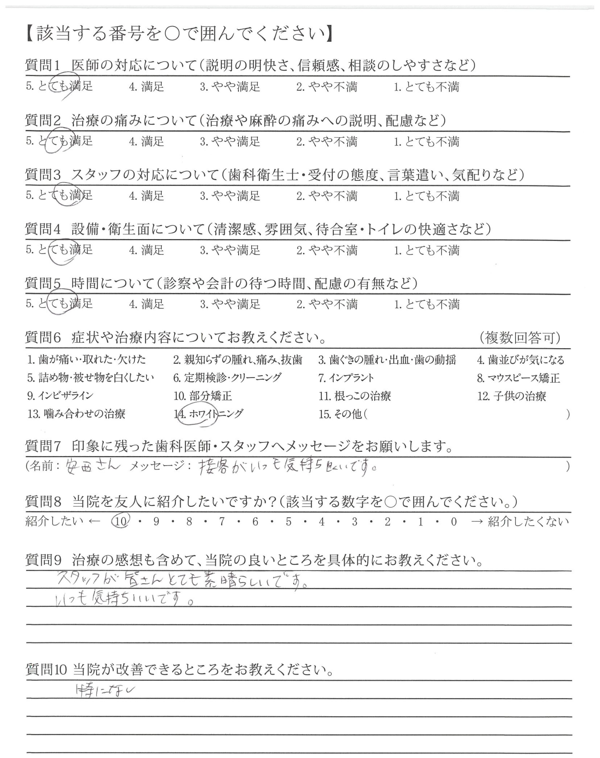 | 治療の痛みへの配慮 | ![]() ![]() ![]() ![]() 4.90 |