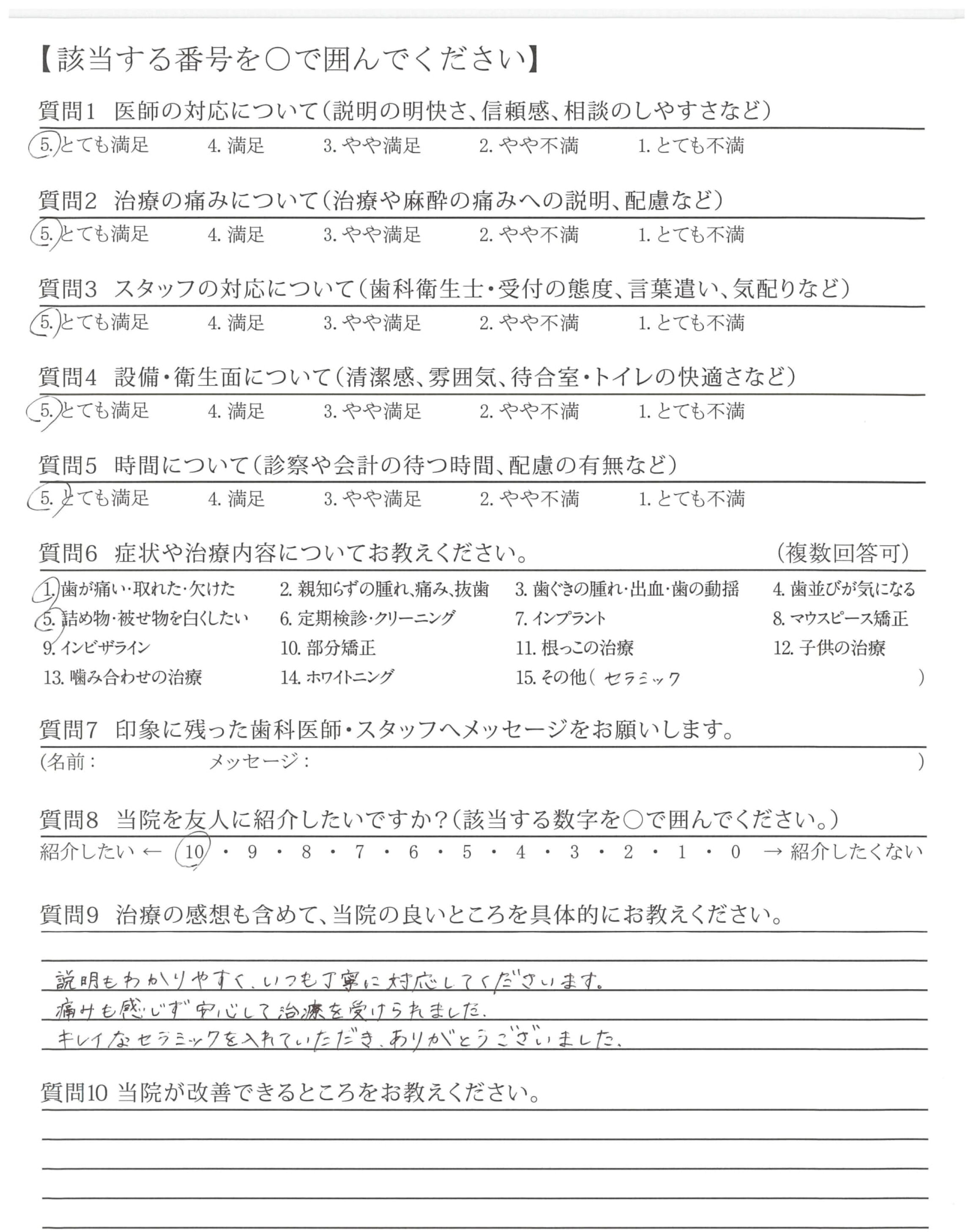 キレイなセラミックを入れていただき、ありがとうございました。