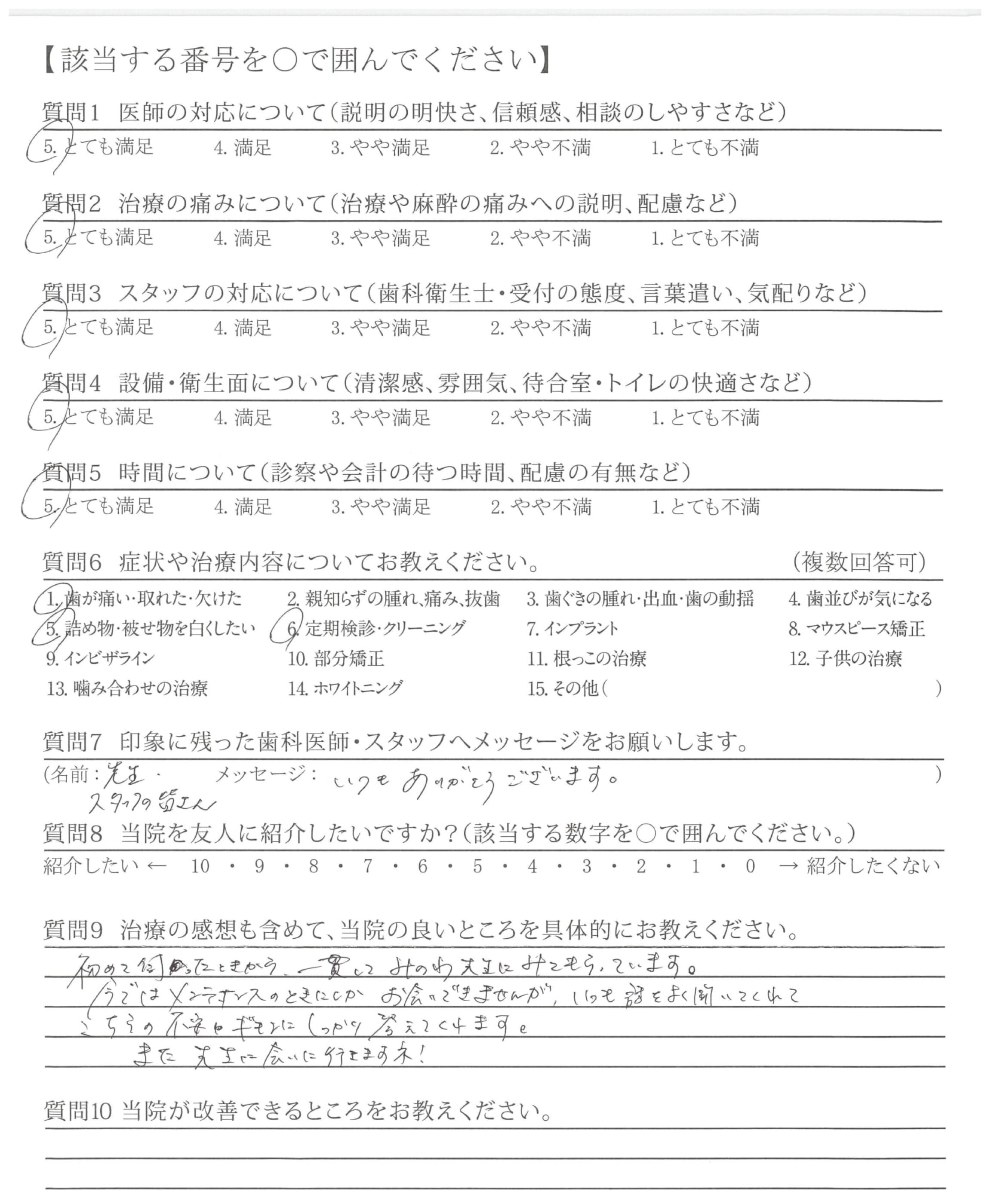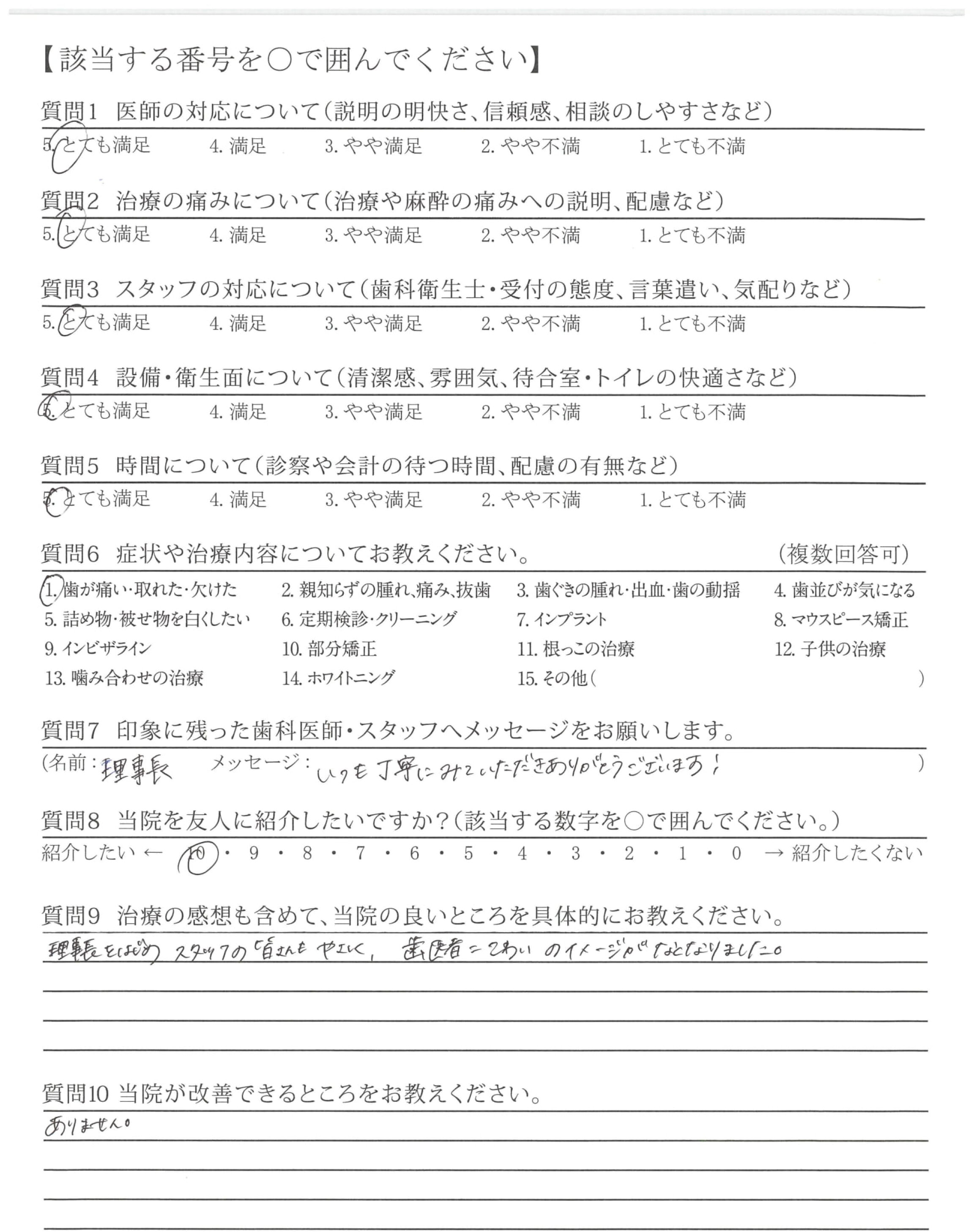 理事長をはじめ、スタッフの皆さんもやさしく、歯医者=こわいのイメージがなくなりました。
