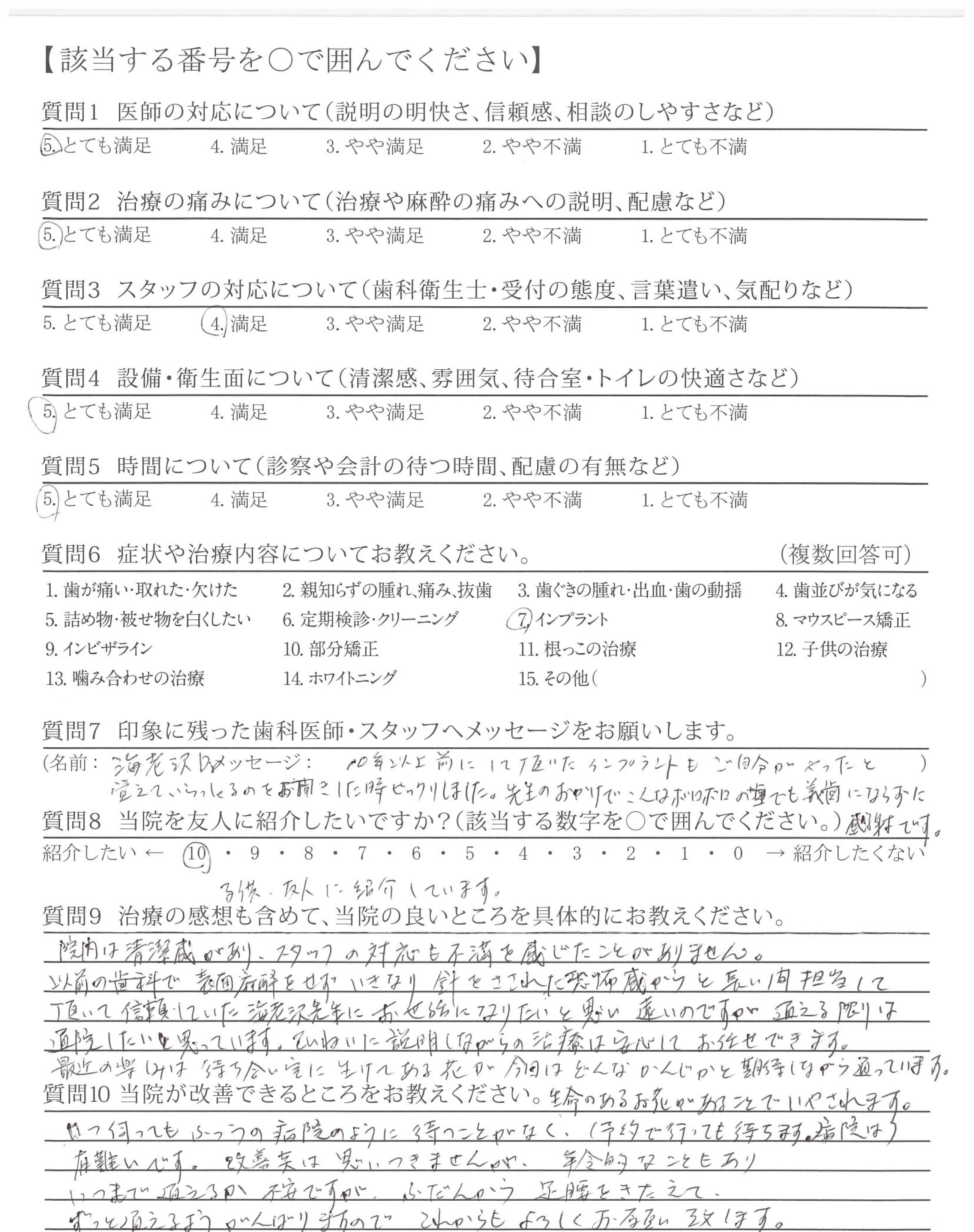 10年以上前にして頂いたインプラントもご自分がやったと覚えていらっしゃるのをお聞きした時ビックリしました。先生のおかげでこんなボロボロの歯でも義歯にならずに感謝です。