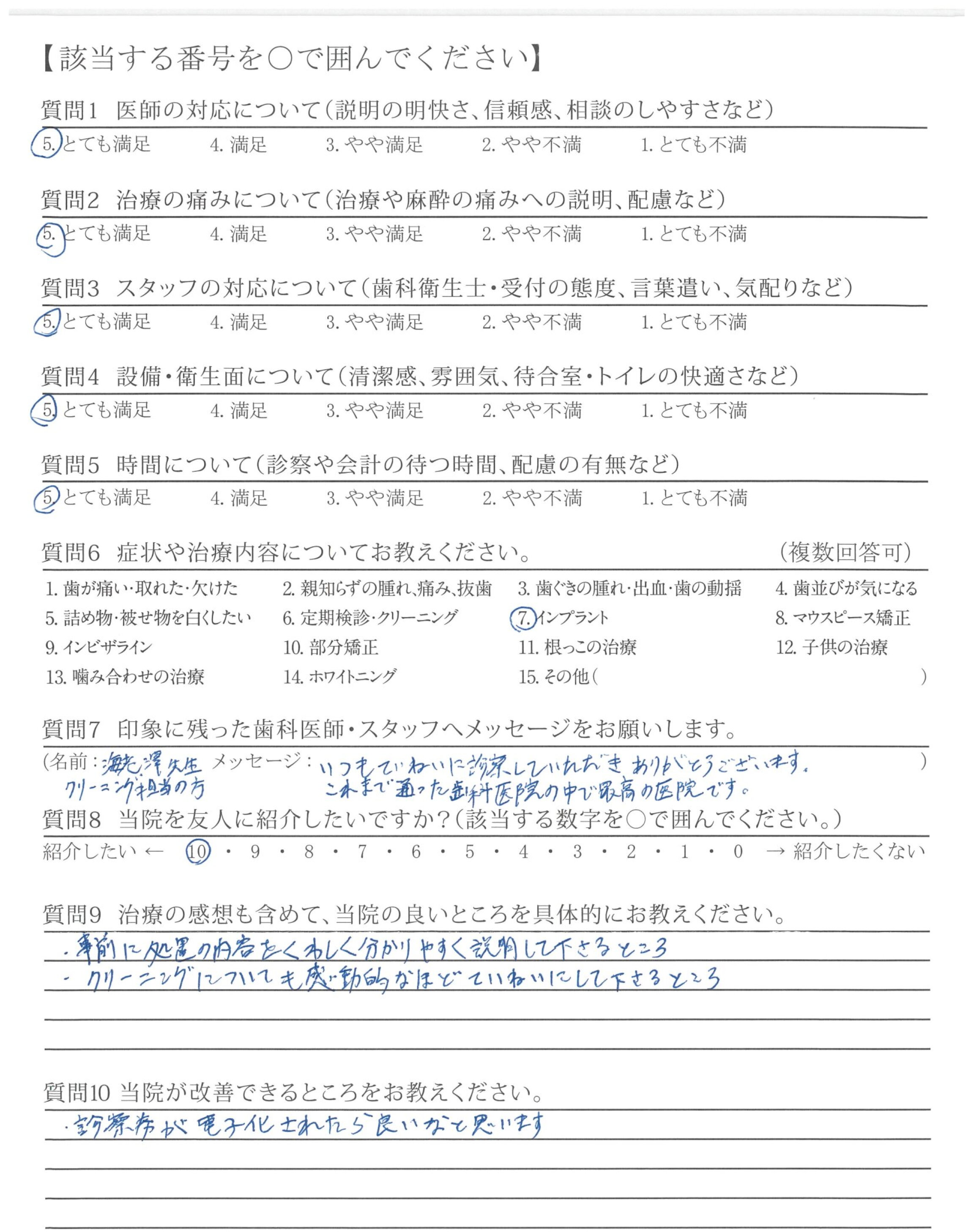 以前の歯科で表面麻酔をせずいきなり針をさされた恐怖感からと長い間担当して頂いて信頼していた海老沢先生にお世話になりたいと思い、遠いのですが通える限りは通院したいと思っています。