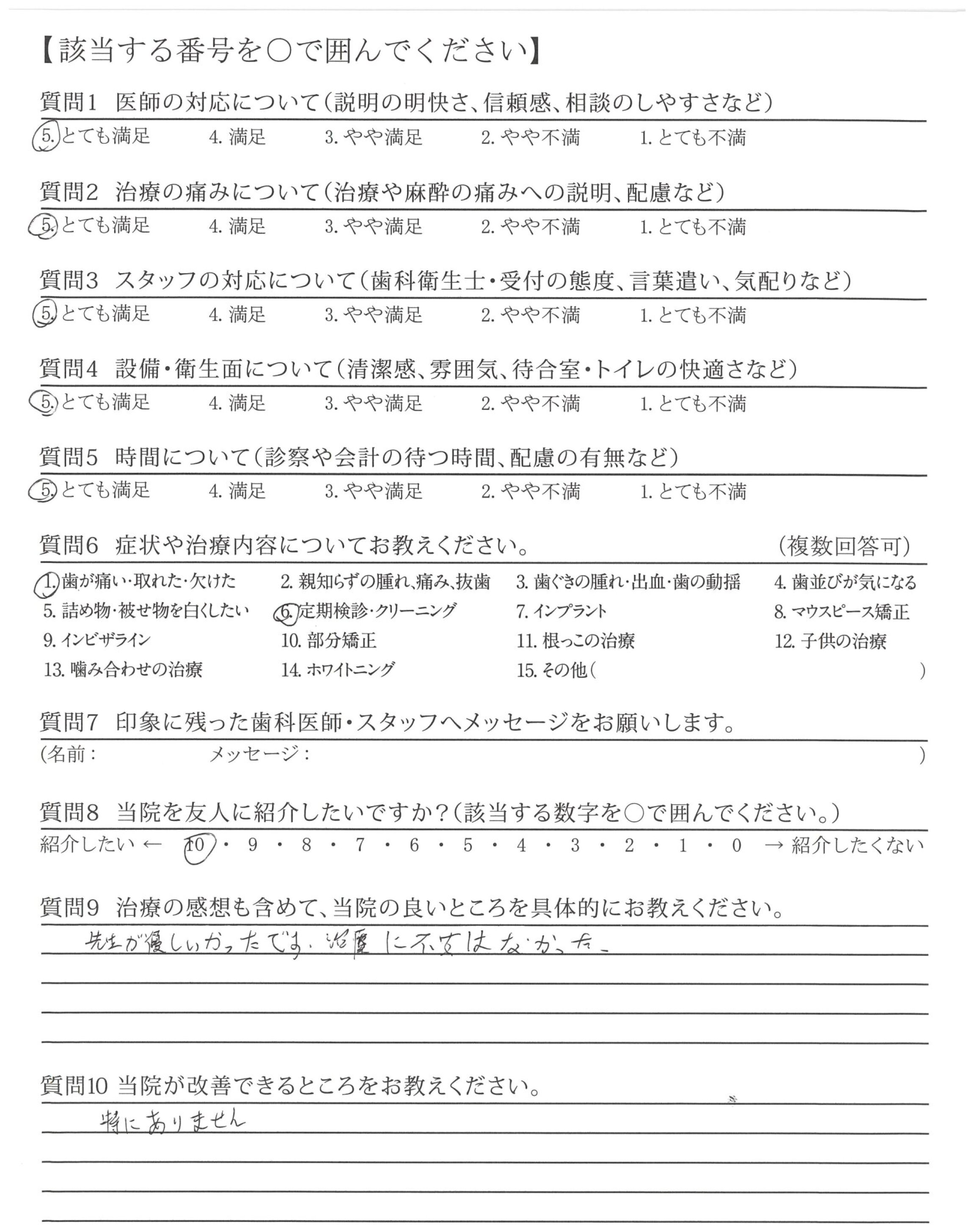 先生が優しかったです。治療に不安はなかった。