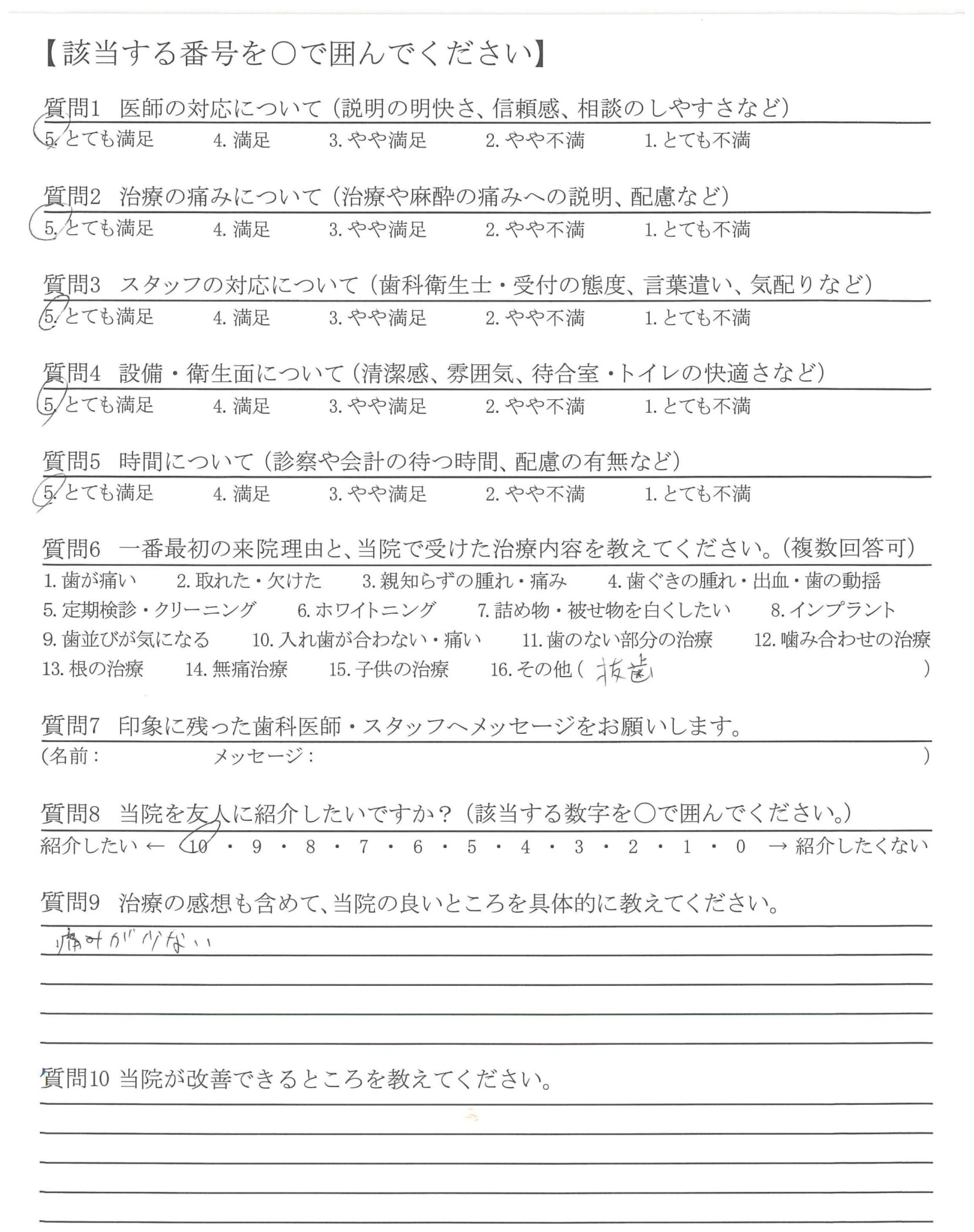 痛くない様に抜歯して下さりありがとうございました。