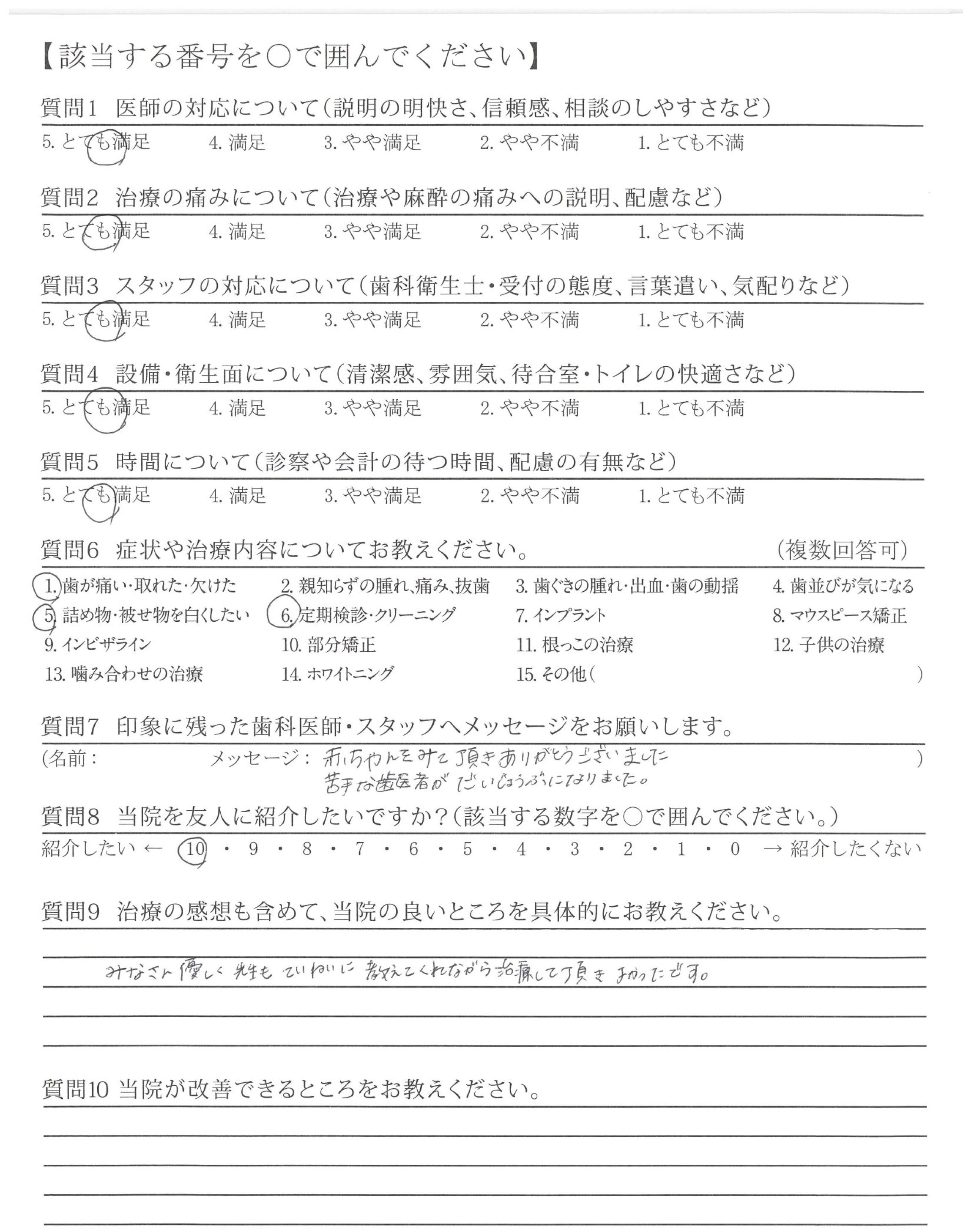 すごくていねいに対応して頂き、安心して治療を受けることができました。ありがとうございました。