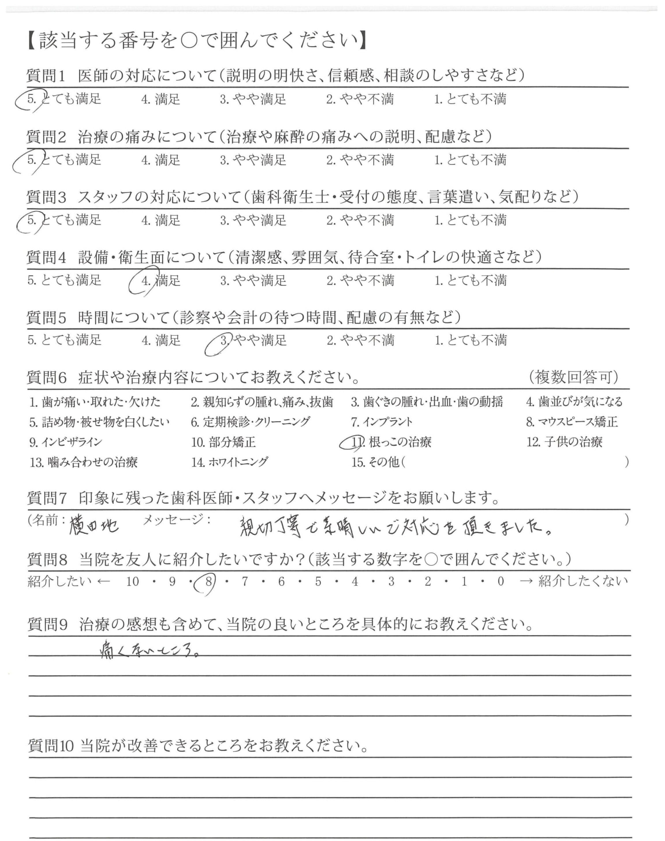 | 治療の痛みへの配慮 | ![]() ![]() ![]() ![]() 4.67 |