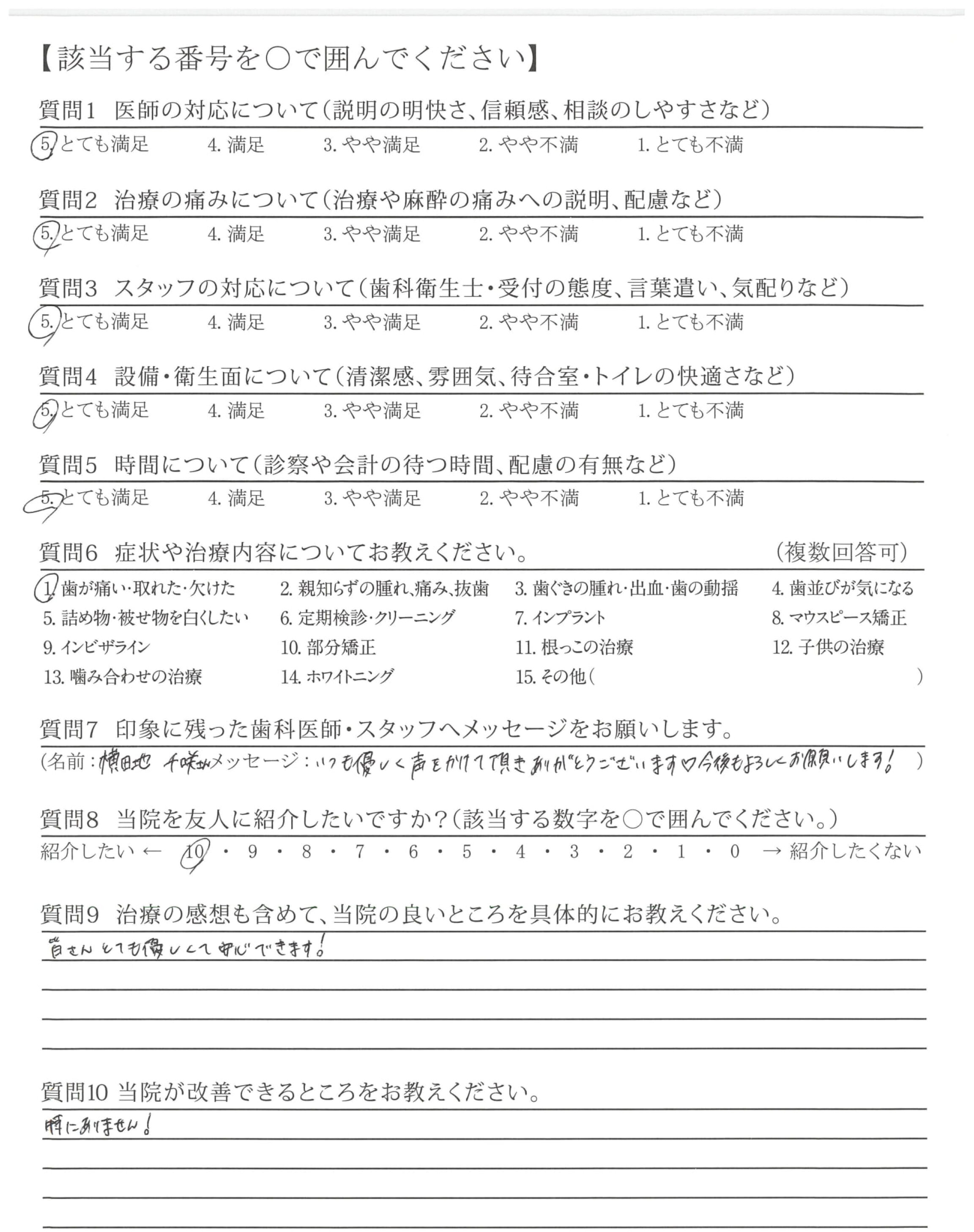 歯科治療に対して恐怖心が強く不安でしたが痛みなく治療することが出来て感謝しております。