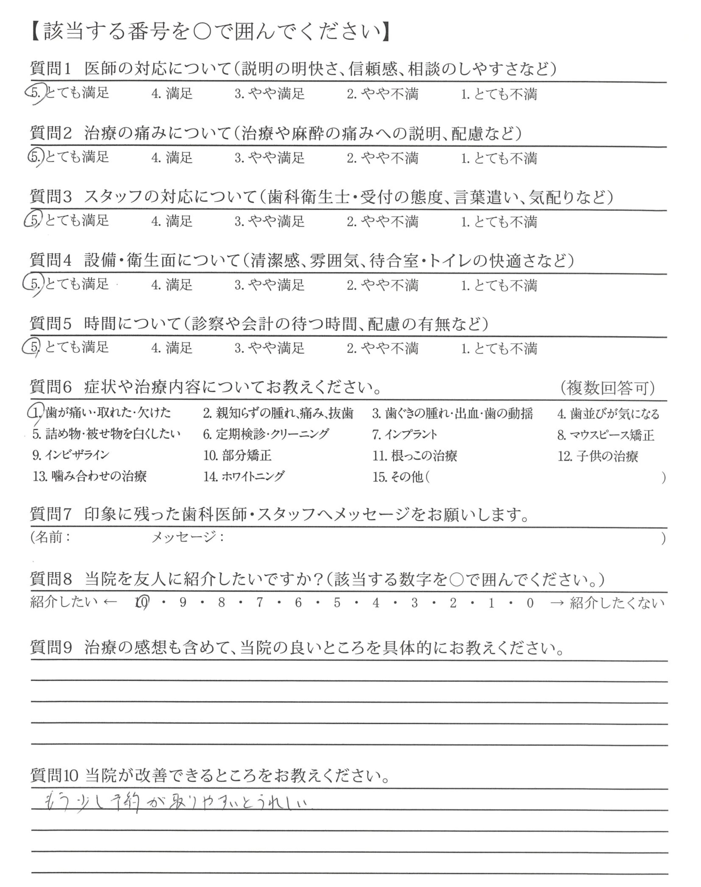 話が長くなく、早急に治療頂けるところ。