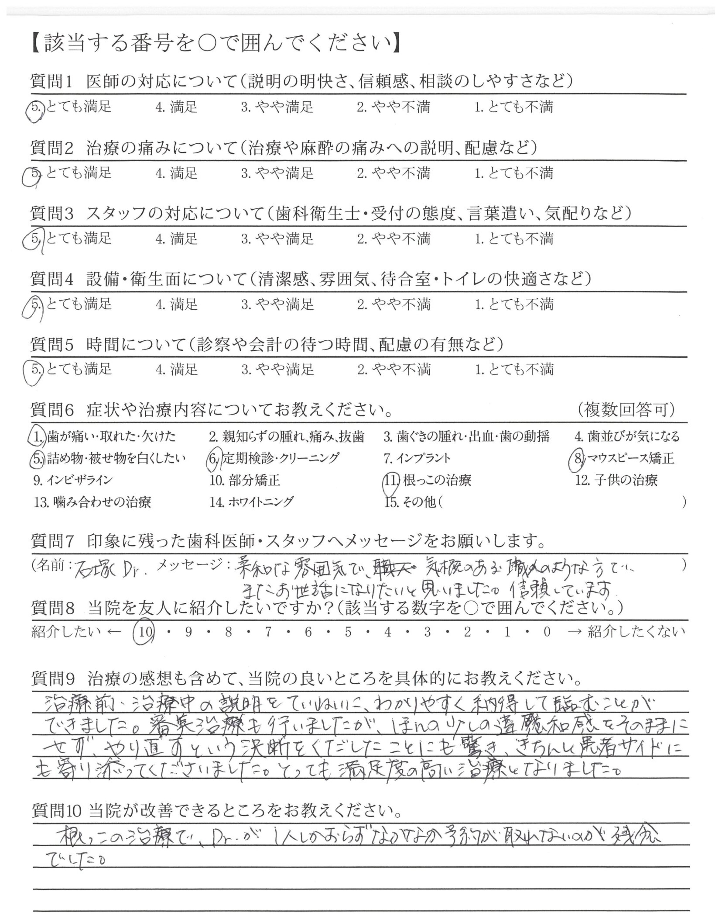 治療前、治療中の説明をていねいに、わかりやすく納得して臨むことができました。