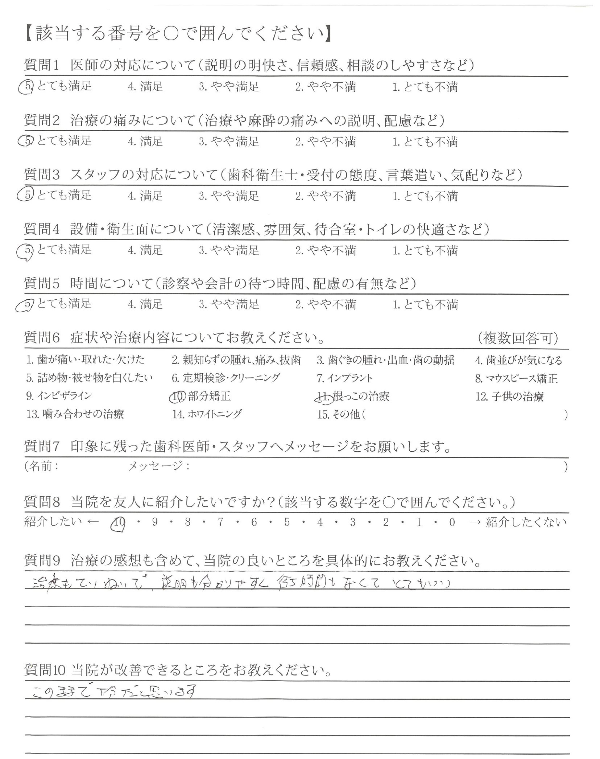 治療前にカウンセリングがあり、説明も分かりやすく安心感がもてました。また、不明な点があり、質問をすると、1つひとつ丁寧に分かりやすく、時間をかけて説明を受けれた為、不心感なく、矯正が始められました。