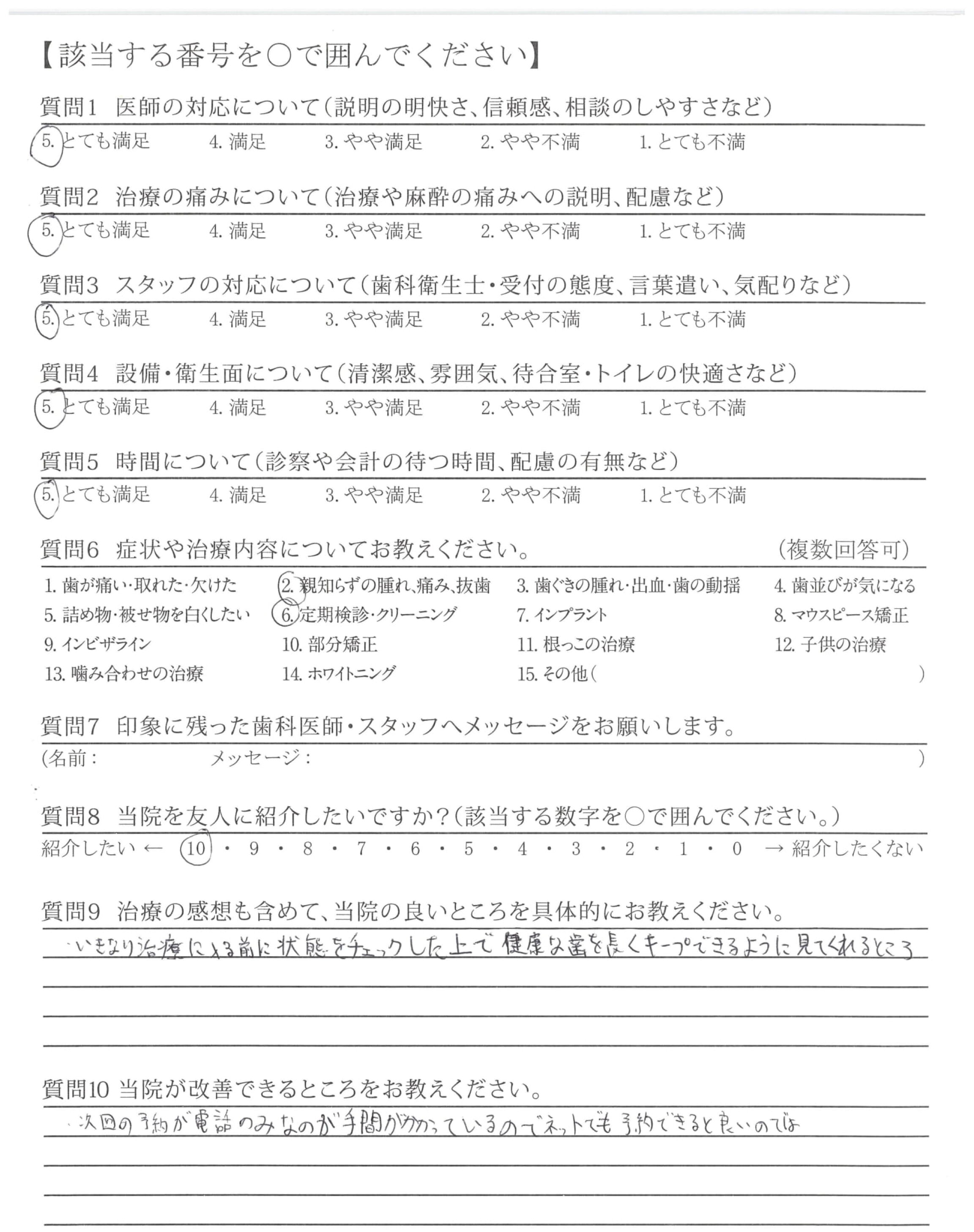 ・次回の予約が電話のみなのが手間がかかっているのでネットでも予約できると良いのでは