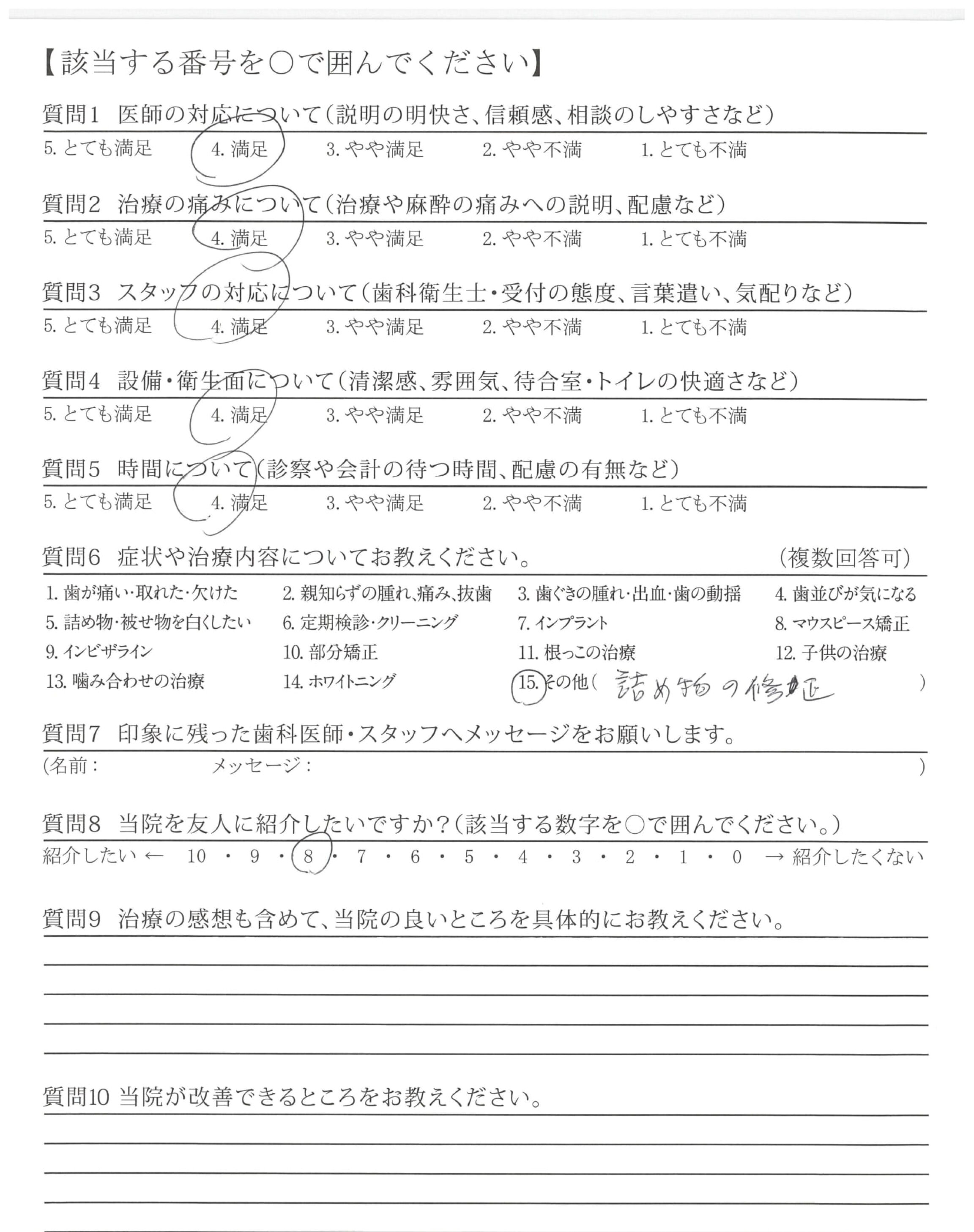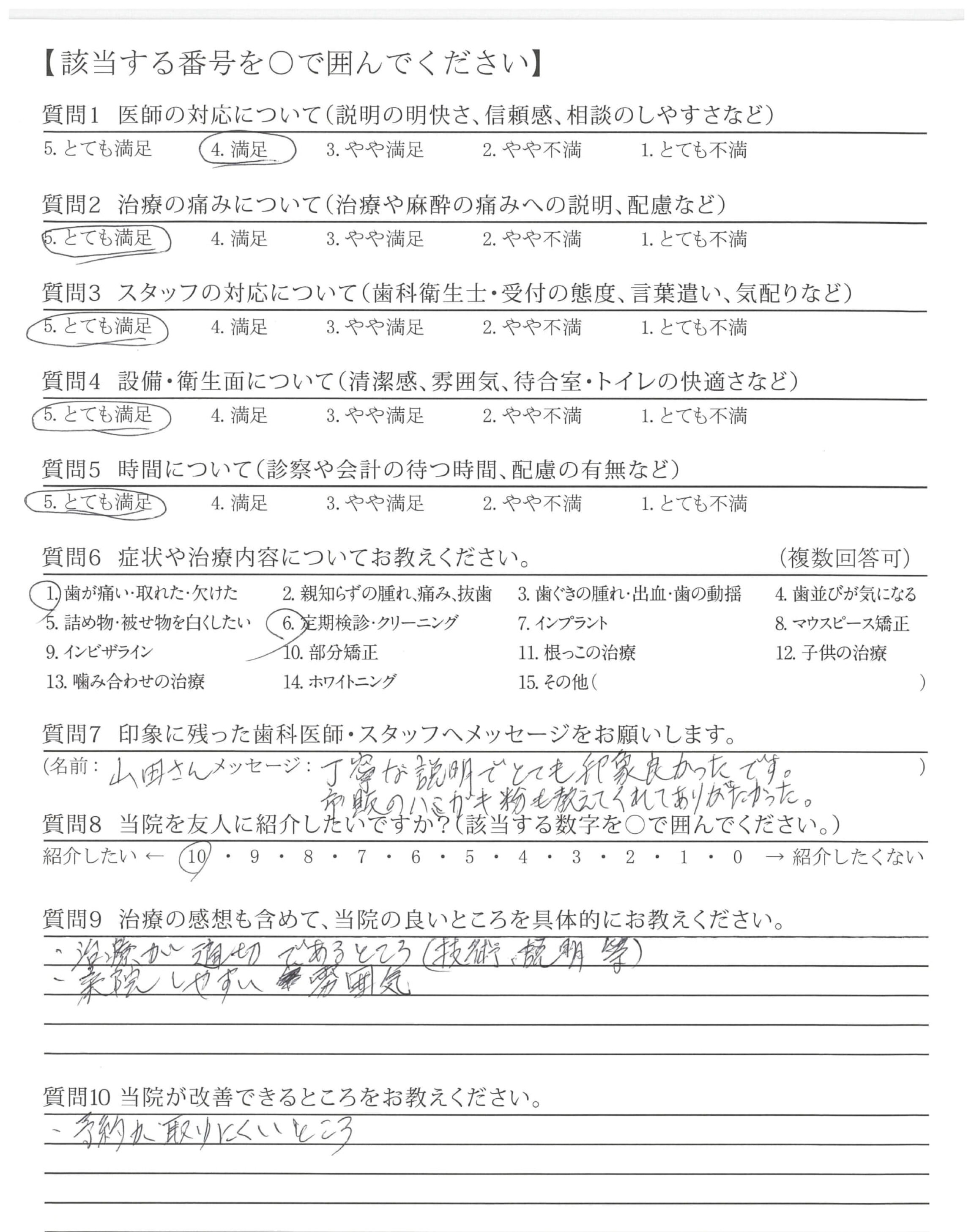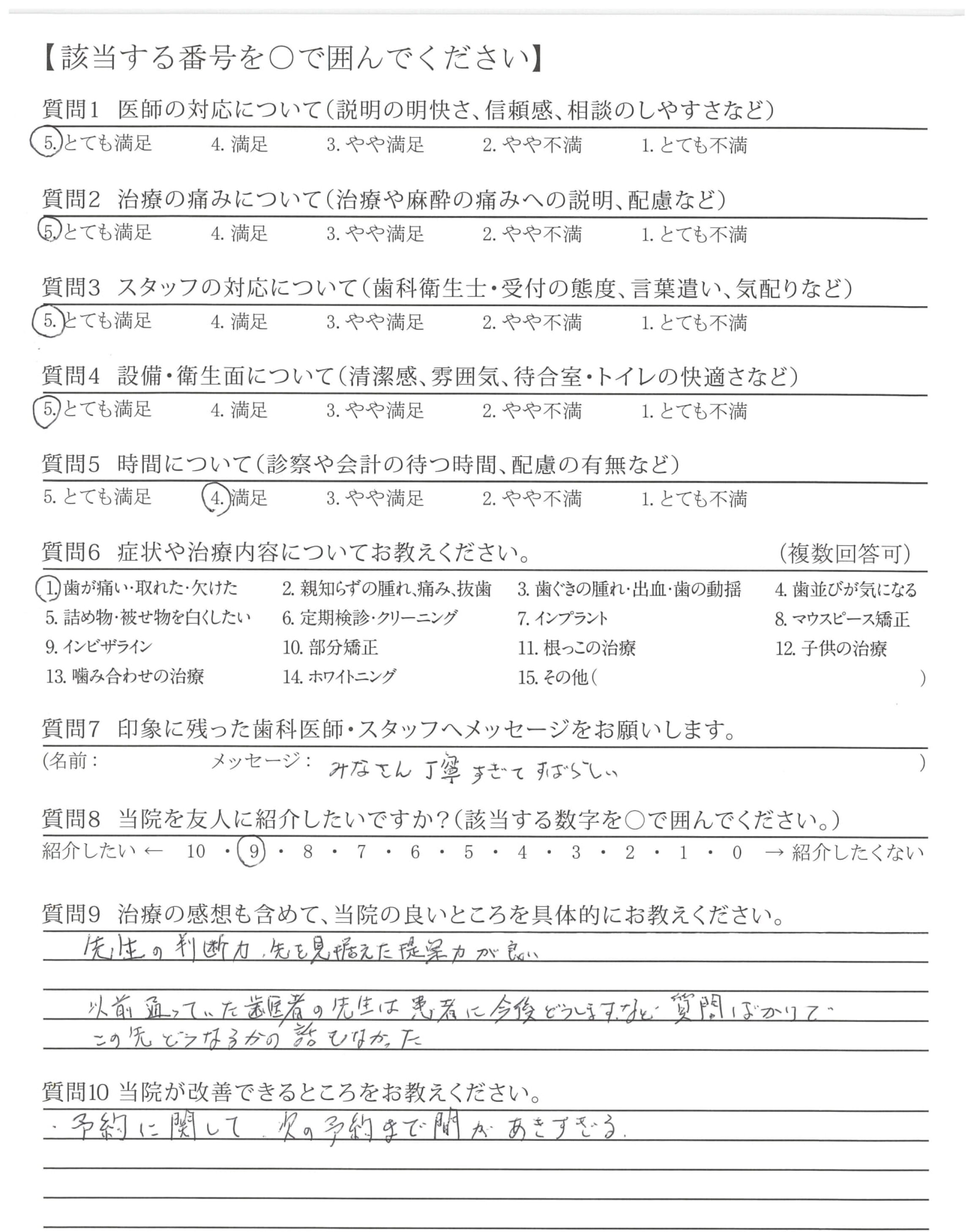 お忙しい中院長先生にご担当いただき、良い治療をしていただきどうもありがとうございました。
