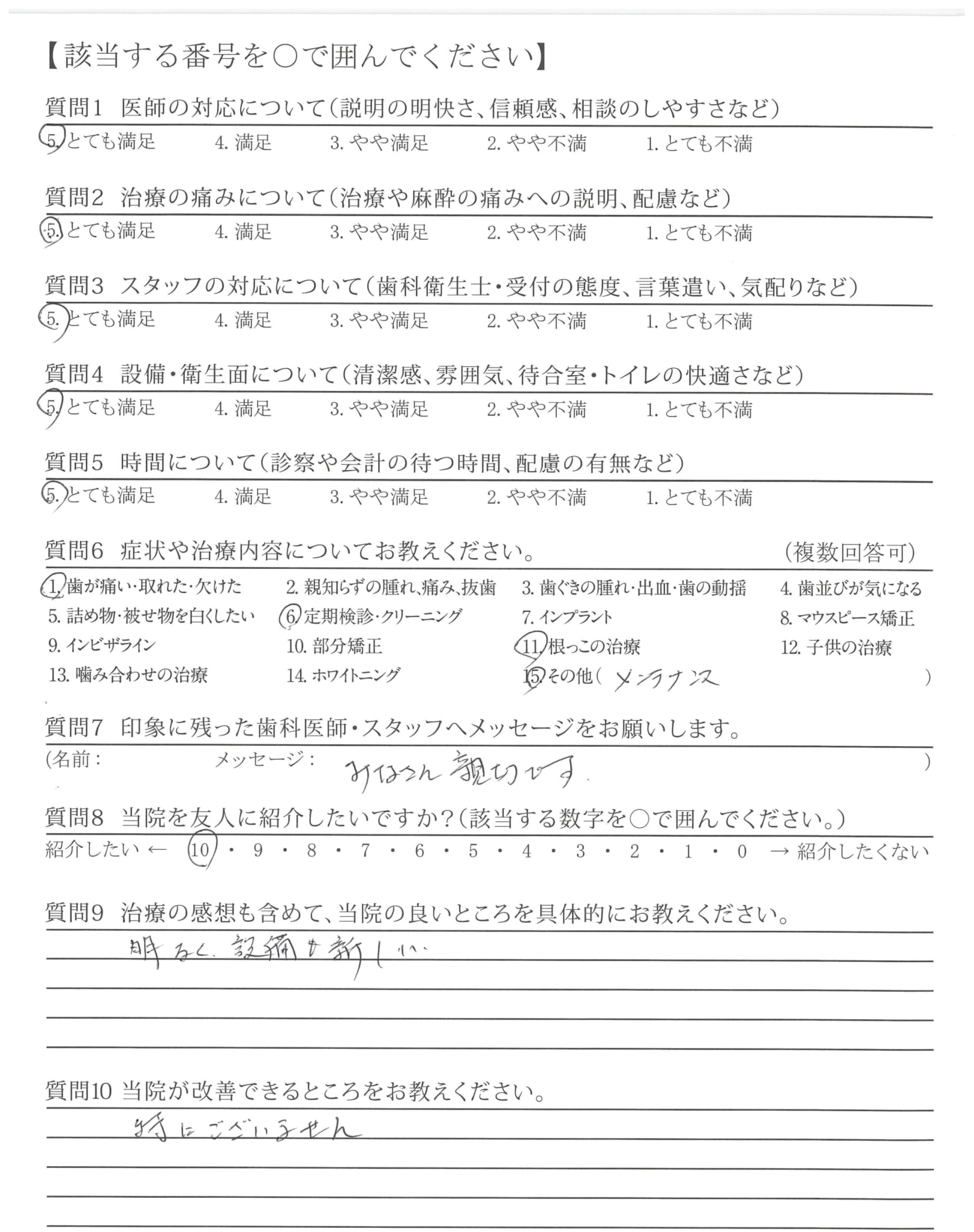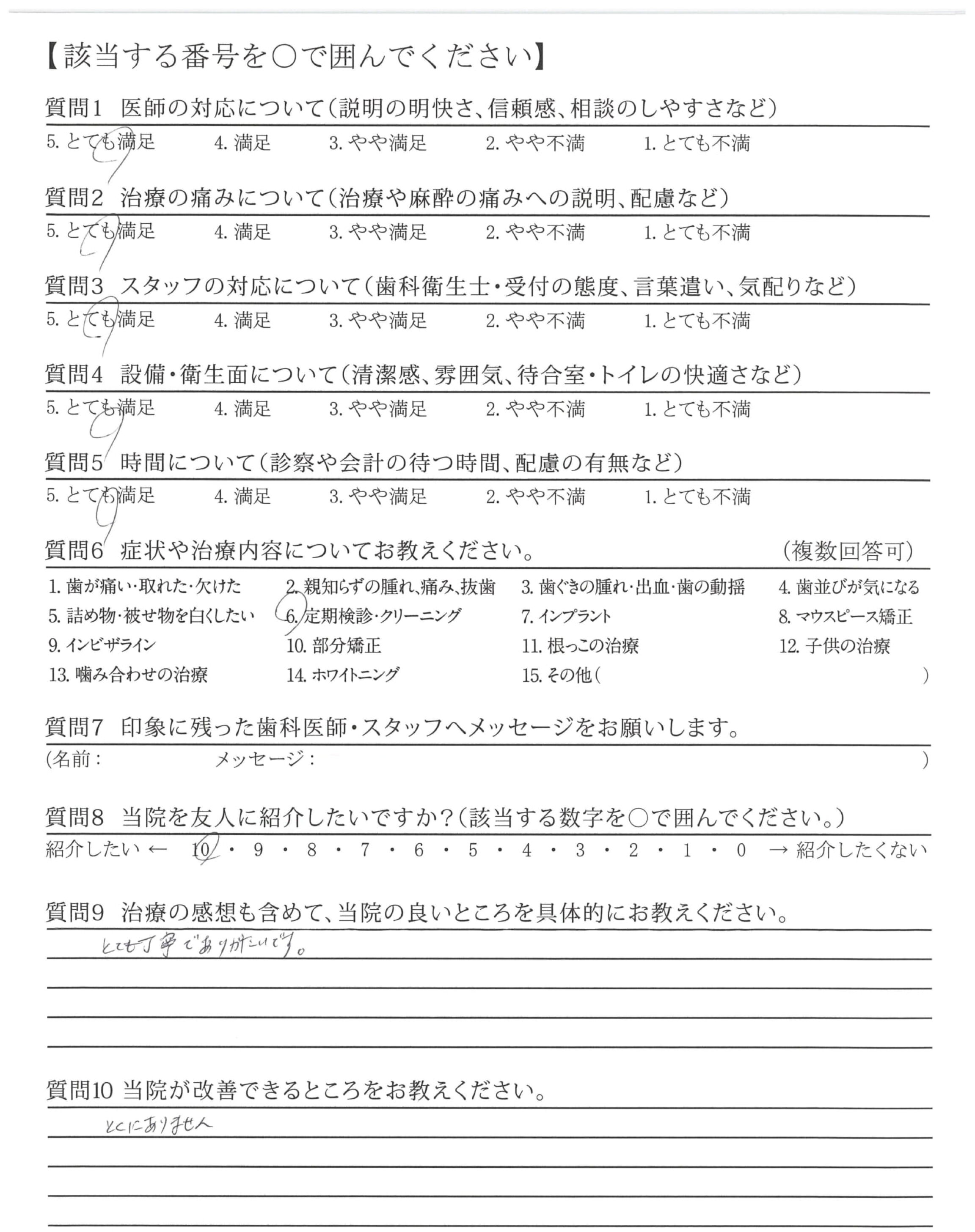 清潔感があり、治療も時間が早くとても良いなと感じています。
