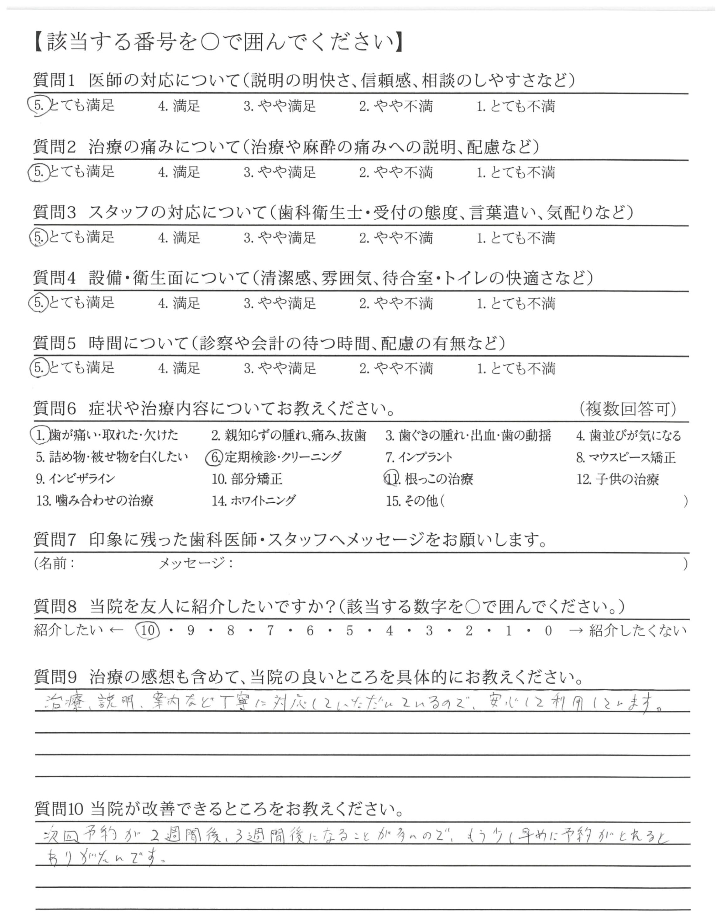次回の予約がなかなかとりずらいが、人気の歯科医院で仕方ないと思っています