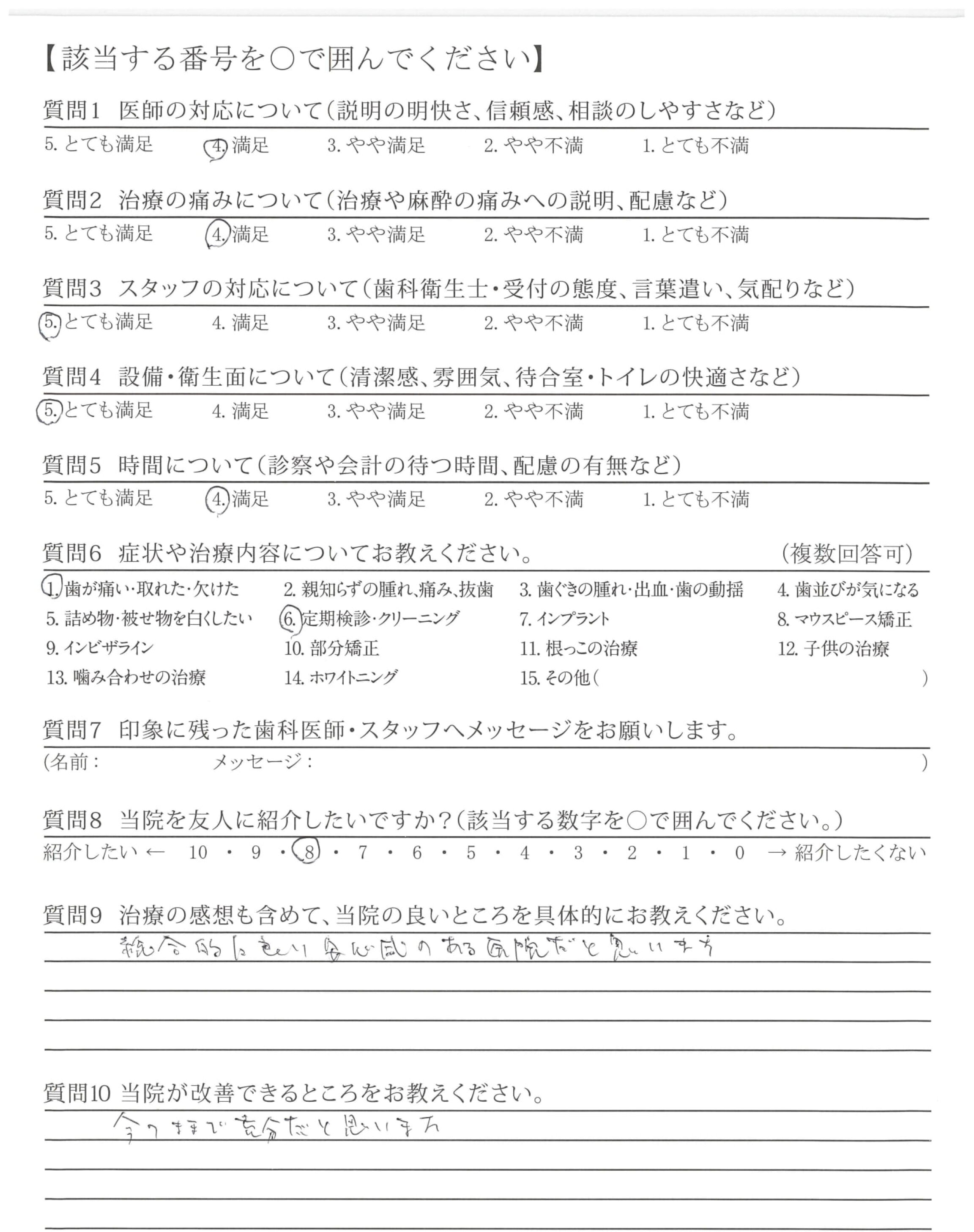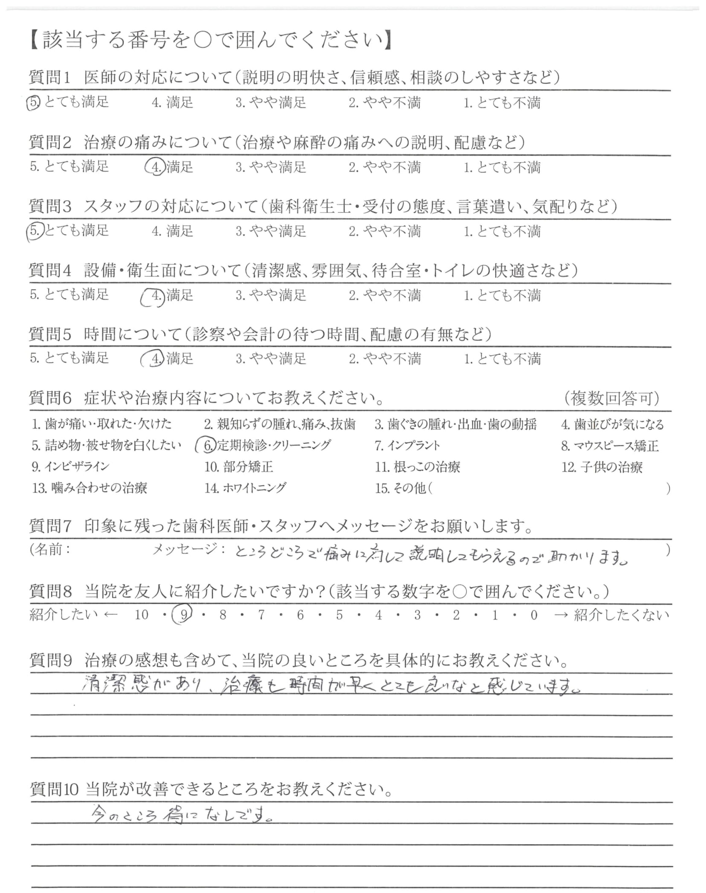 | 治療の痛みへの配慮 | ![]() ![]() ![]() ![]() 4.55 |