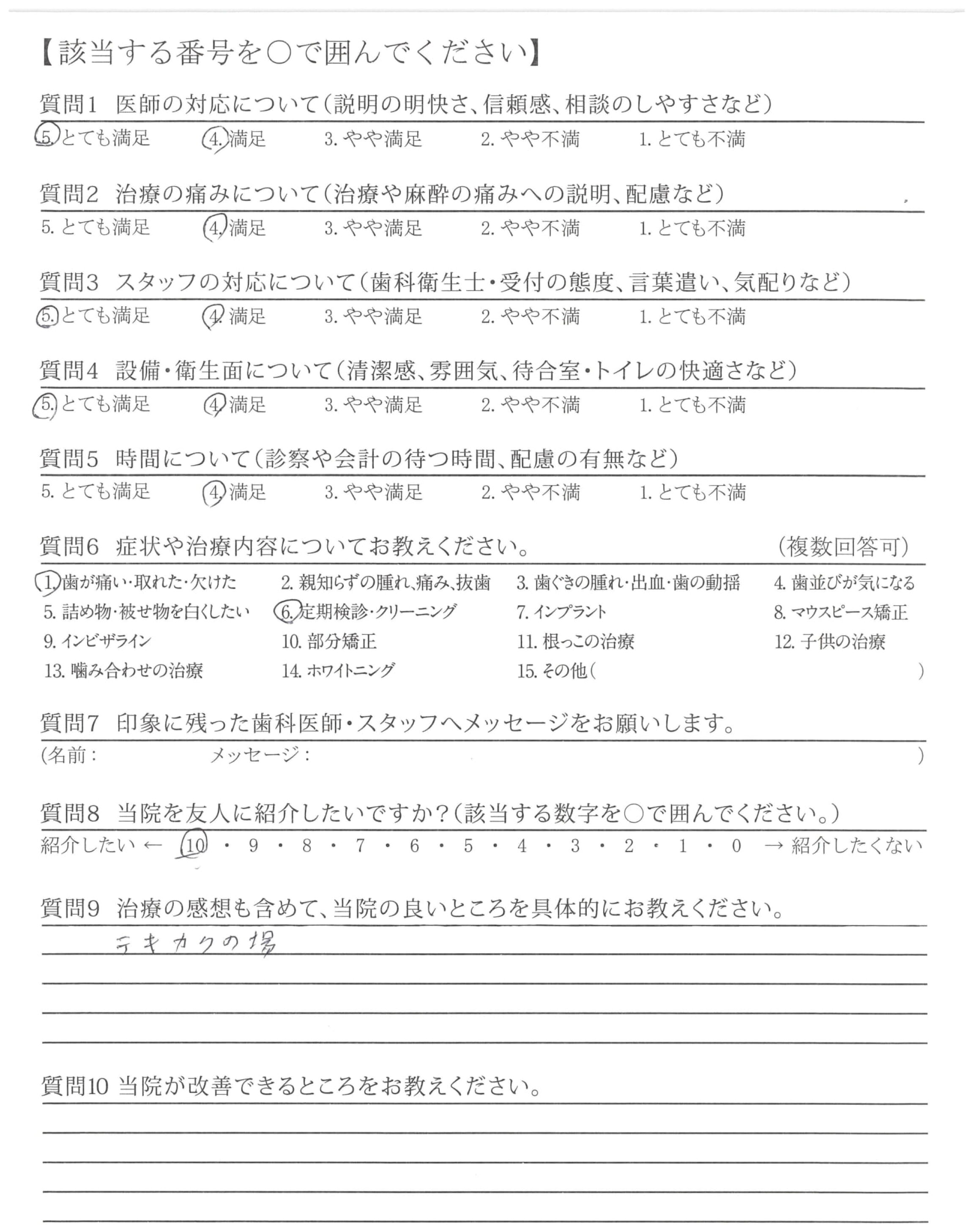 | 歯科医師の対応 | ![]() ![]() ![]() ![]() 4.60 |