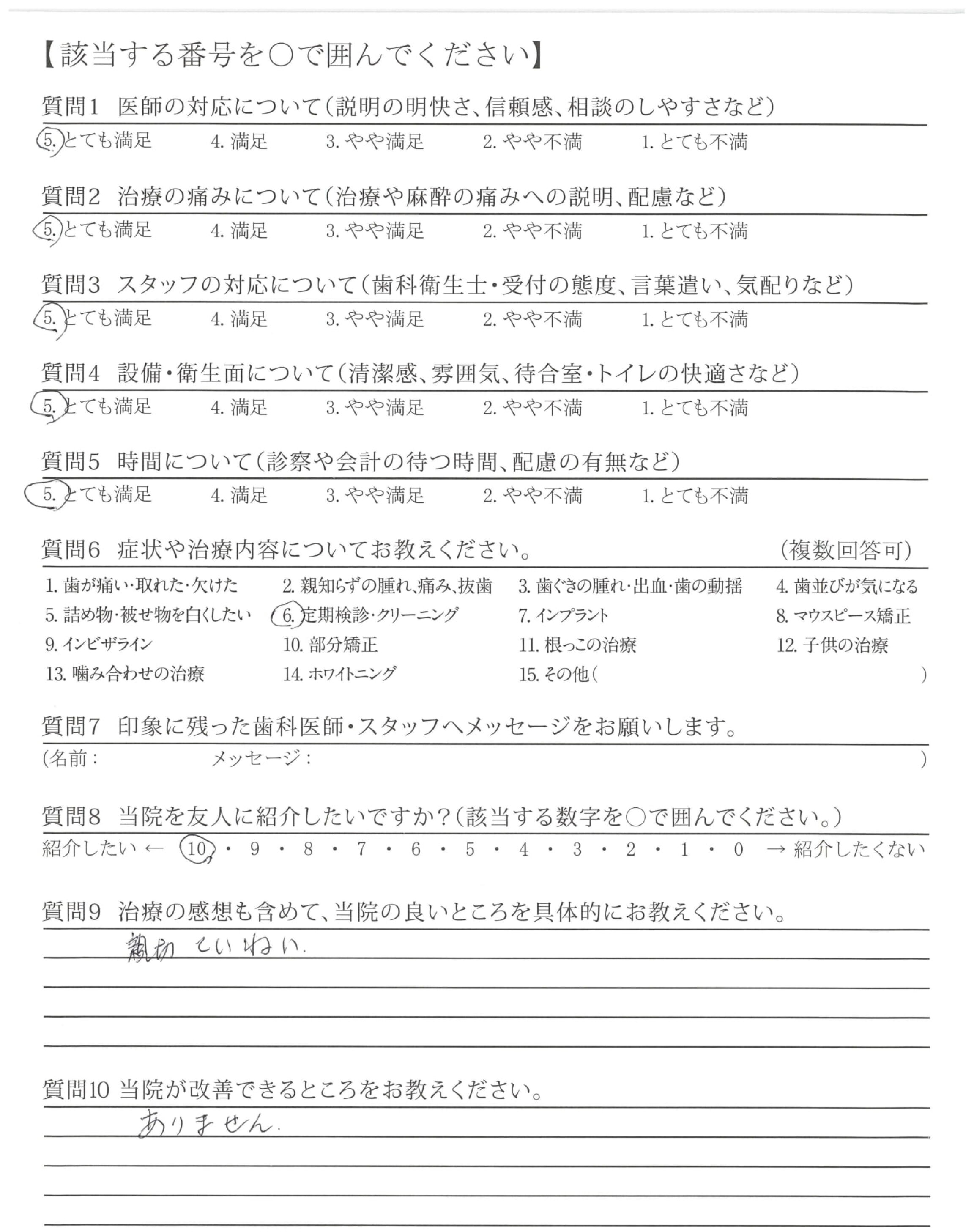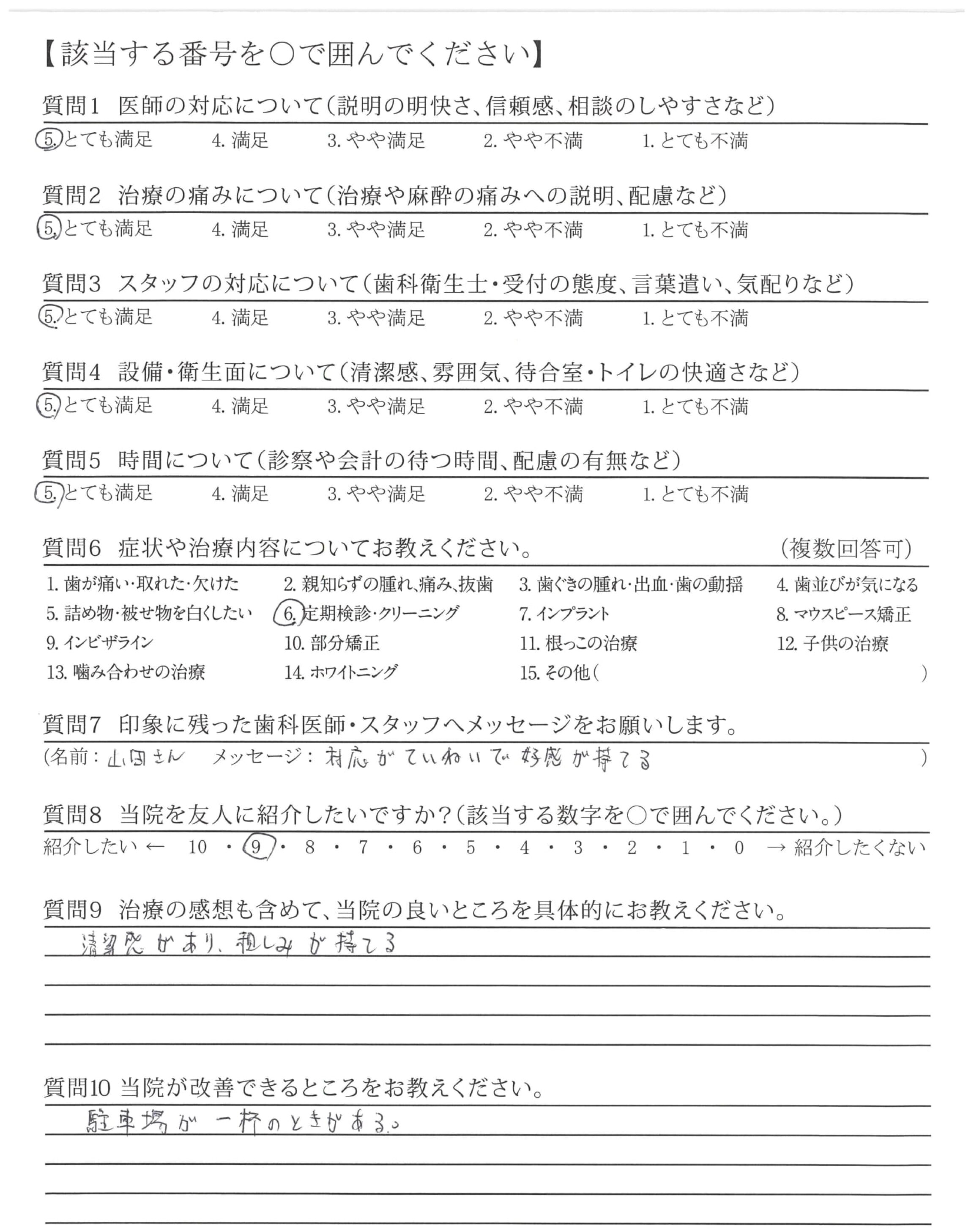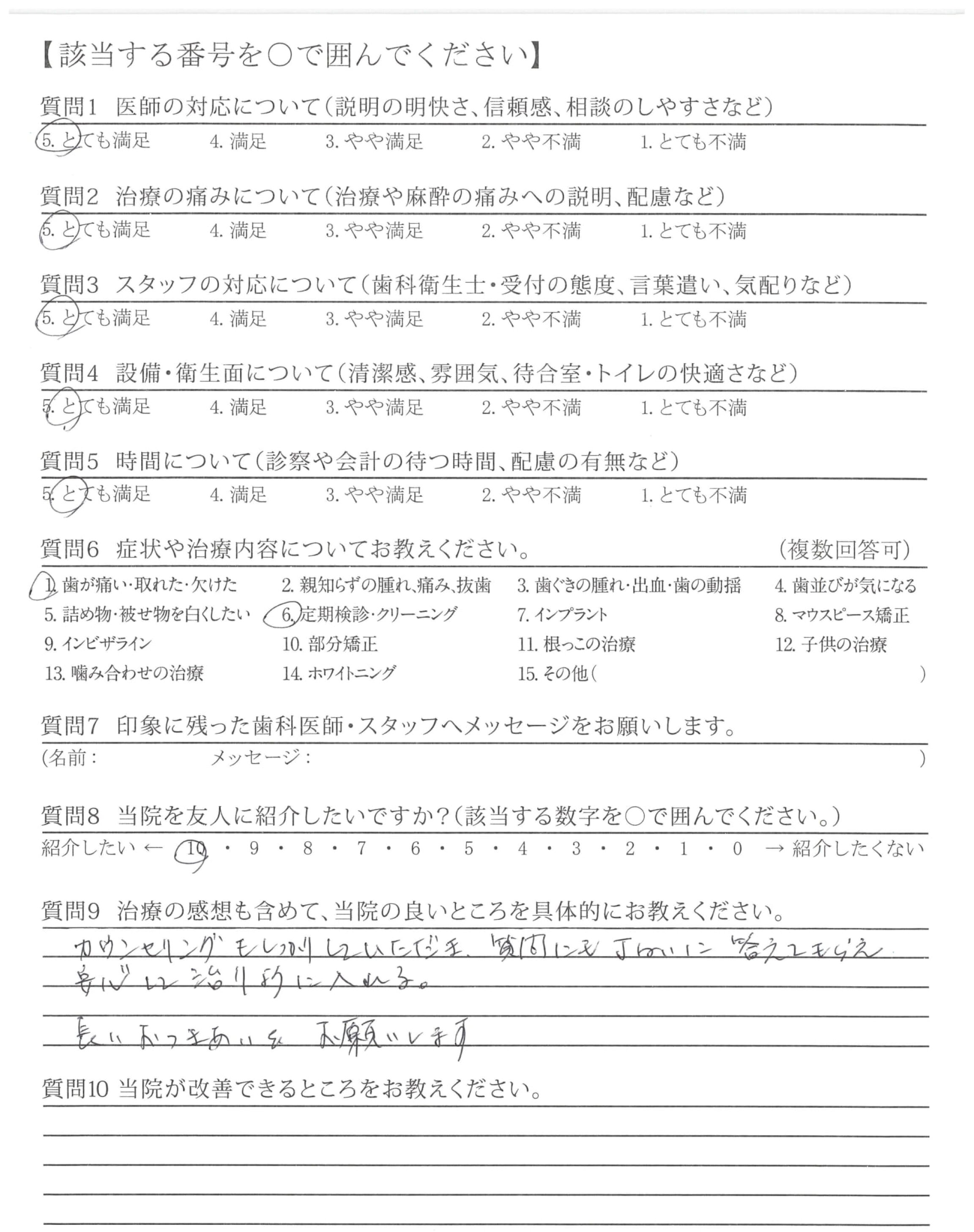 歯みがき指導をしっかりして下さるので、今までよりも歯の健康を考えるようになりました。子どもの歯みがきにも生かしています。