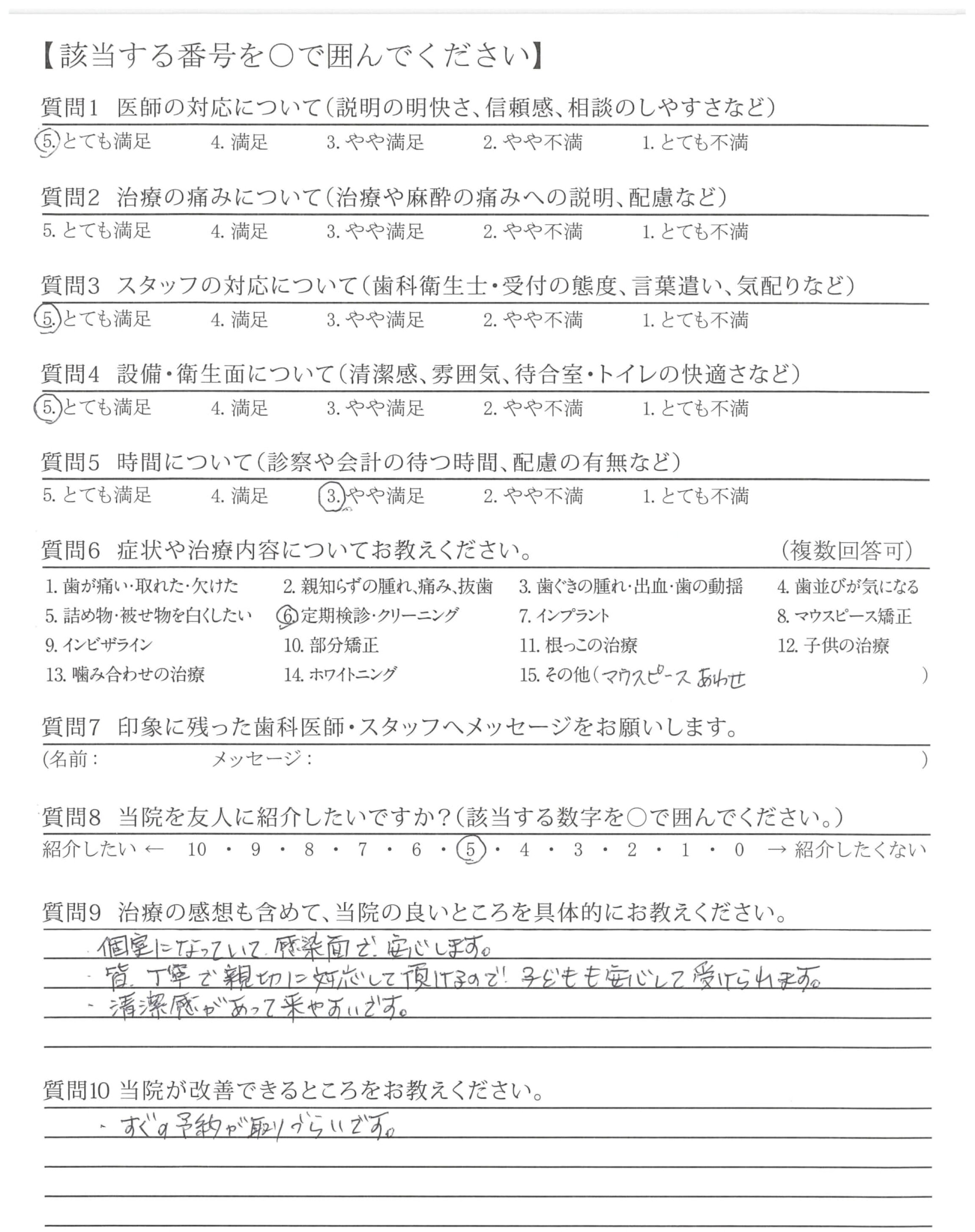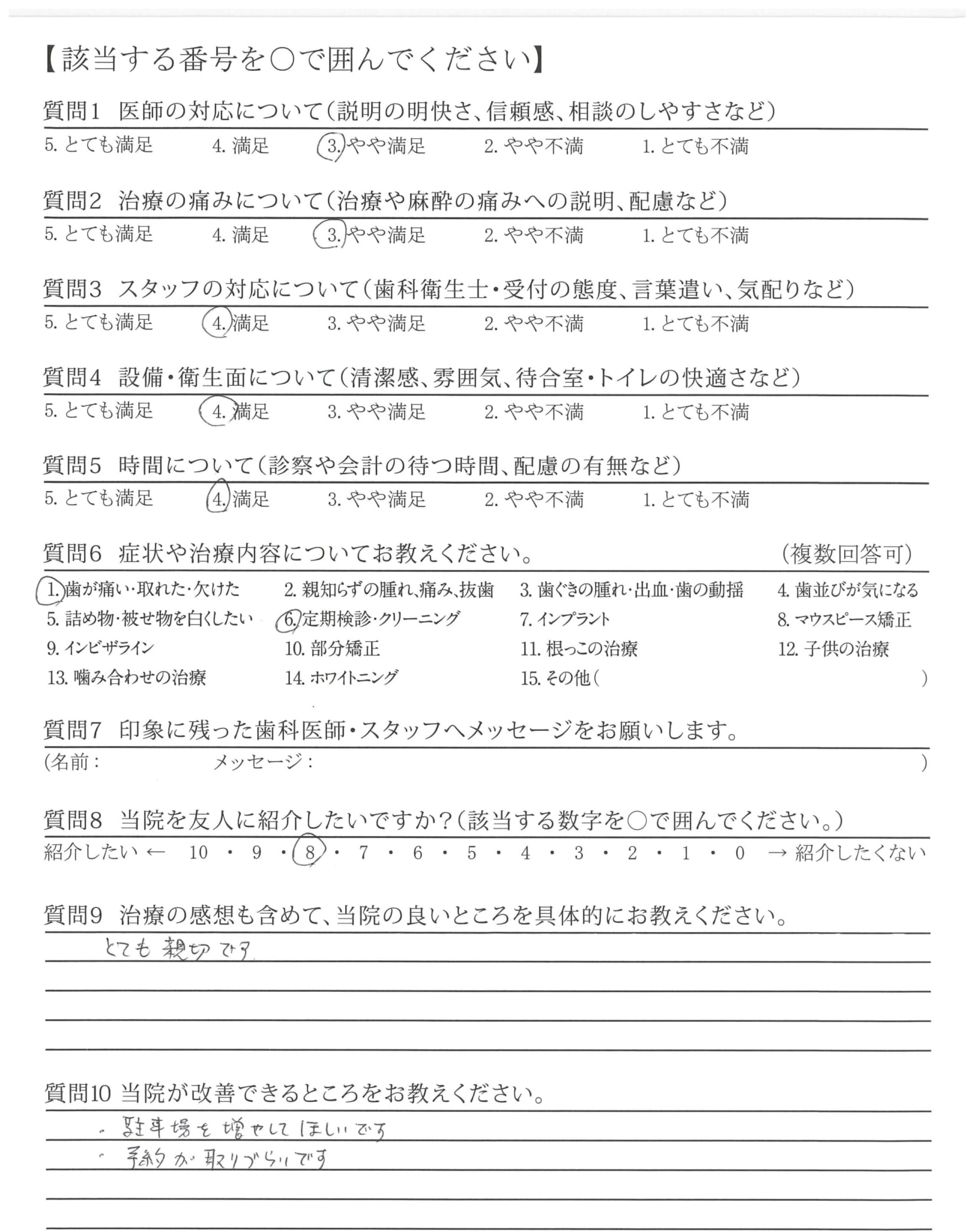 ・次回の予約が電話のみなのが手間がかかっているのでネットでも予約できると良いのでは