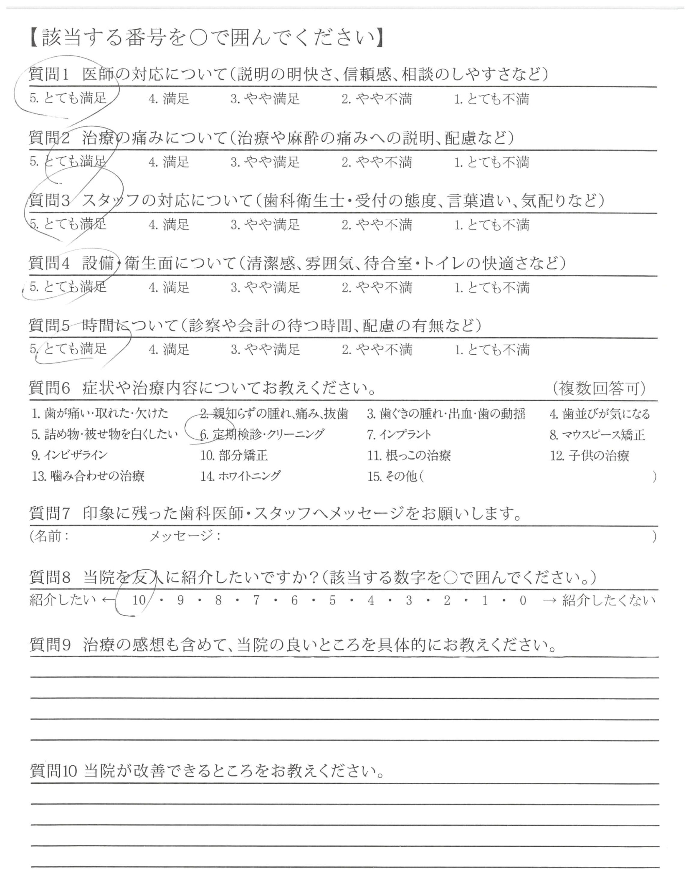 当サイトに掲載しているアンケートは、第三者機関である日本歯科医療評価機構が医院の協力を得て直接患者さんへ調査を行ったもので、医院では操作のできない客観的な評価です。毎週患者さんから届くアンケート結果を集計し、このページを更新しています。