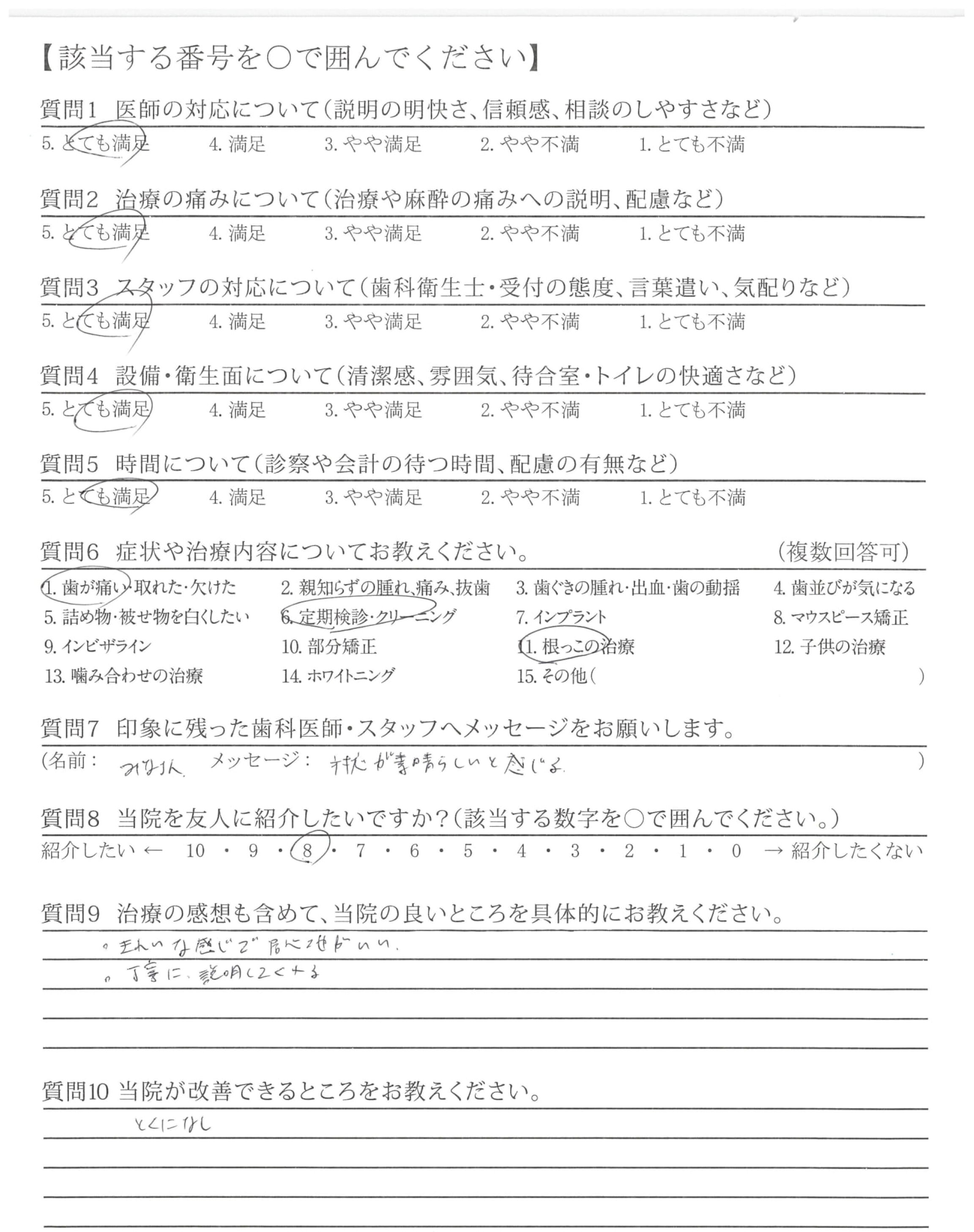 今日、担当していただいた山田さんもそうですが、医院長先生をはじめ、たくさんの提案をしていただき、本当にありがたかったです。
