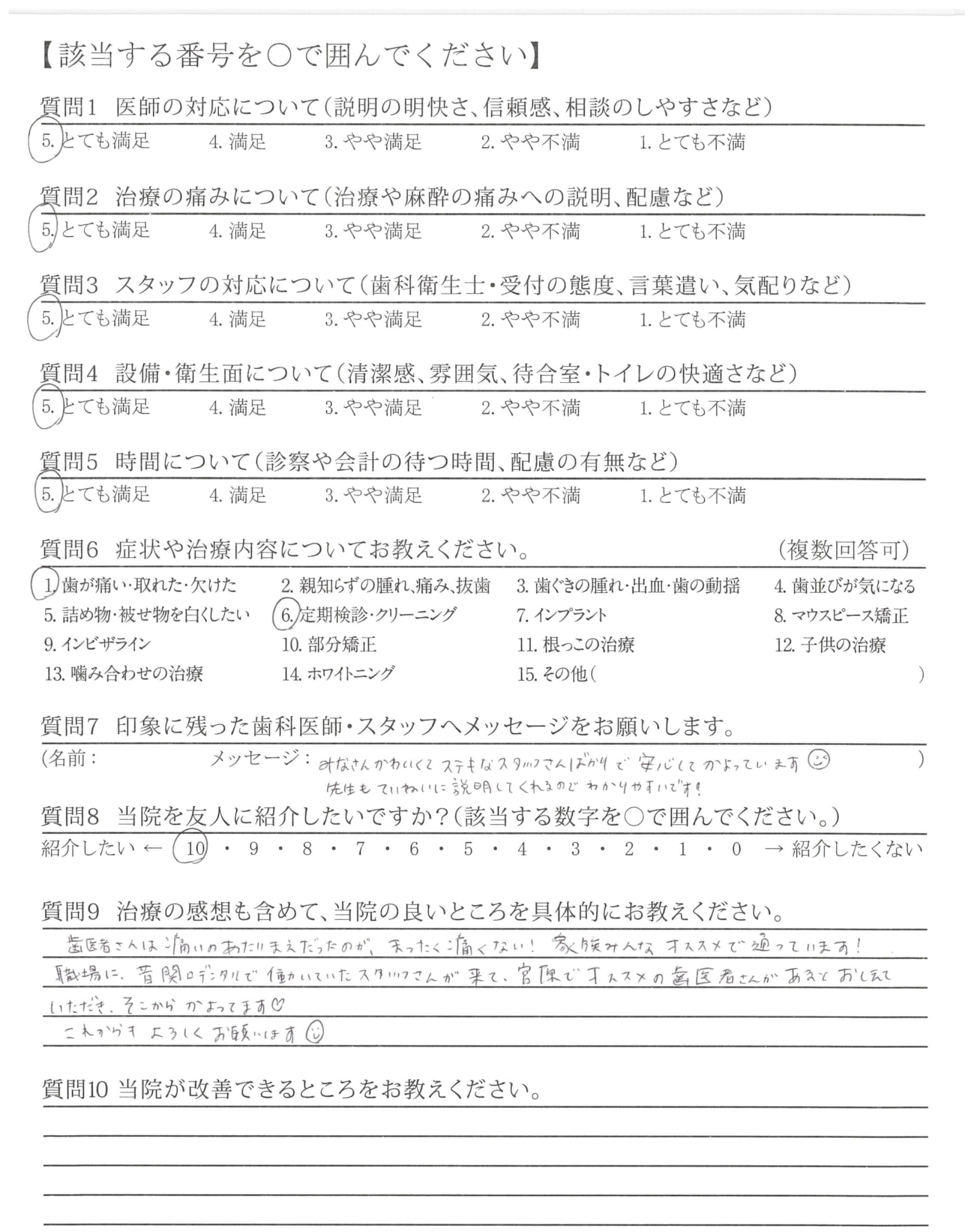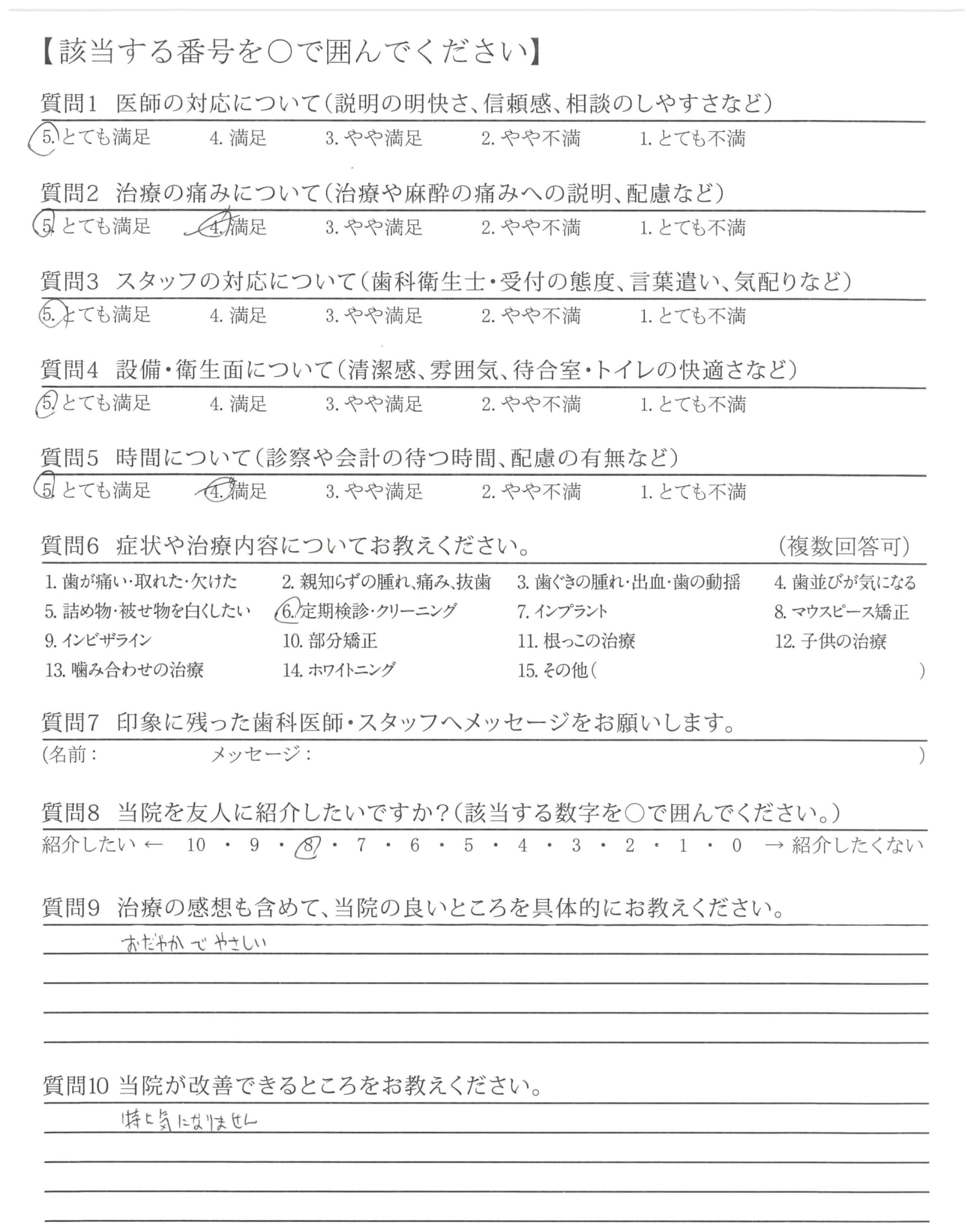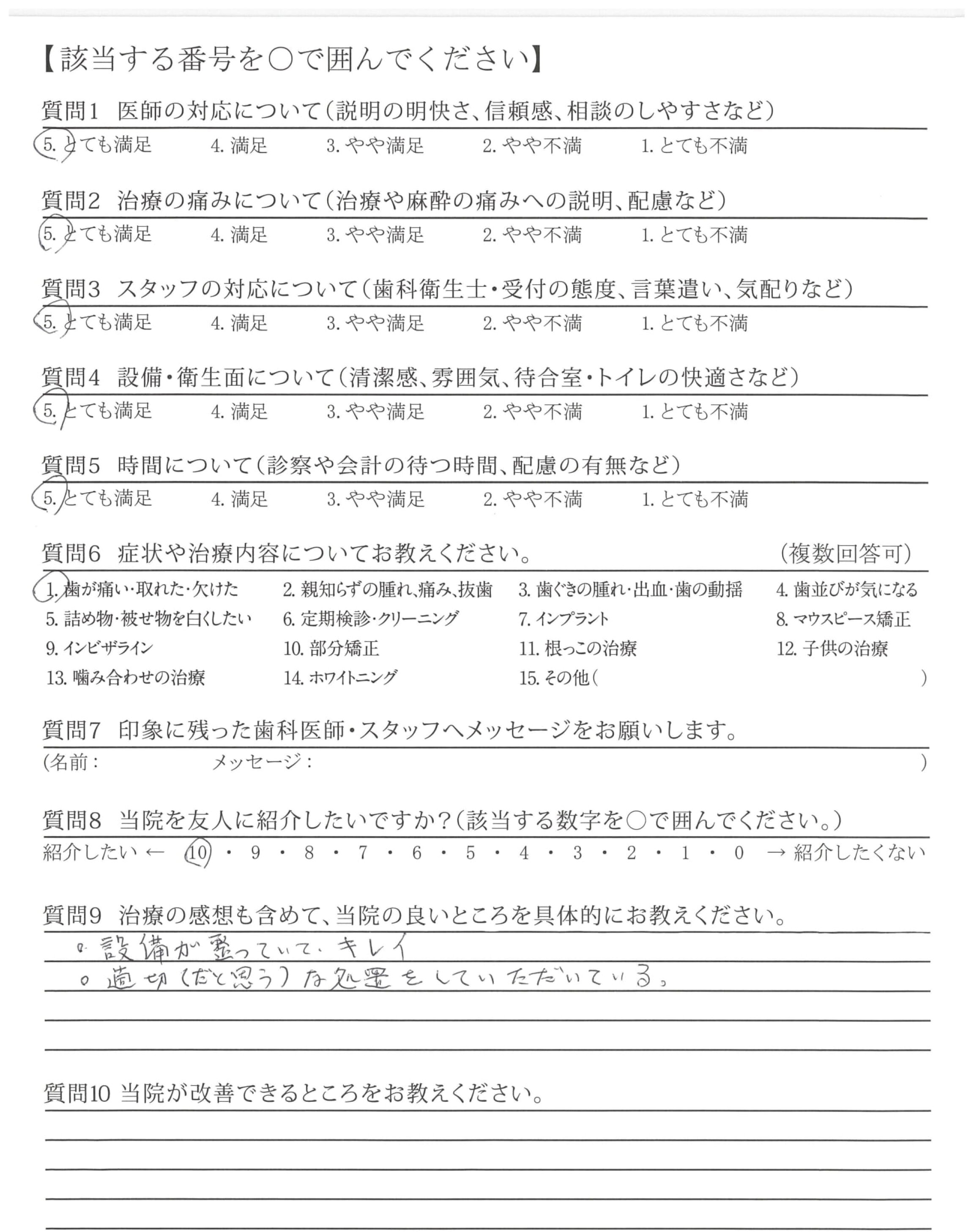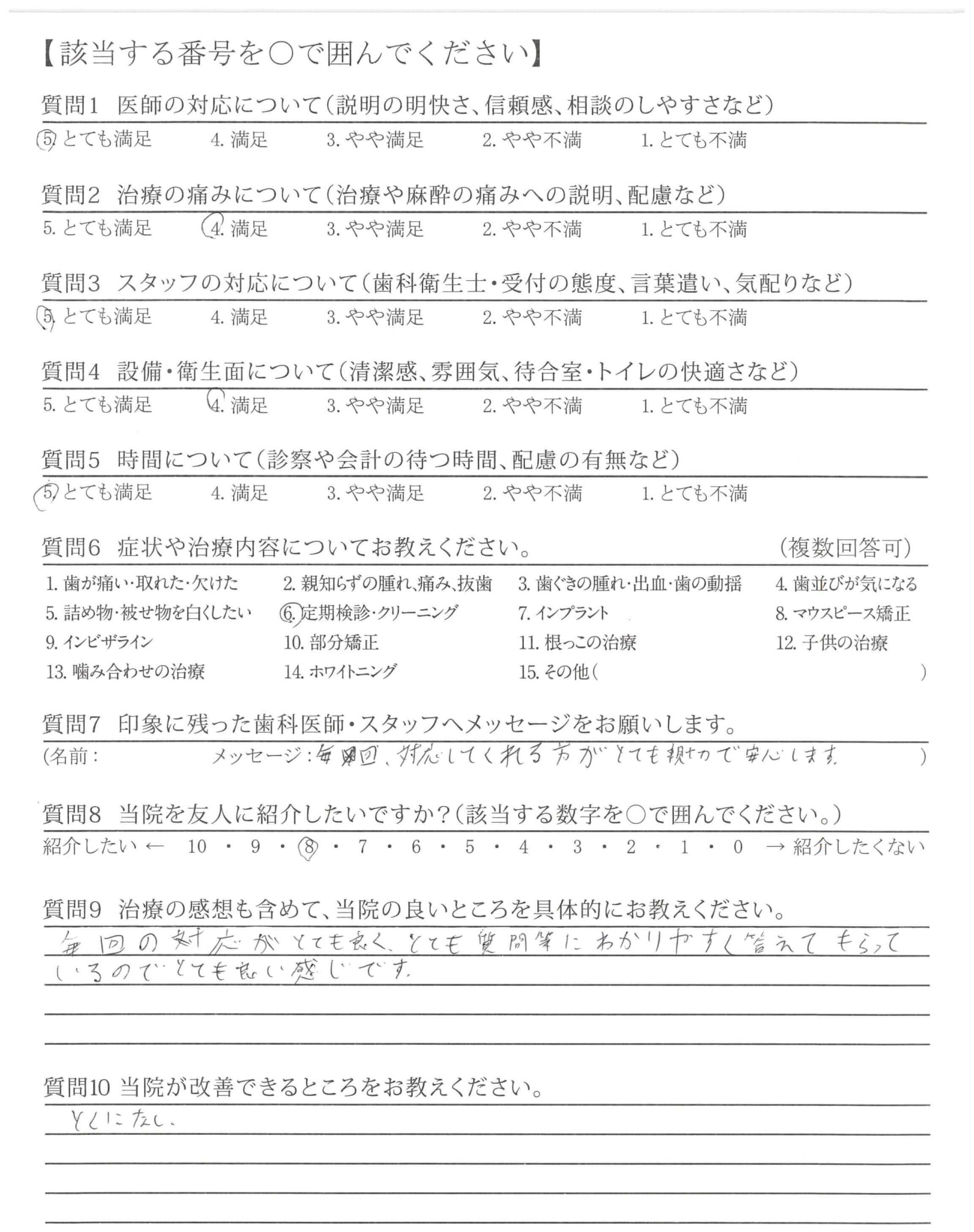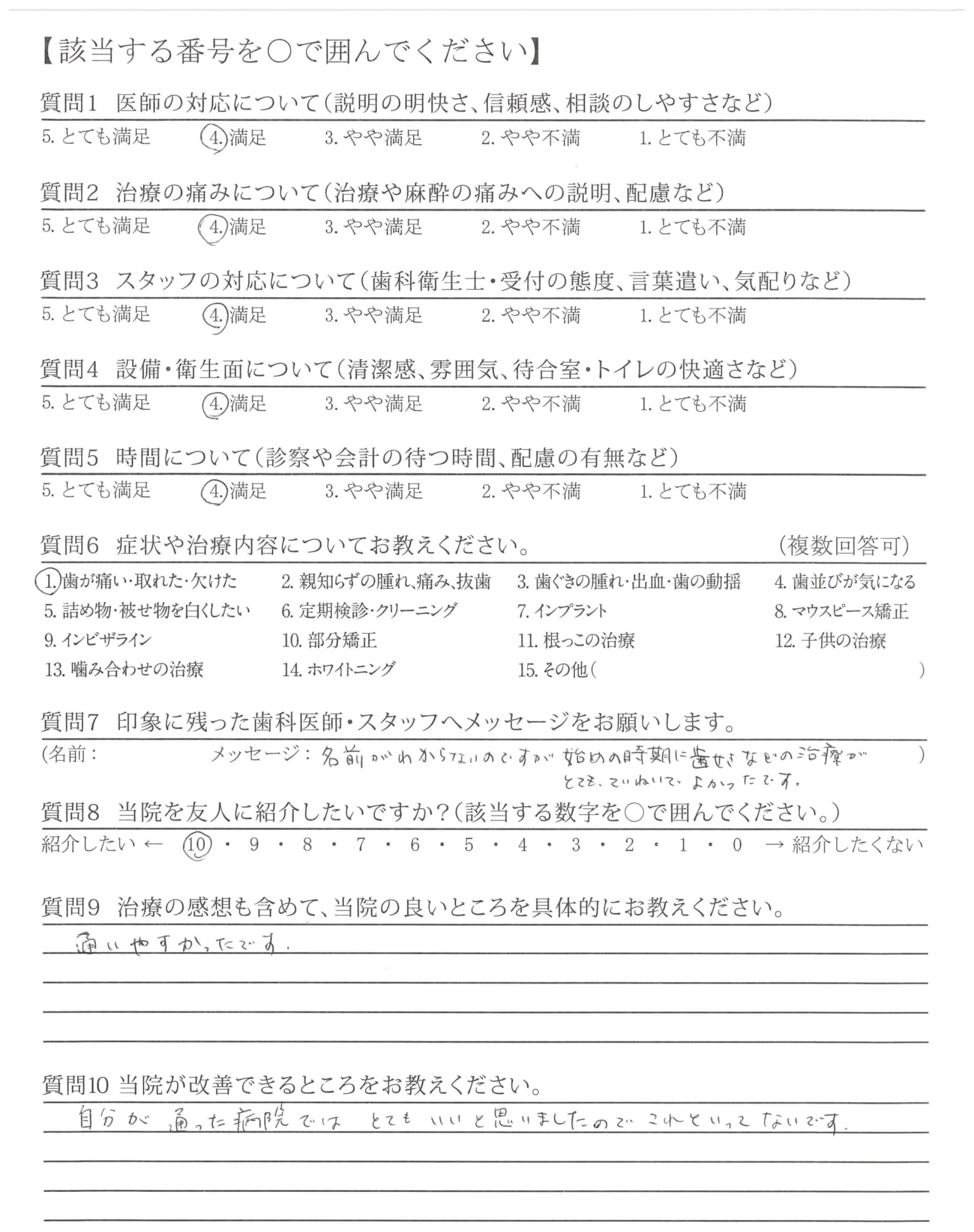始めの時期に歯せきなどの治療がとても、ていねいでよかったです。