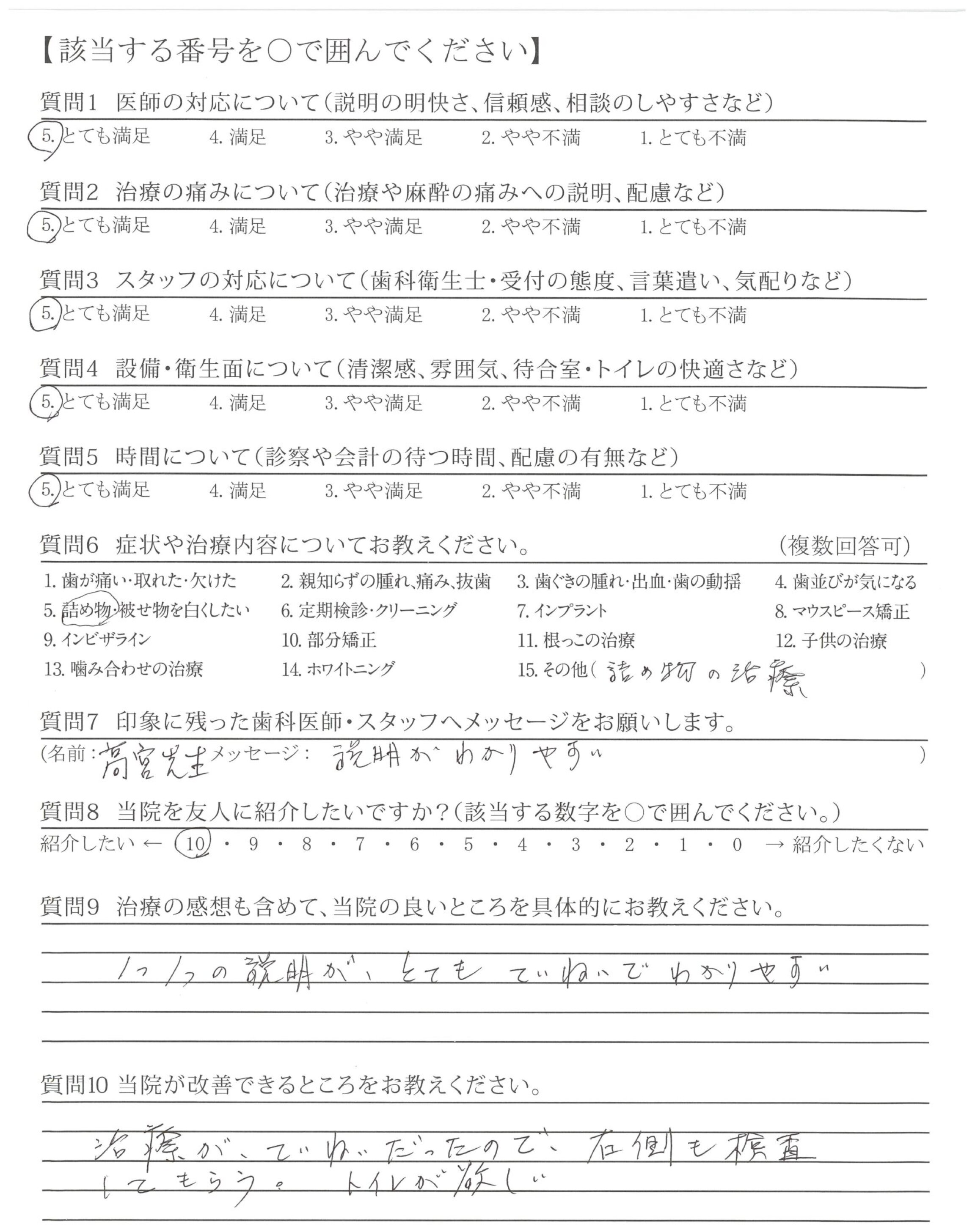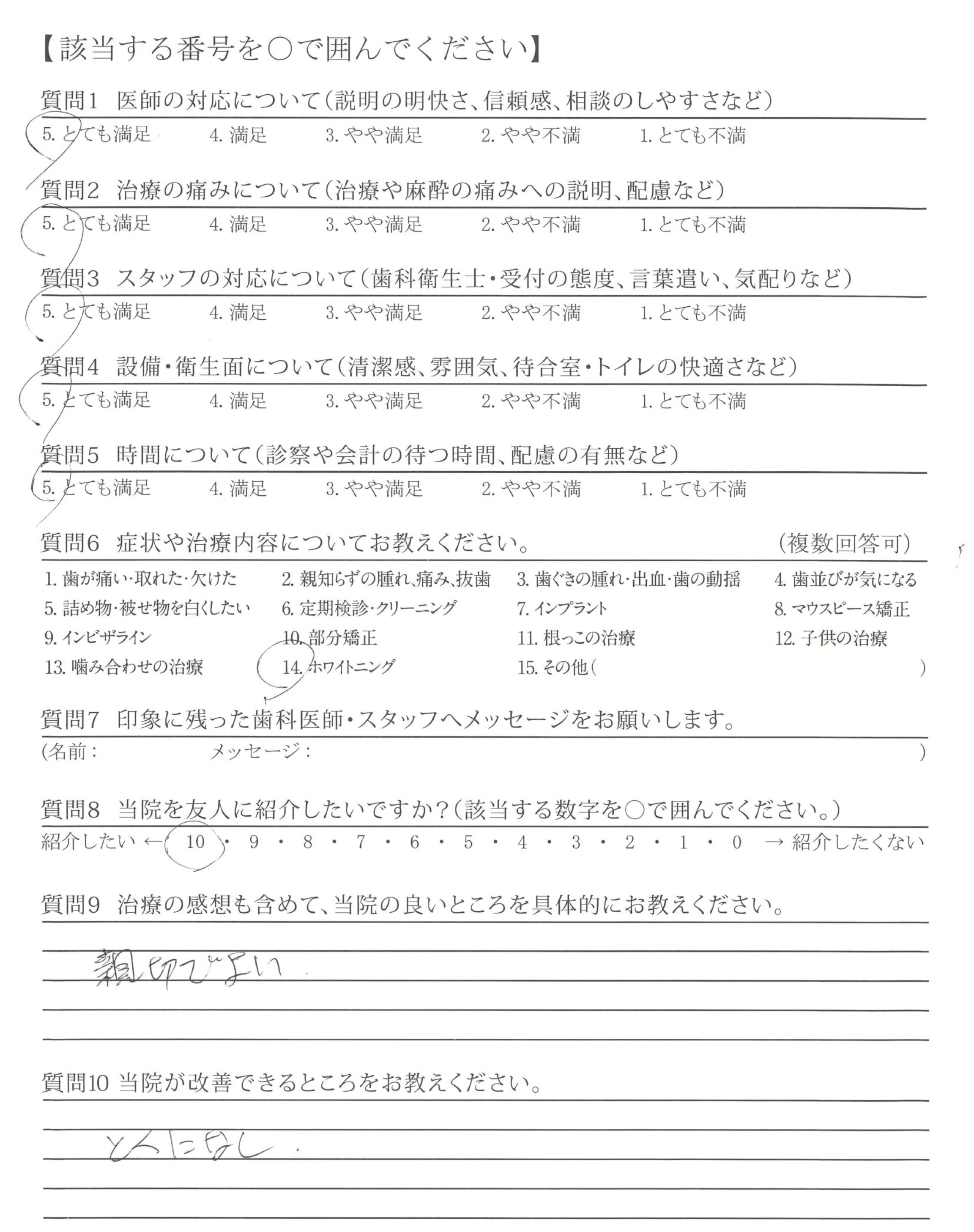 丁寧で分かりやすい治療をしていただきありがとうございます。